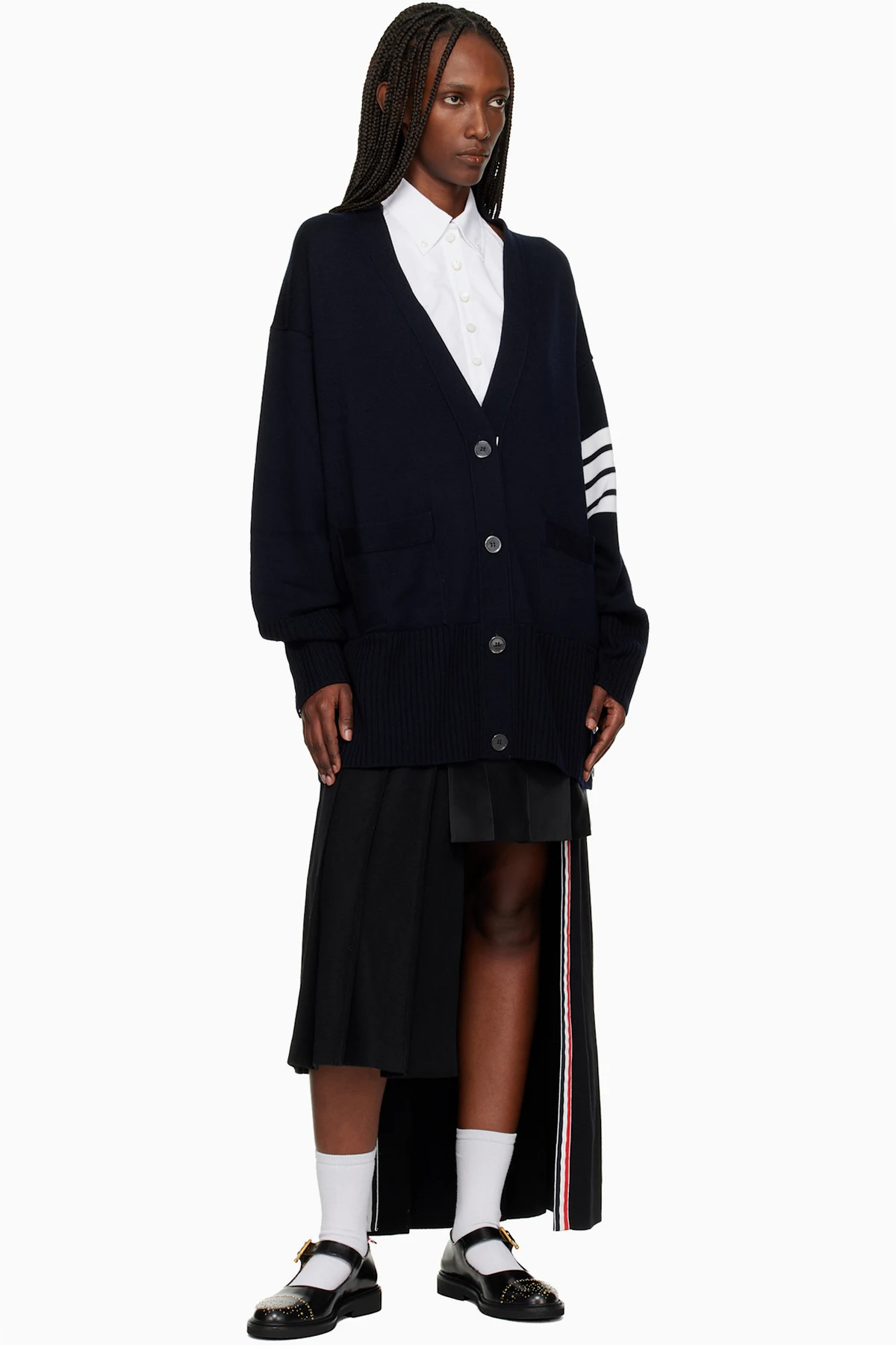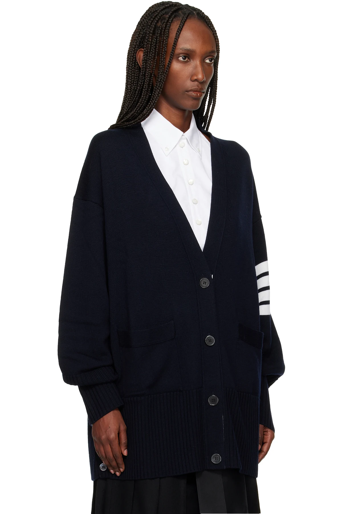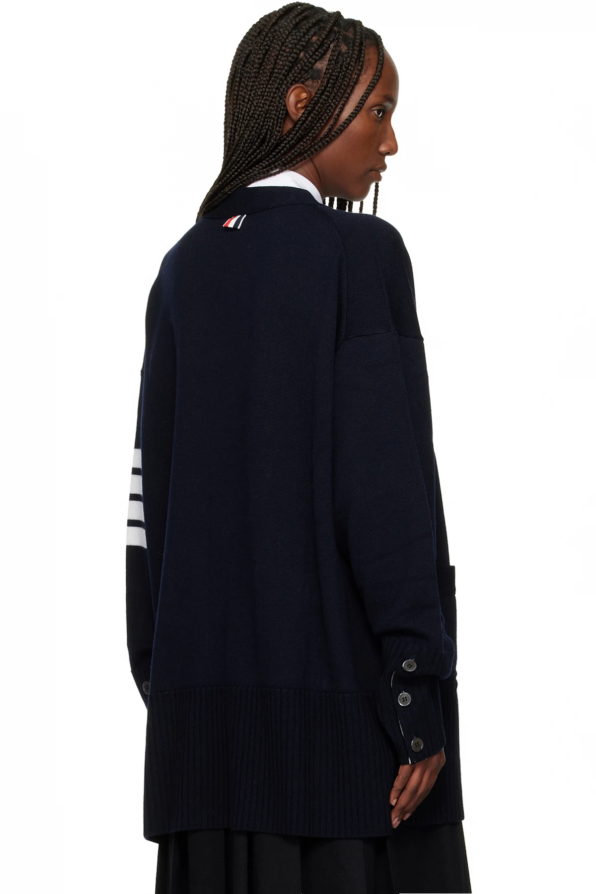 Thom Browne Navy Exaggerated Fit V Neck Cardigan