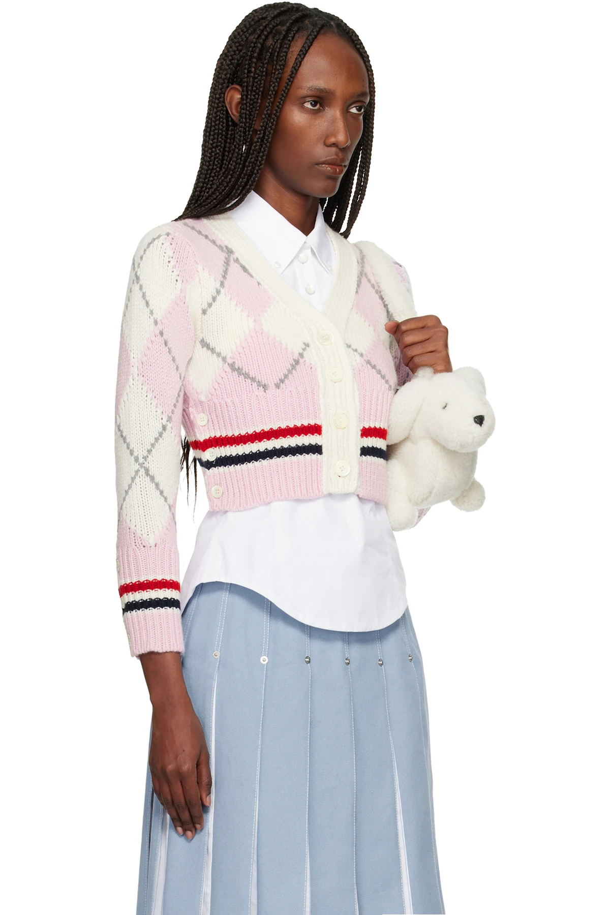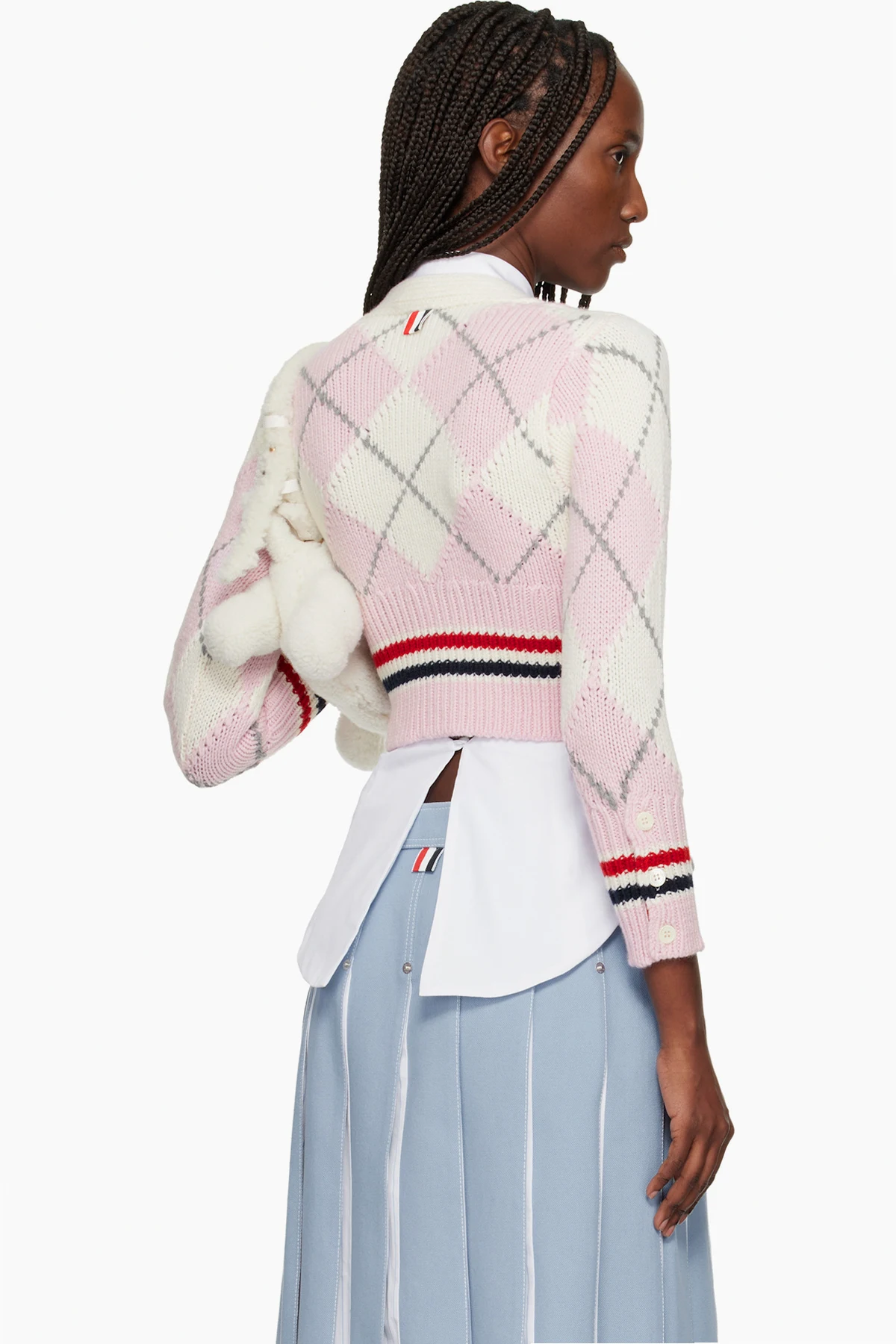 Thom Browne Pink Argyle Merino Shrunken Cardigan
