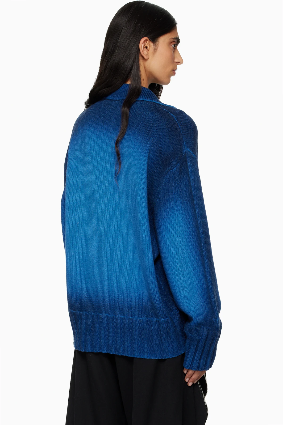 The Attico Blue Sprayed Wool Cashmere Cardigan