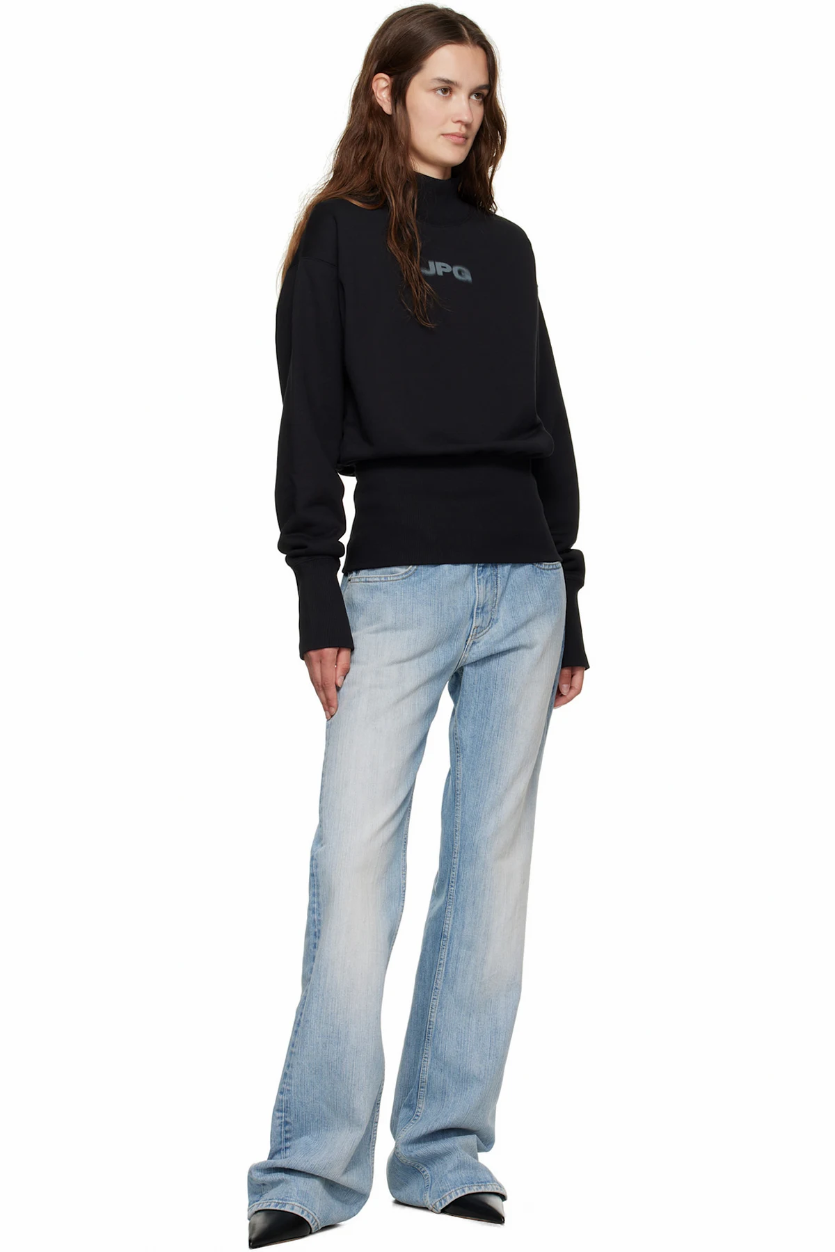 Jean Paul Gaultier Black Cropped Crew Neck 'JPG' Sweatshirt
