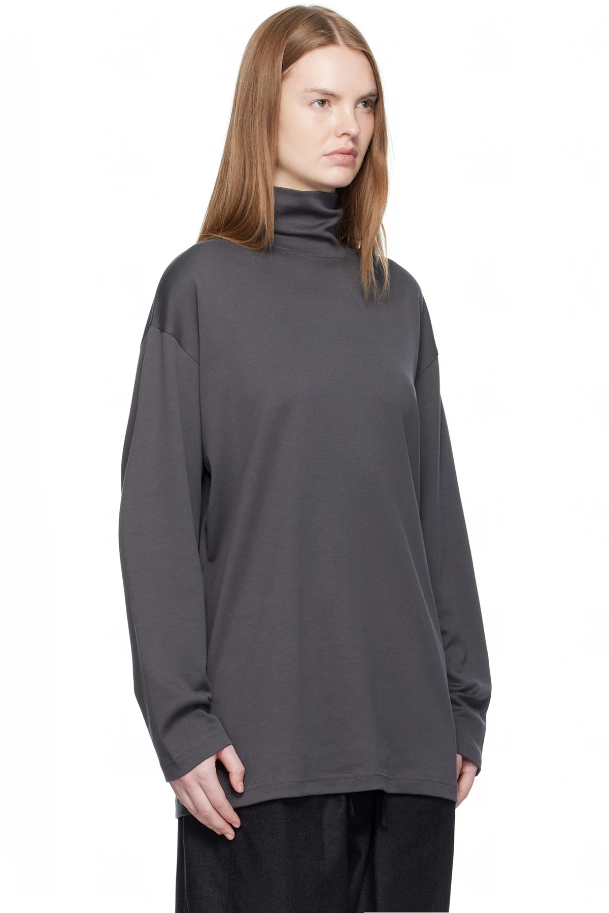 Lemaire Gray Relaxed Mock Neck T-shirt