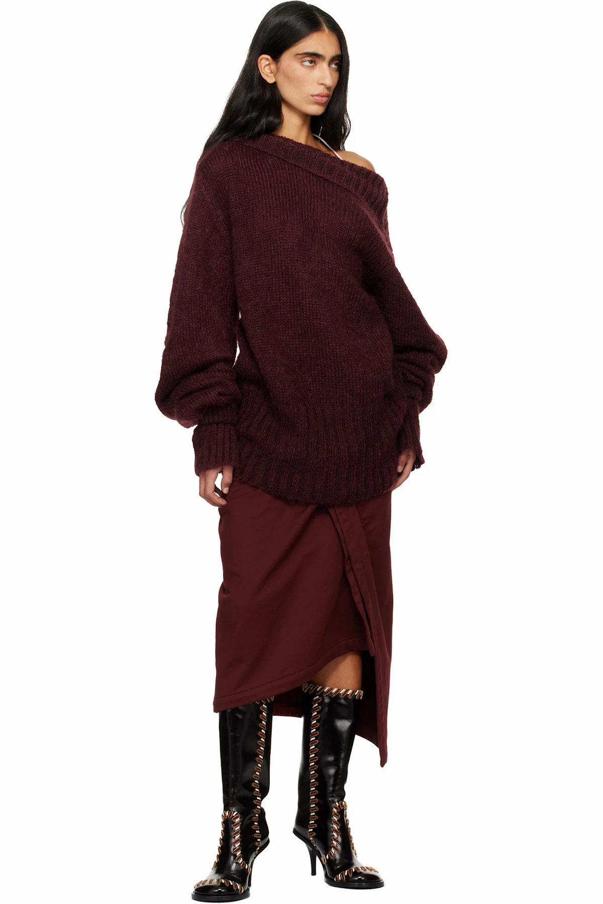 Dries Van Noten Burgundy Oversized Mohair Turtleneck