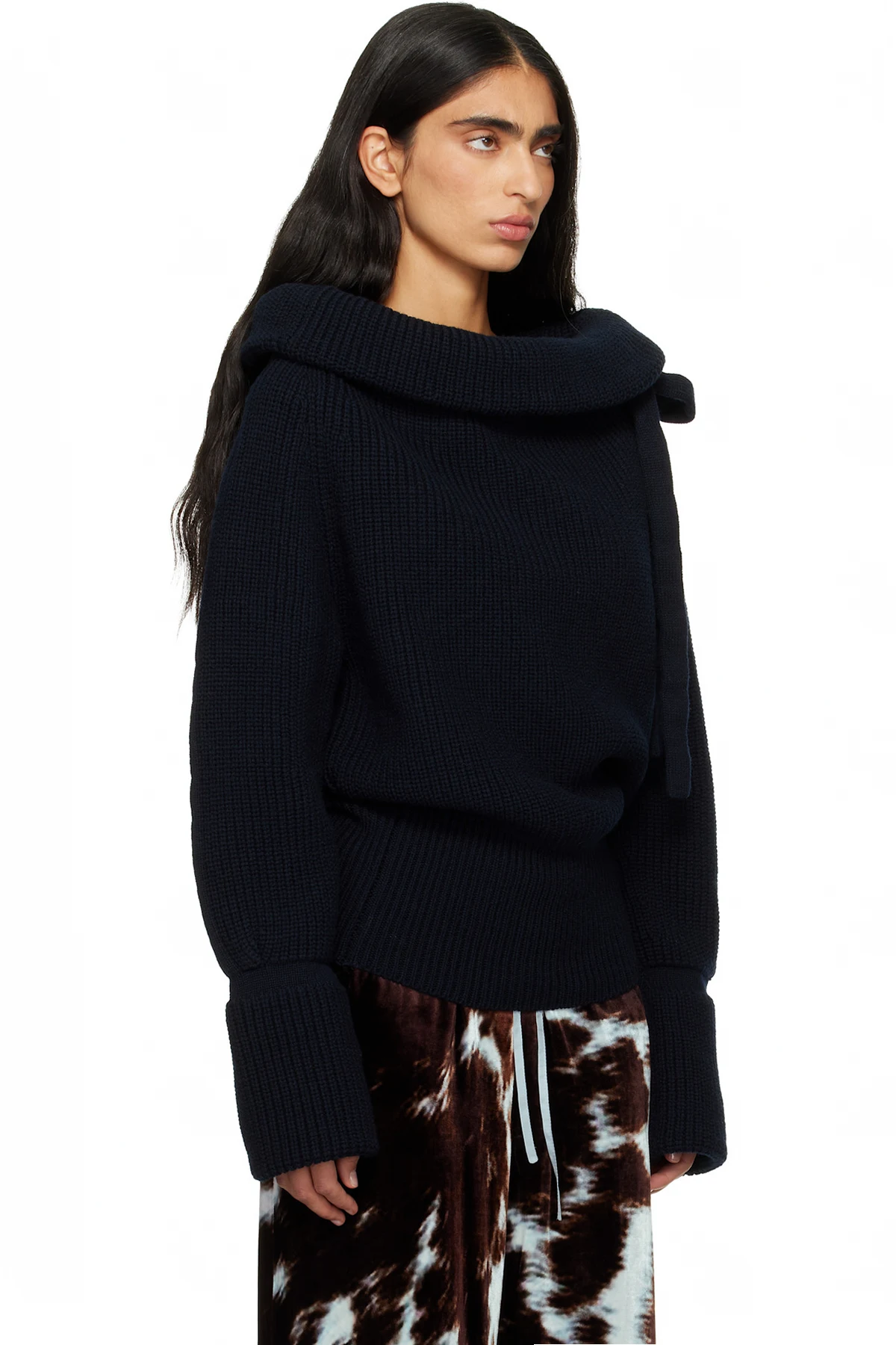 Dries Van Noten Navy Drawstring Turtleneck
