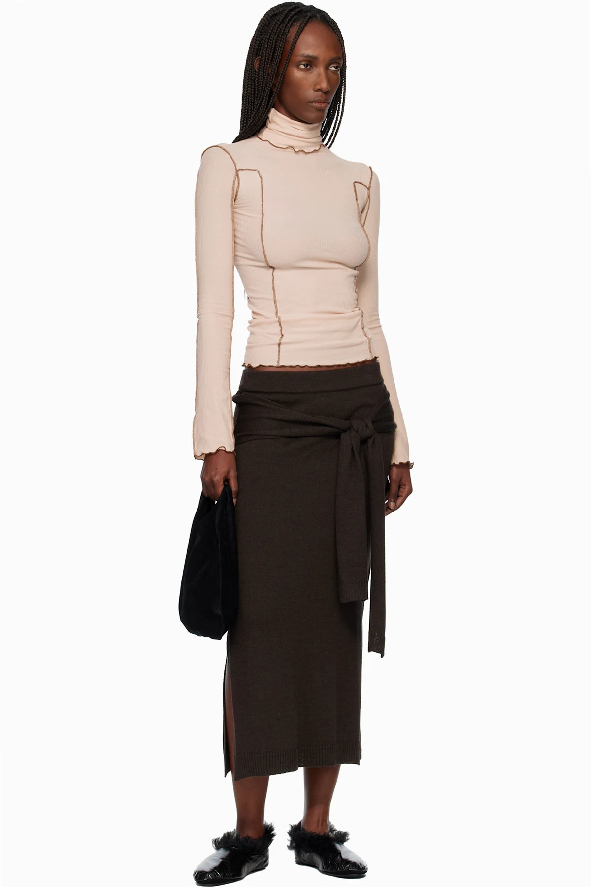 Rib-knit stretch organic cotton turtleneck.