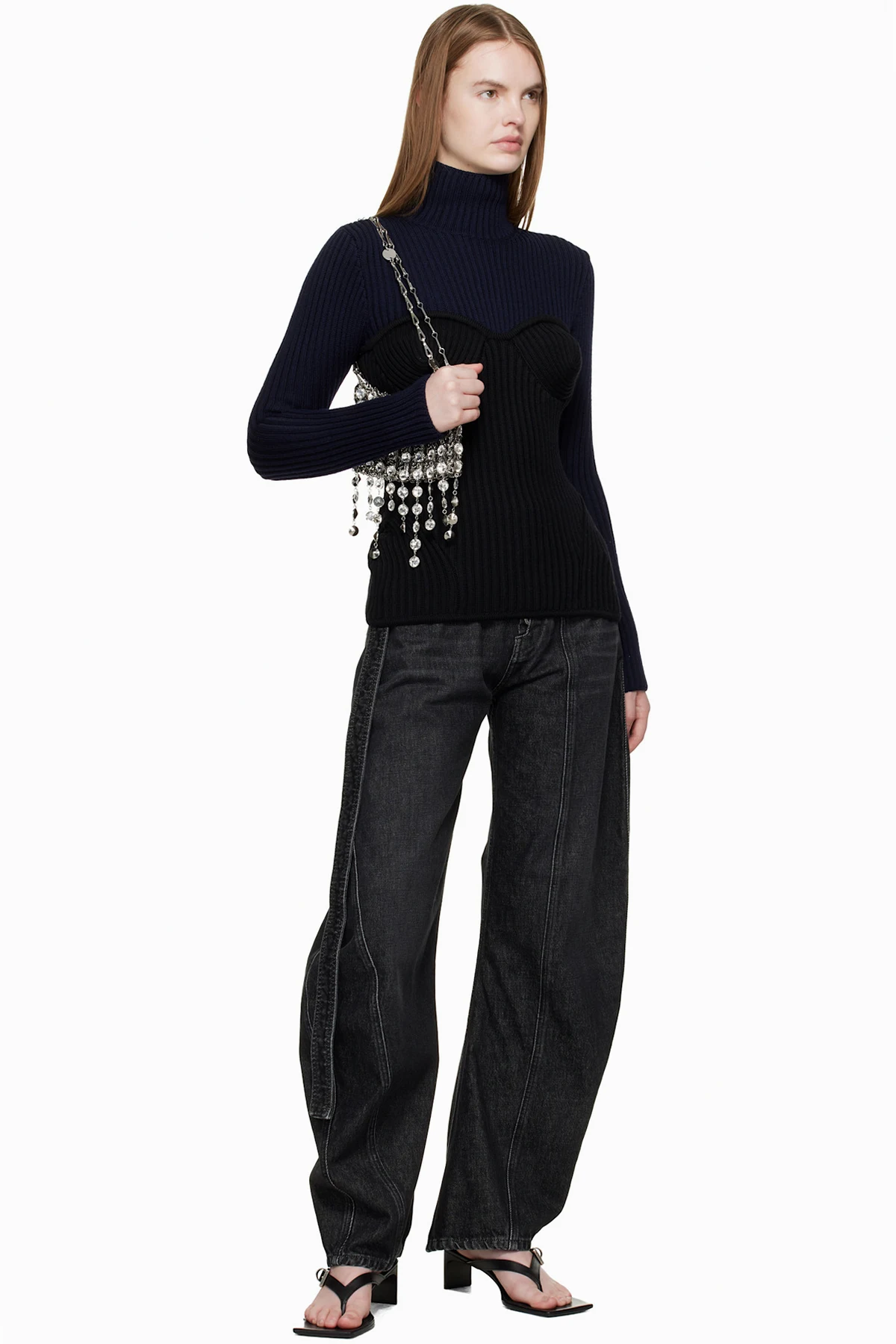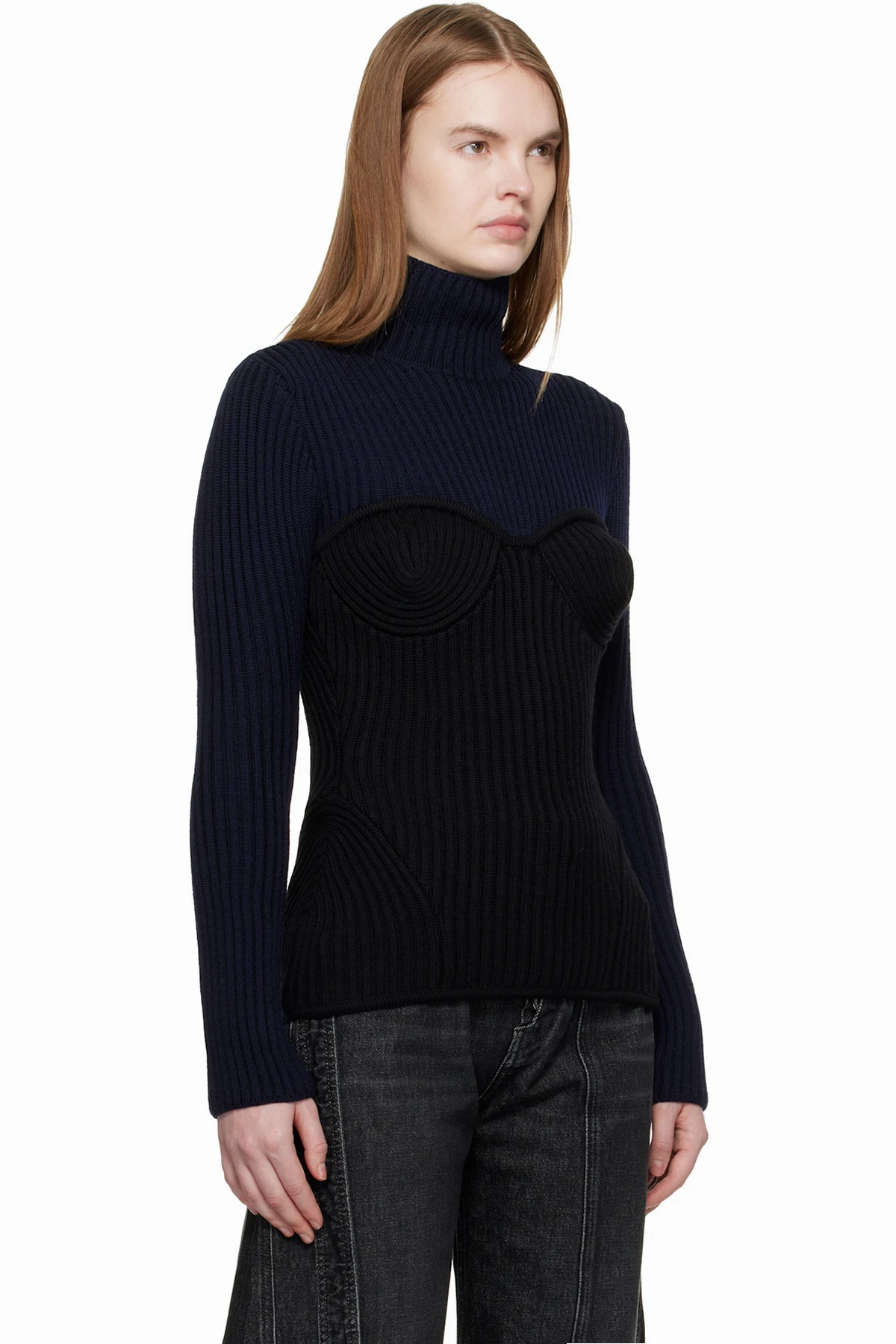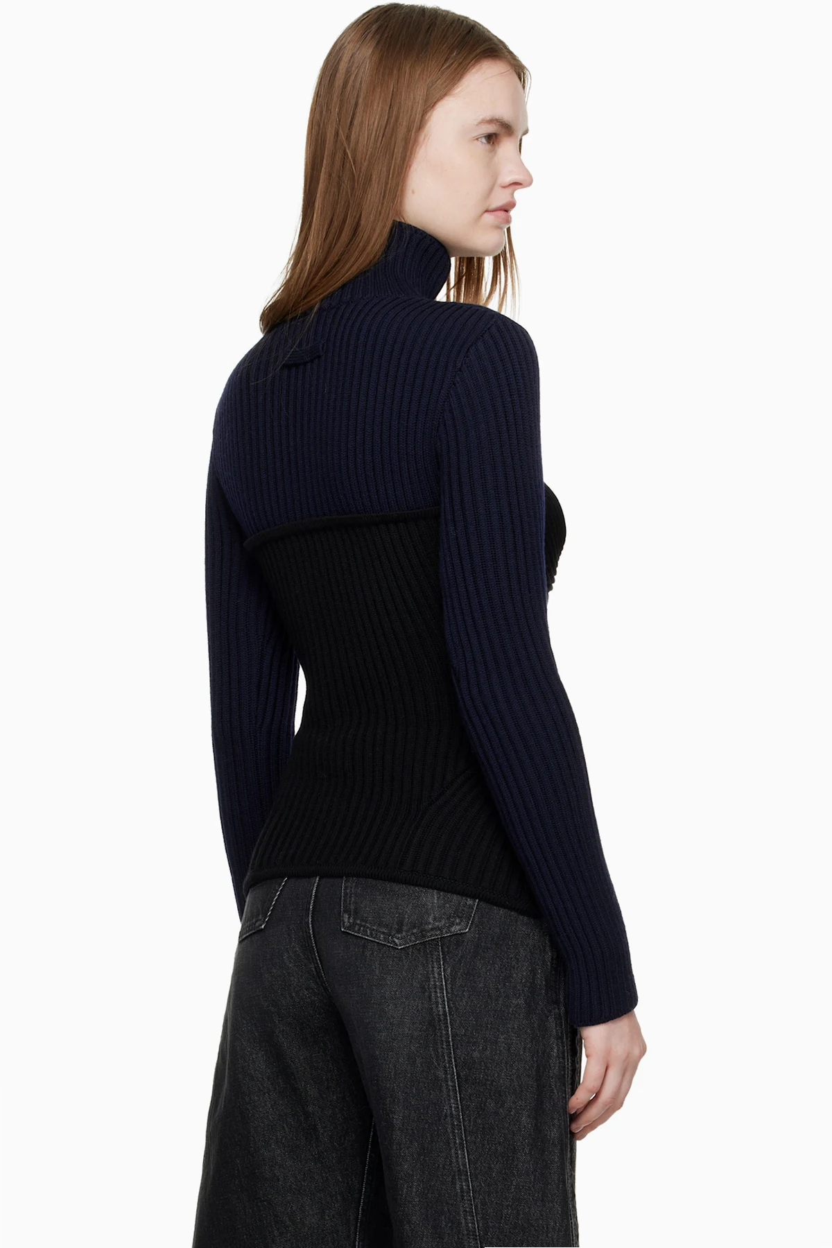 Jean Paul Gaultier Navy & Black Stretch Merino Wool Ribbed Turtleneck