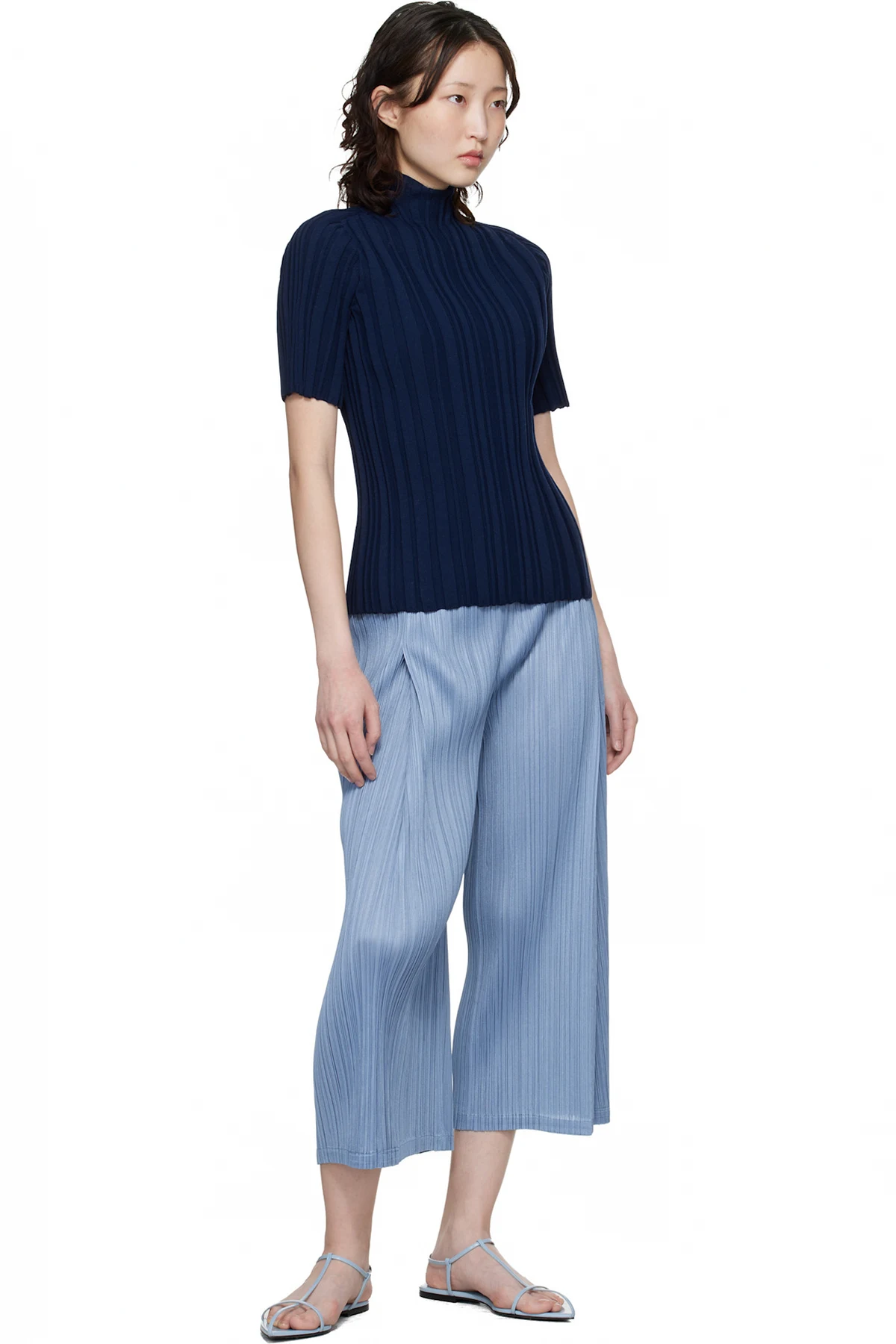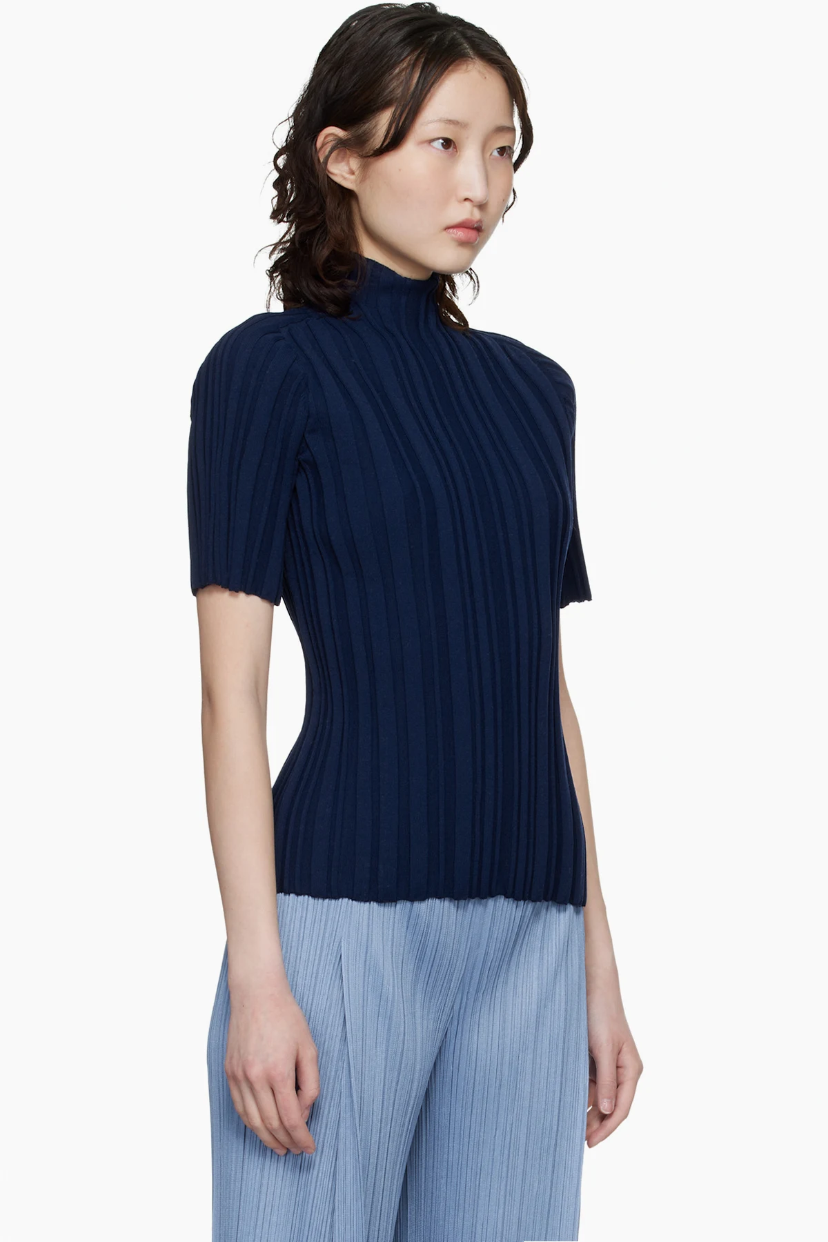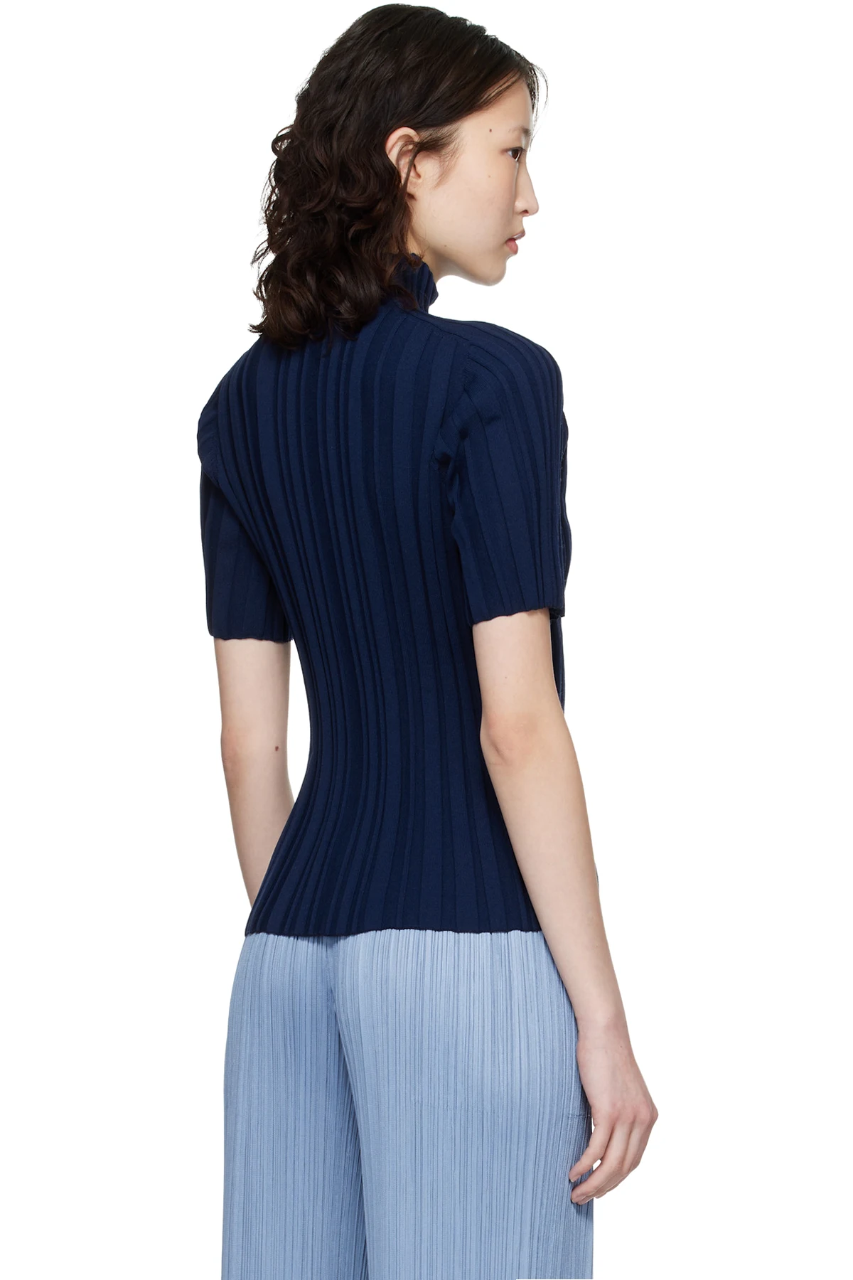 Pleats Please Issey Miyake Navy Rib Knit Turtleneck