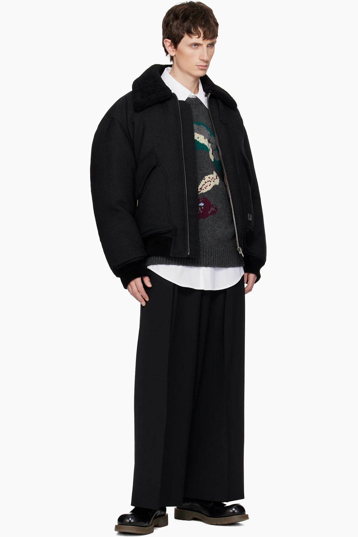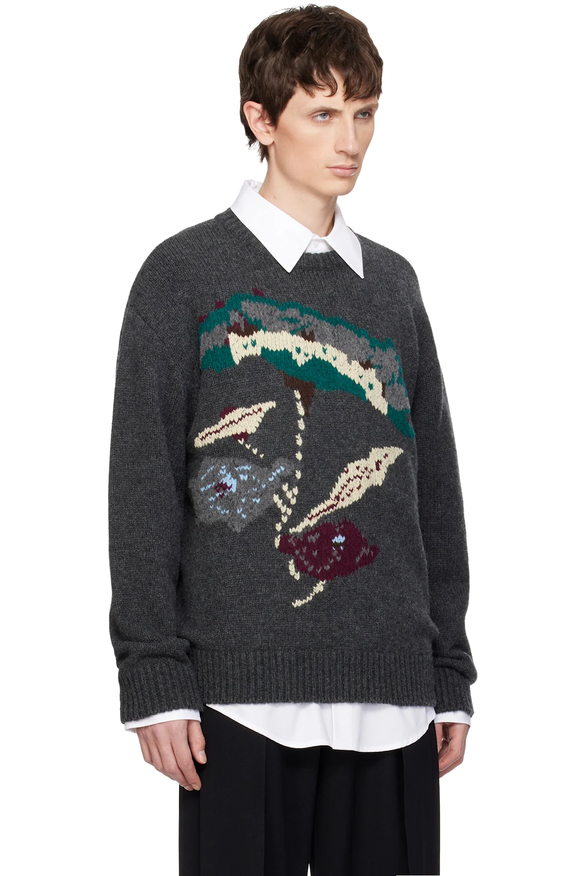 WOOYOUNGMI Gray Flower Jacquard Wool Sweater
