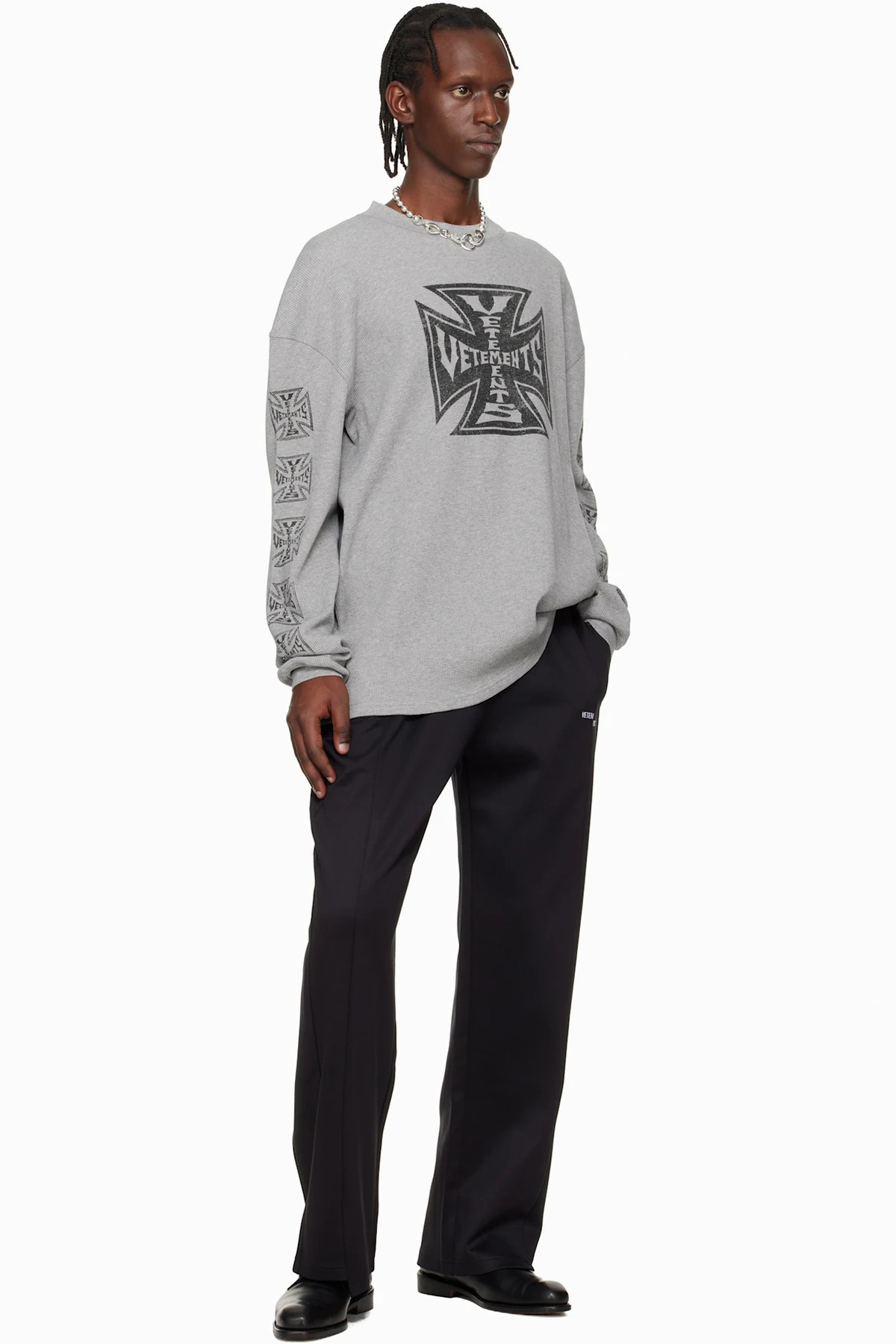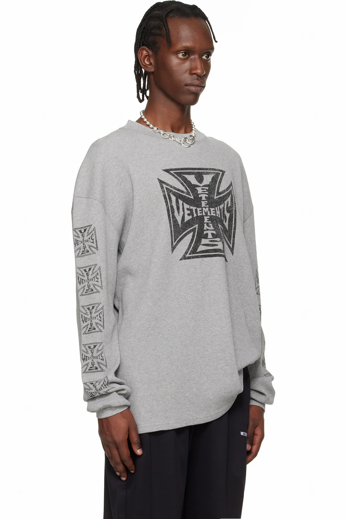 VETEMENTS Gray Biker Cross Waffle Longsleeve T-shirt