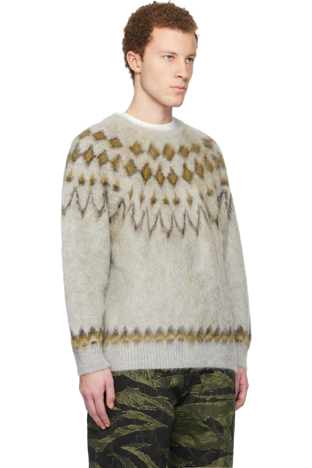South2 West8 Gray Mohair Crew Neck Sweater