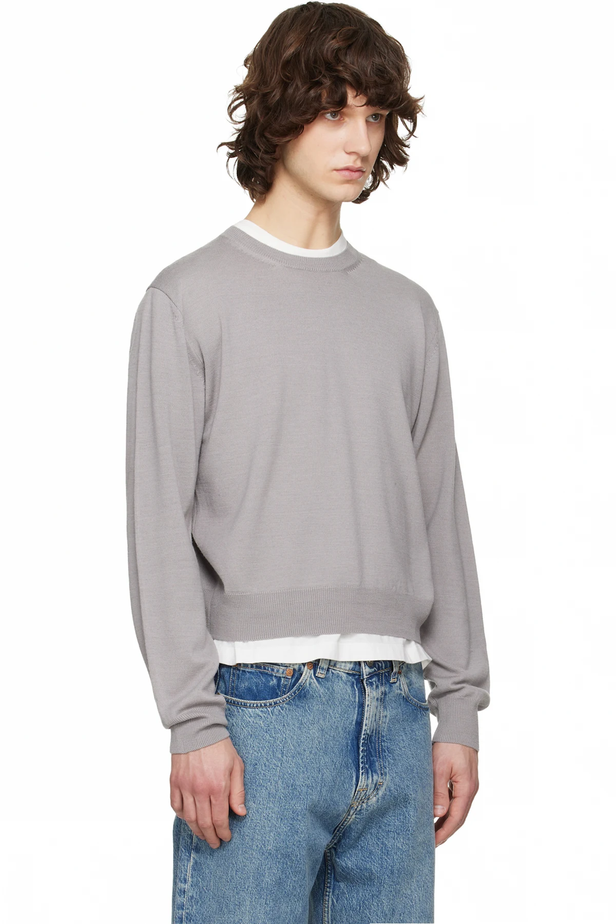TONYWACK Gray Extrafine Wool Crew Neck Knit Sweater