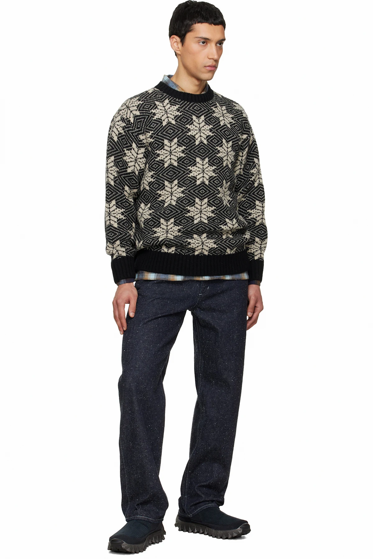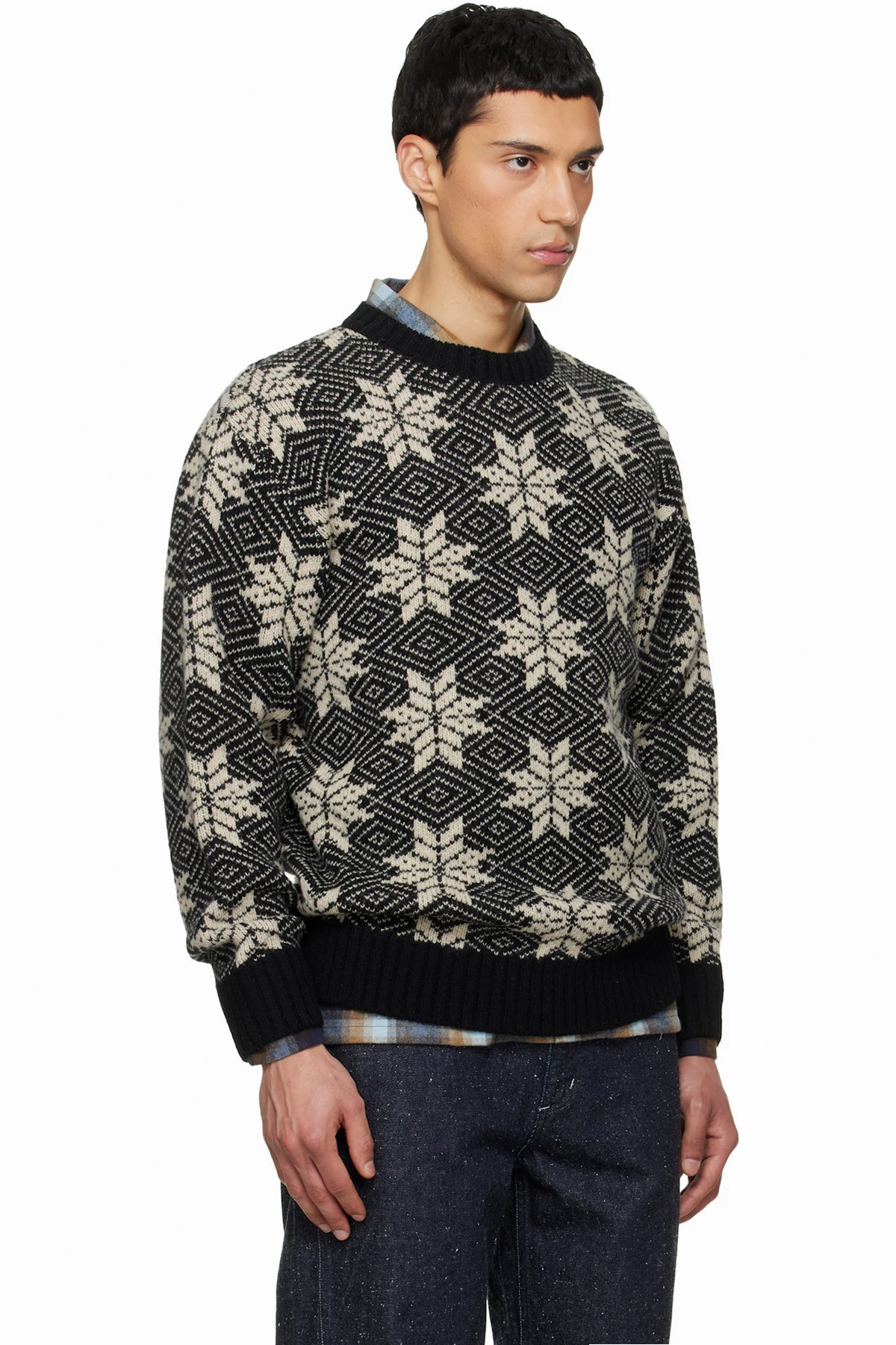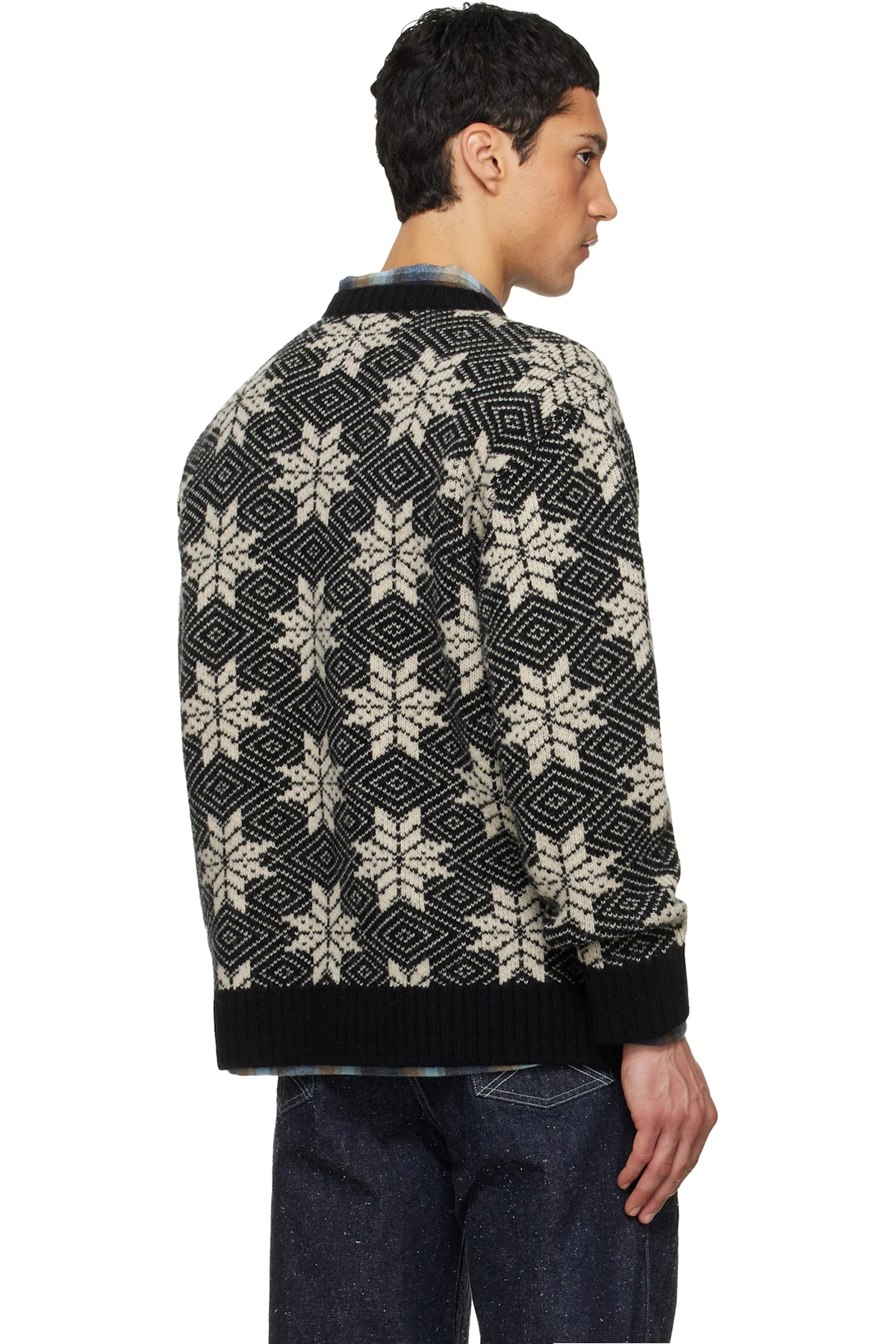 South2 West8 Black Crew Neck Snowflakes Sweater