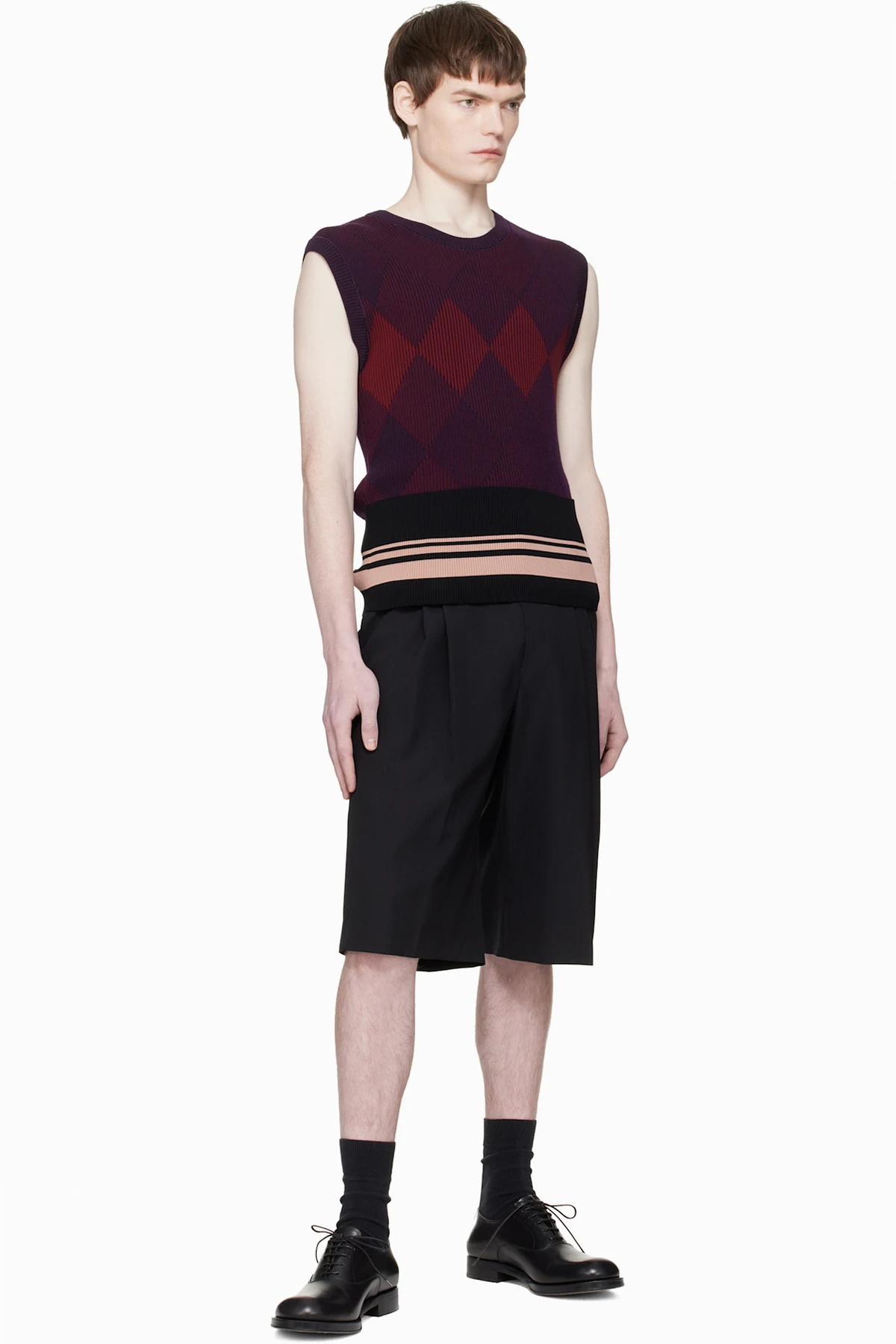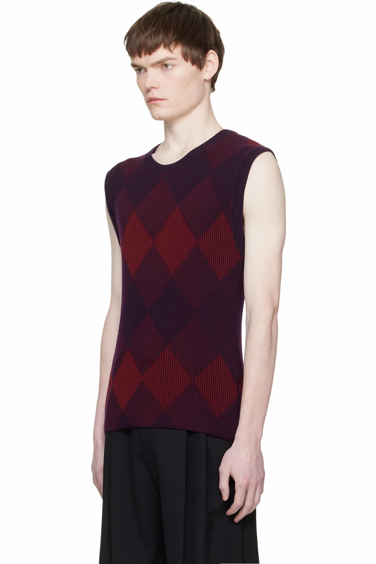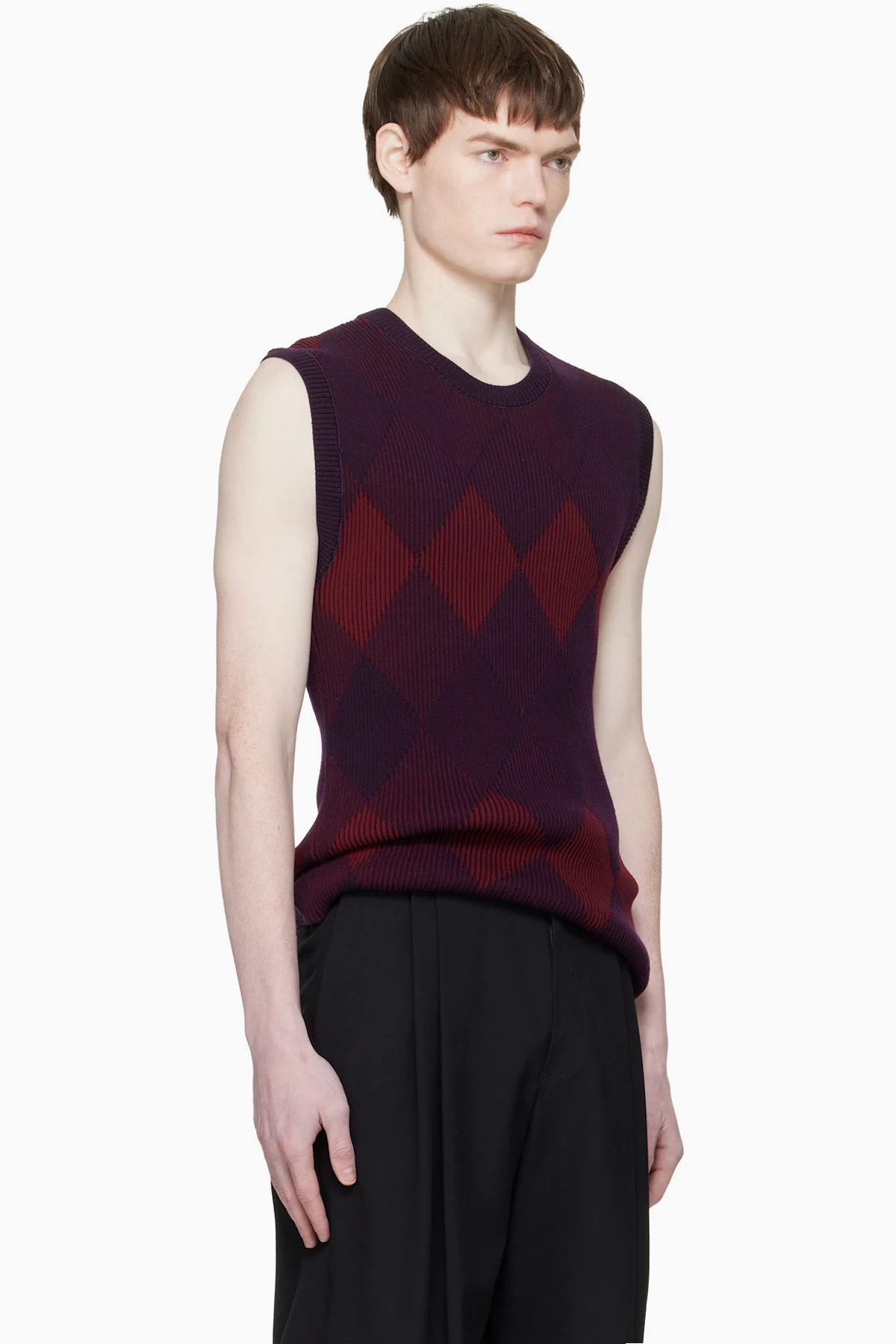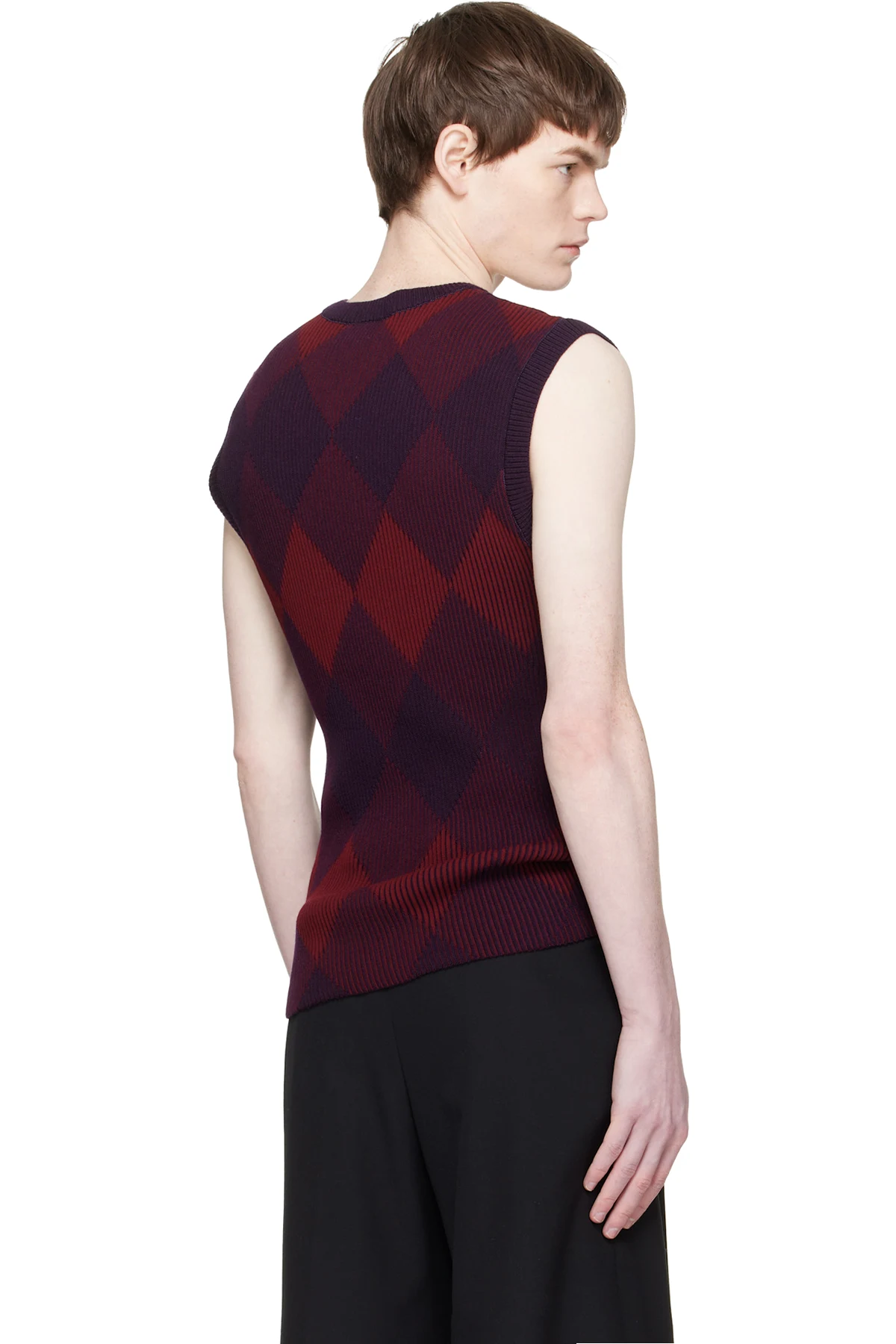 Dries Van Noten Red & Purple Argyle Sweater Vest
