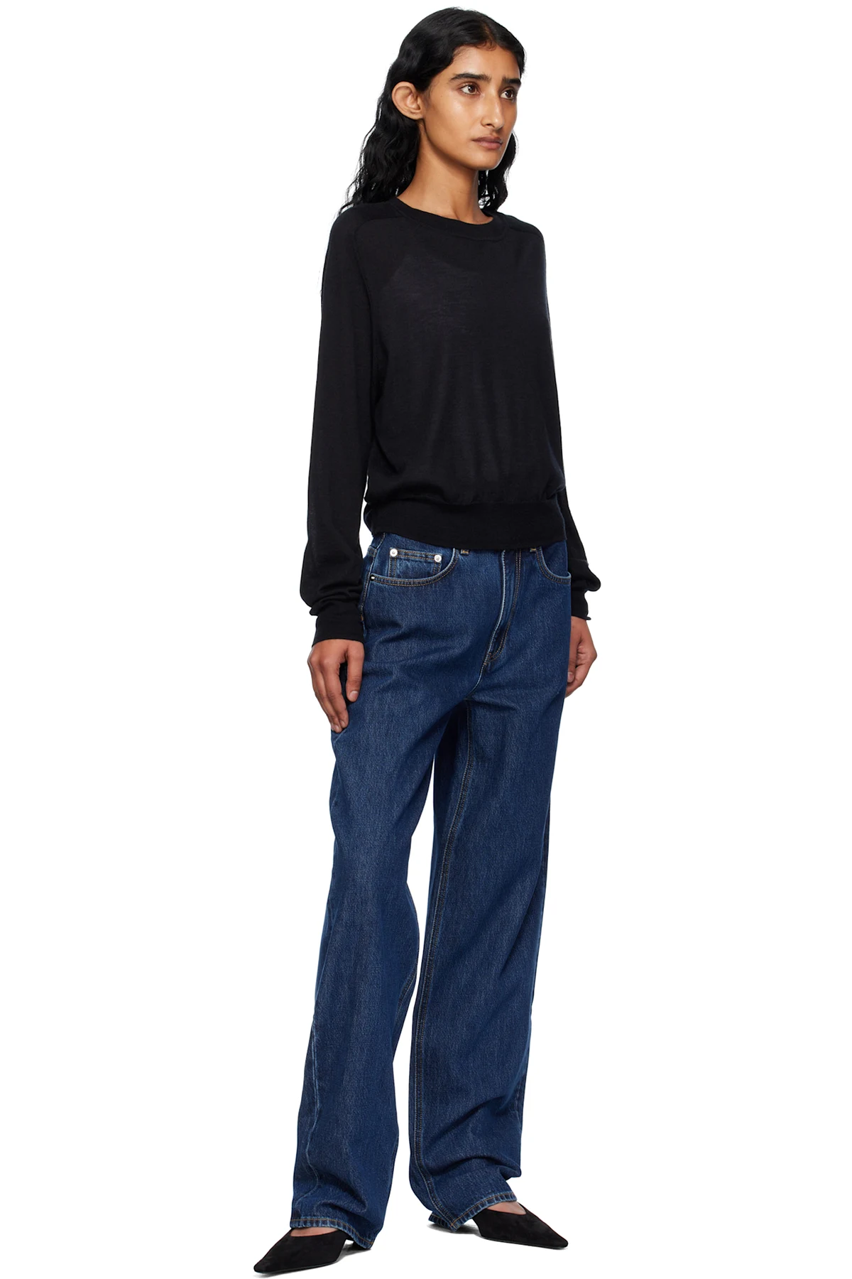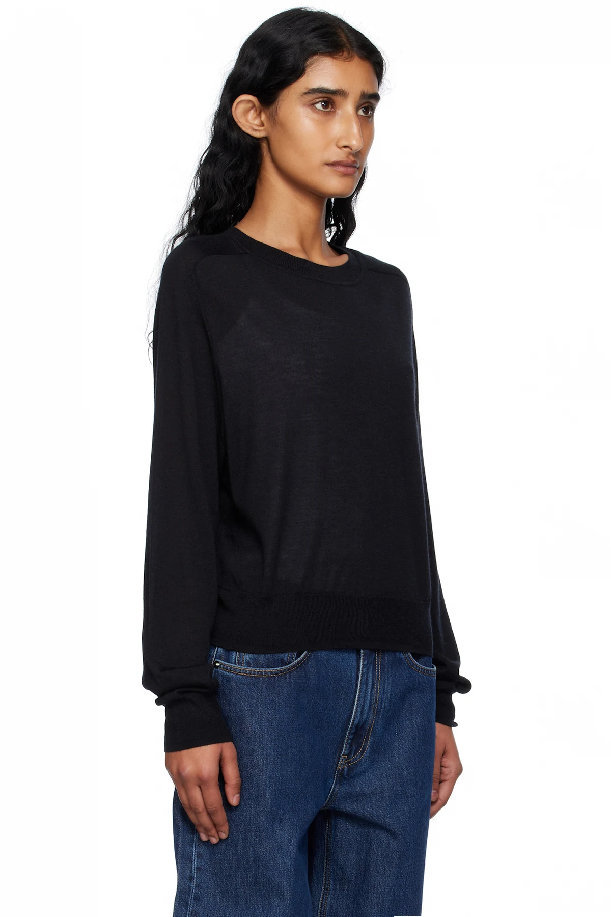 Loulou de Saison Black Angus Cashmere Crew Neck Sweater