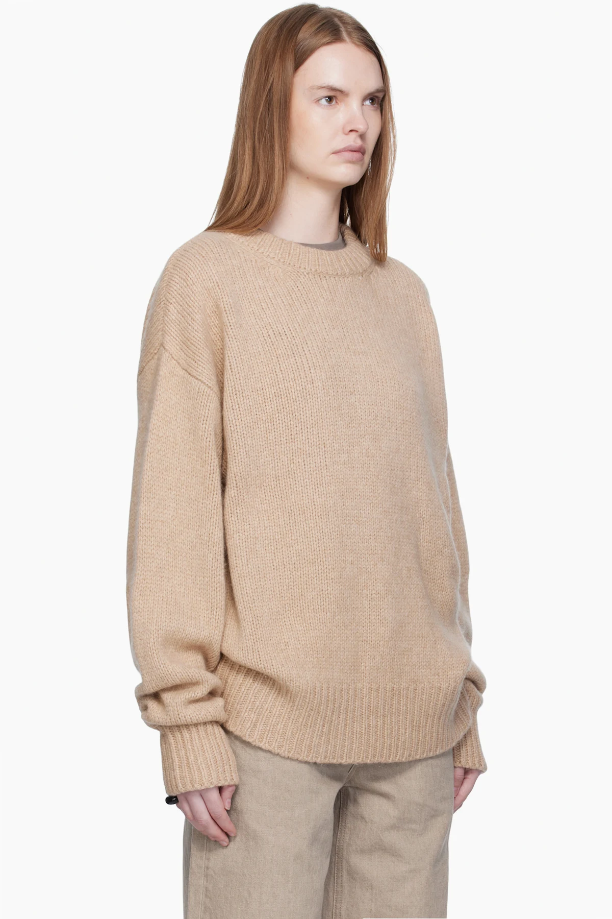 Arch The Beige Crew Neck Oversized Sweater