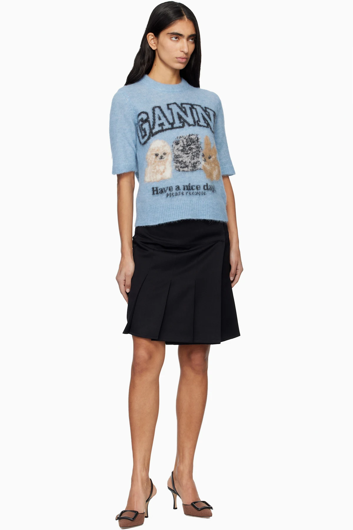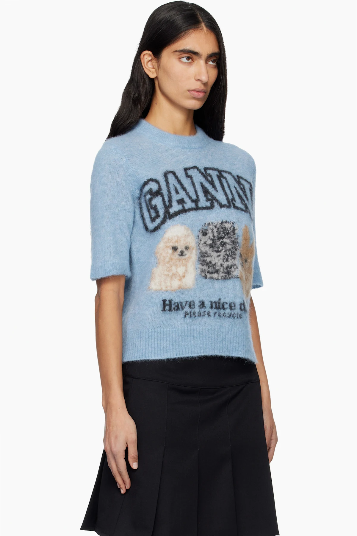 Ganni Blue Fine Brushed Alpaca Puppies T-shirt