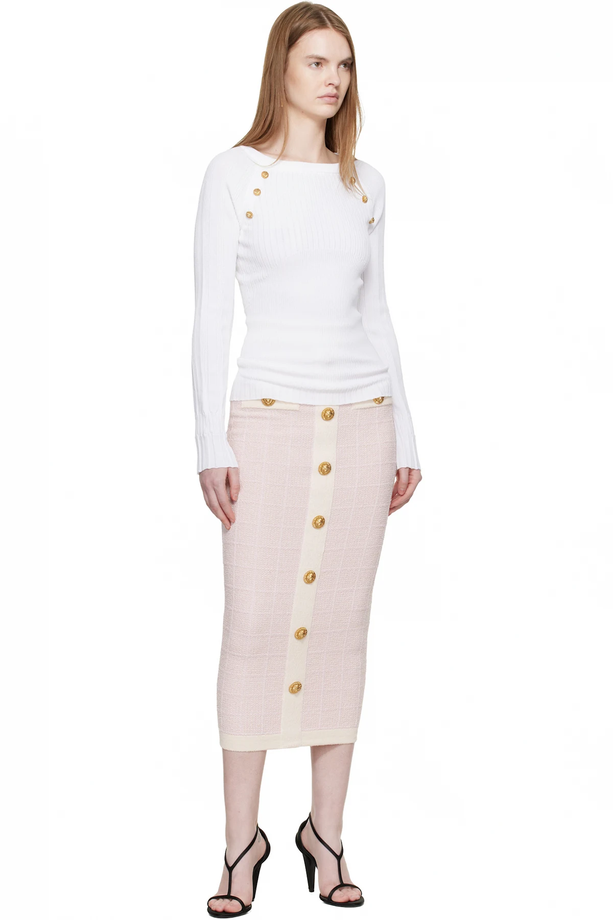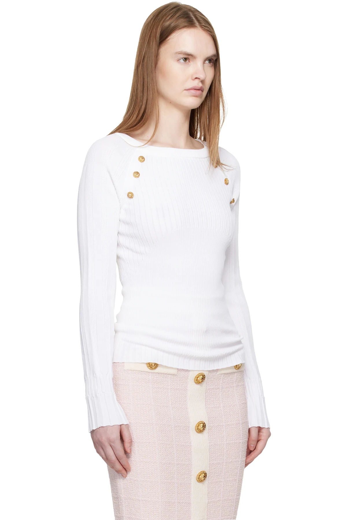 Balmain White Knit Buttons Sweater