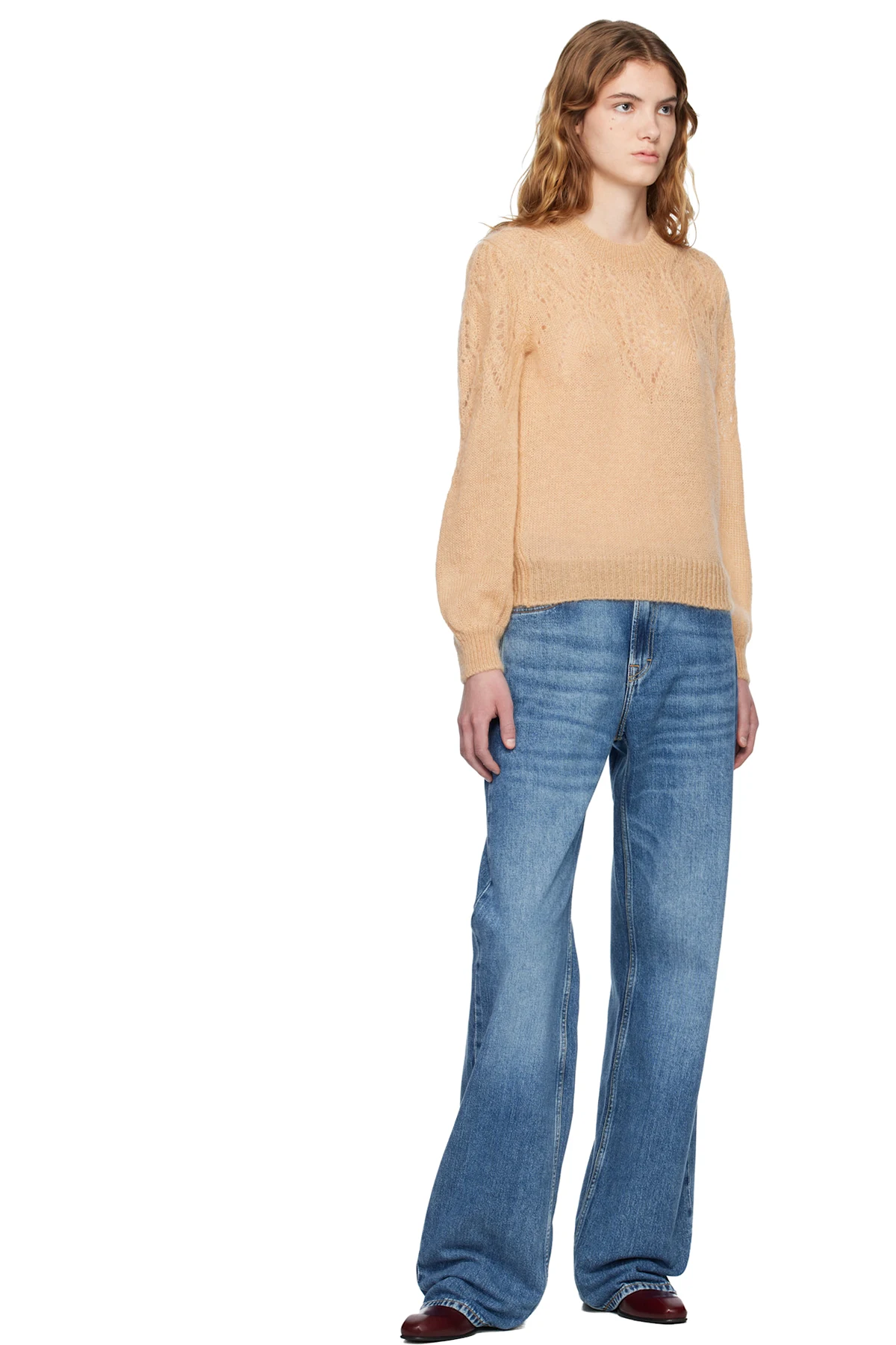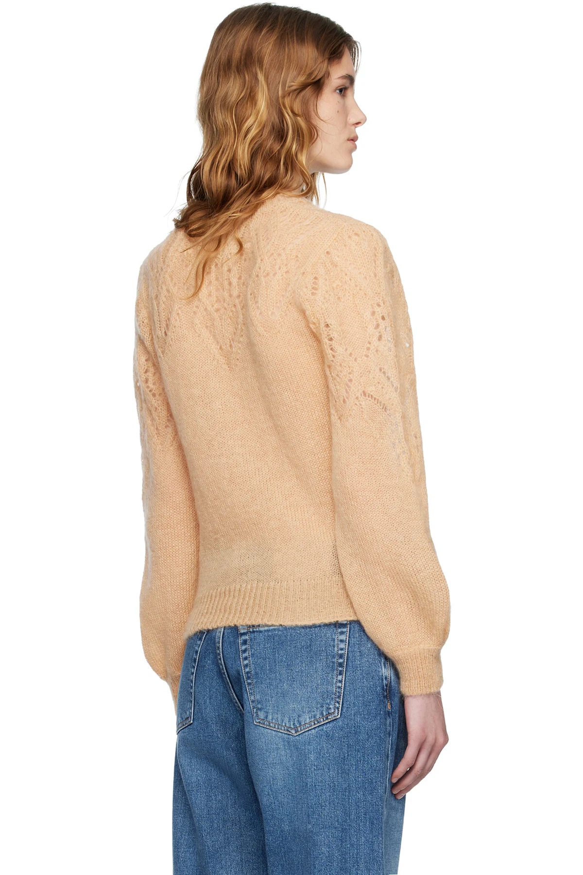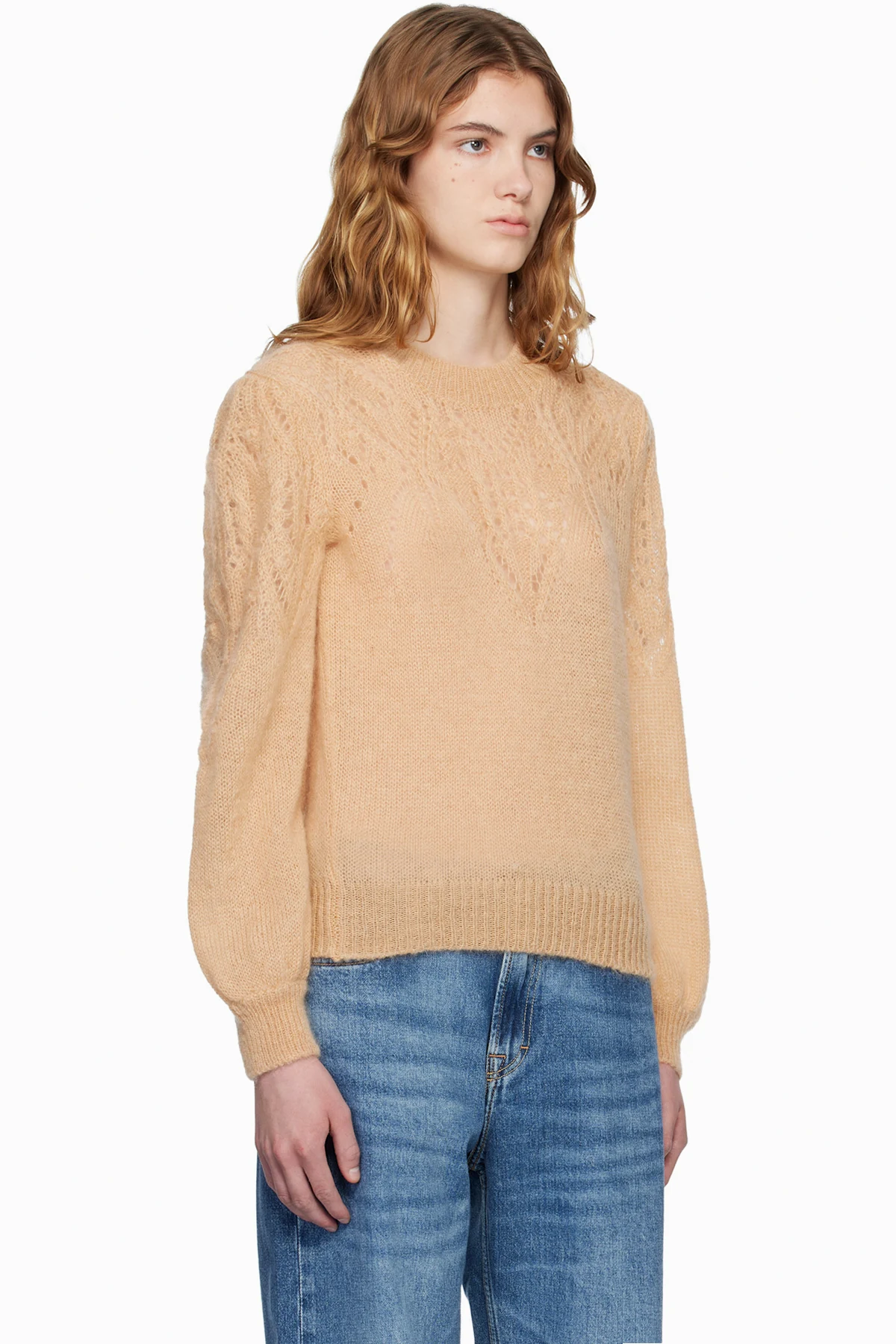 Isabel Marant Etoile Tan Jenia Openwork Mohair Knit Sweater