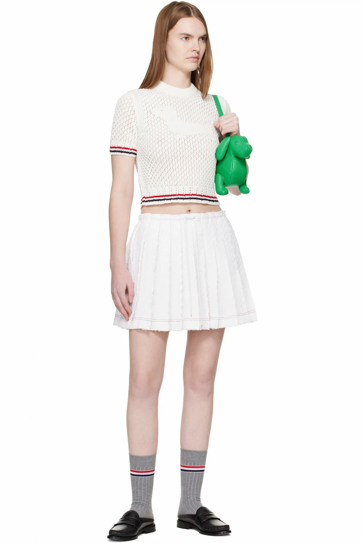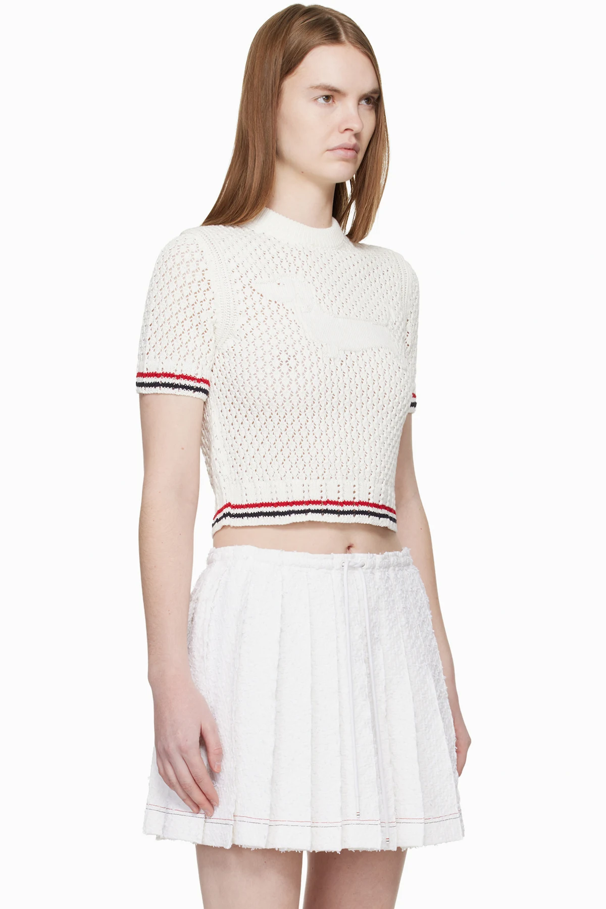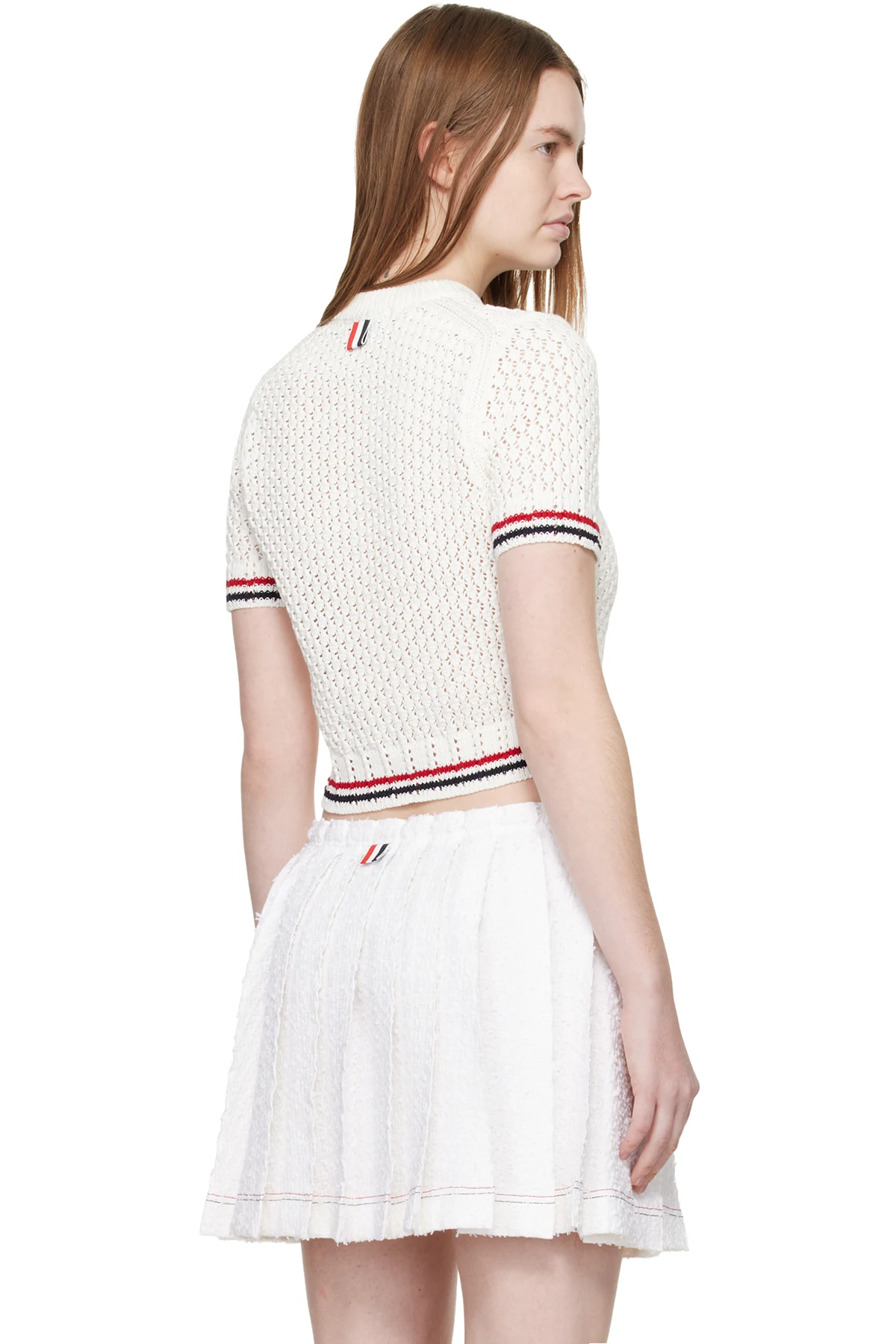 Thom Browne White Cotton Pointelle Hector RWB Sweater