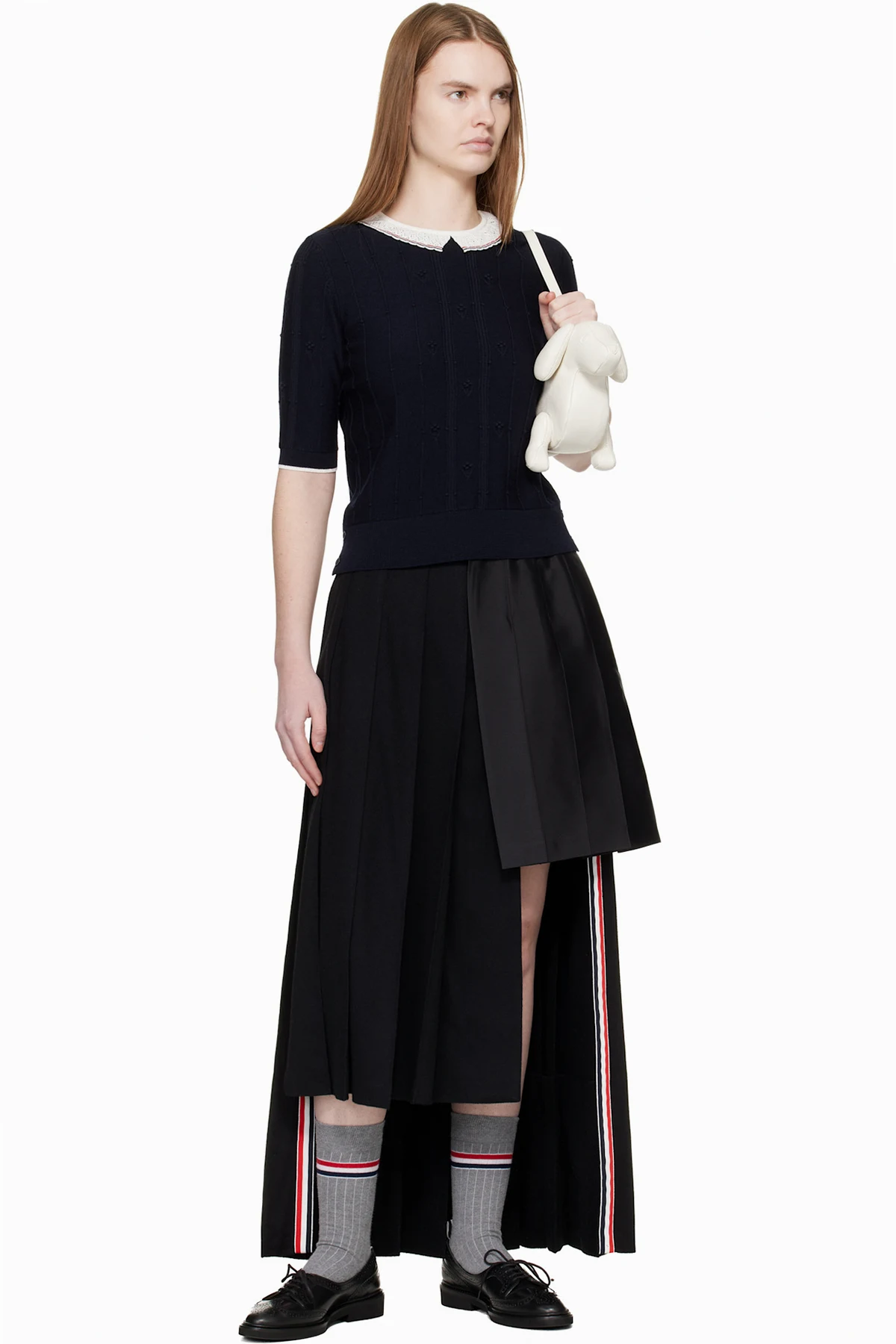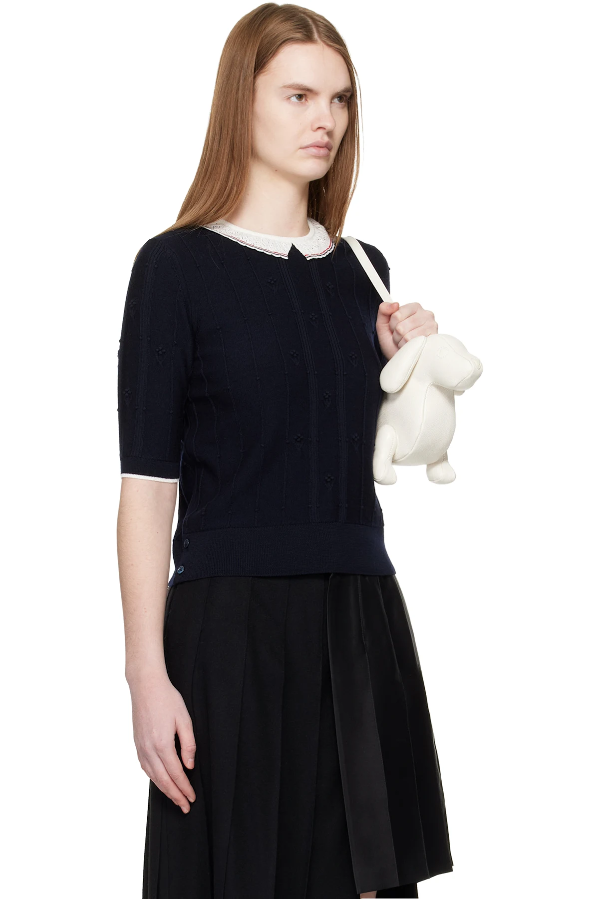 Thom Browne Navy Bobble Stitch Short Sleeve Sweater
