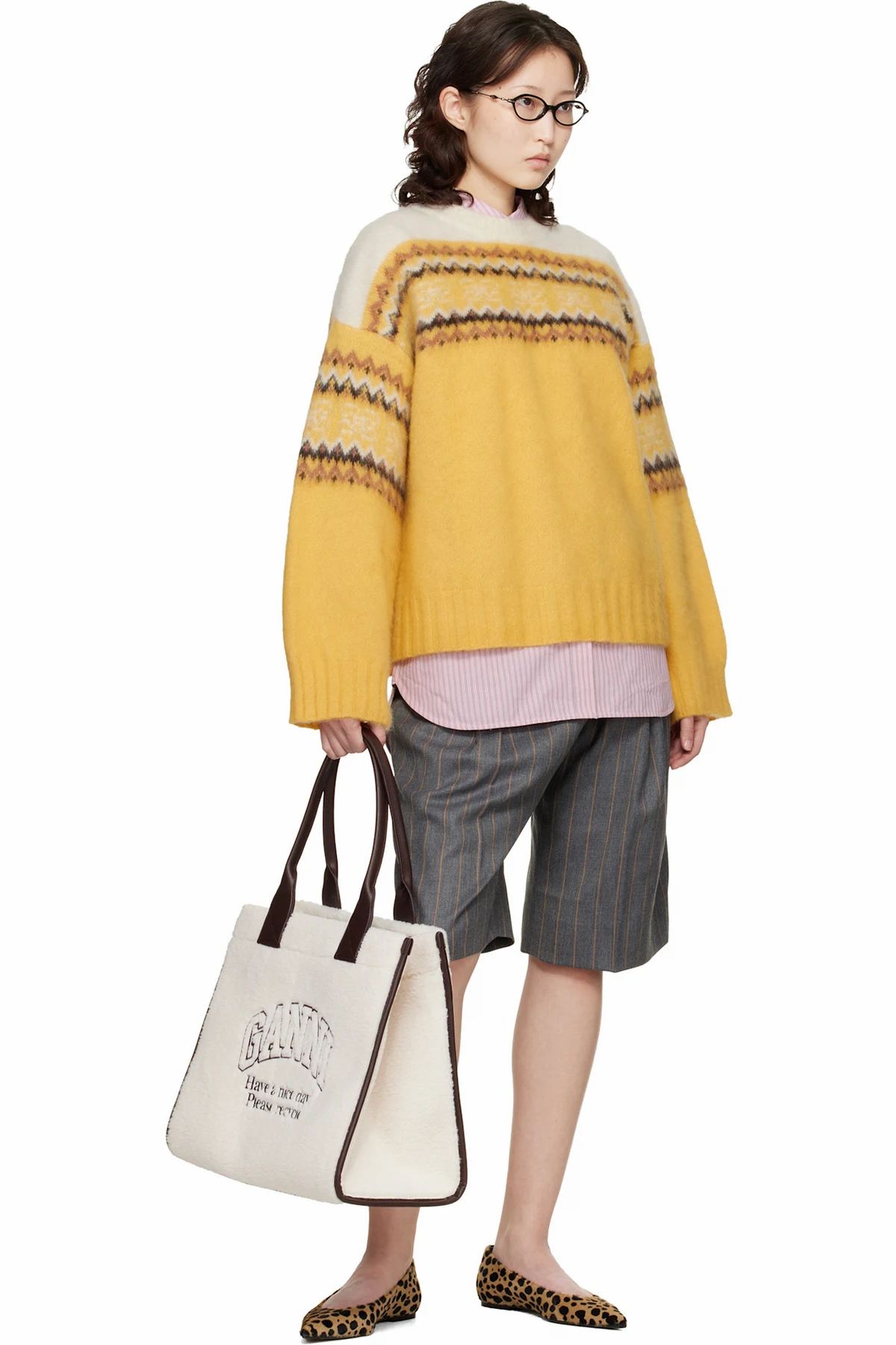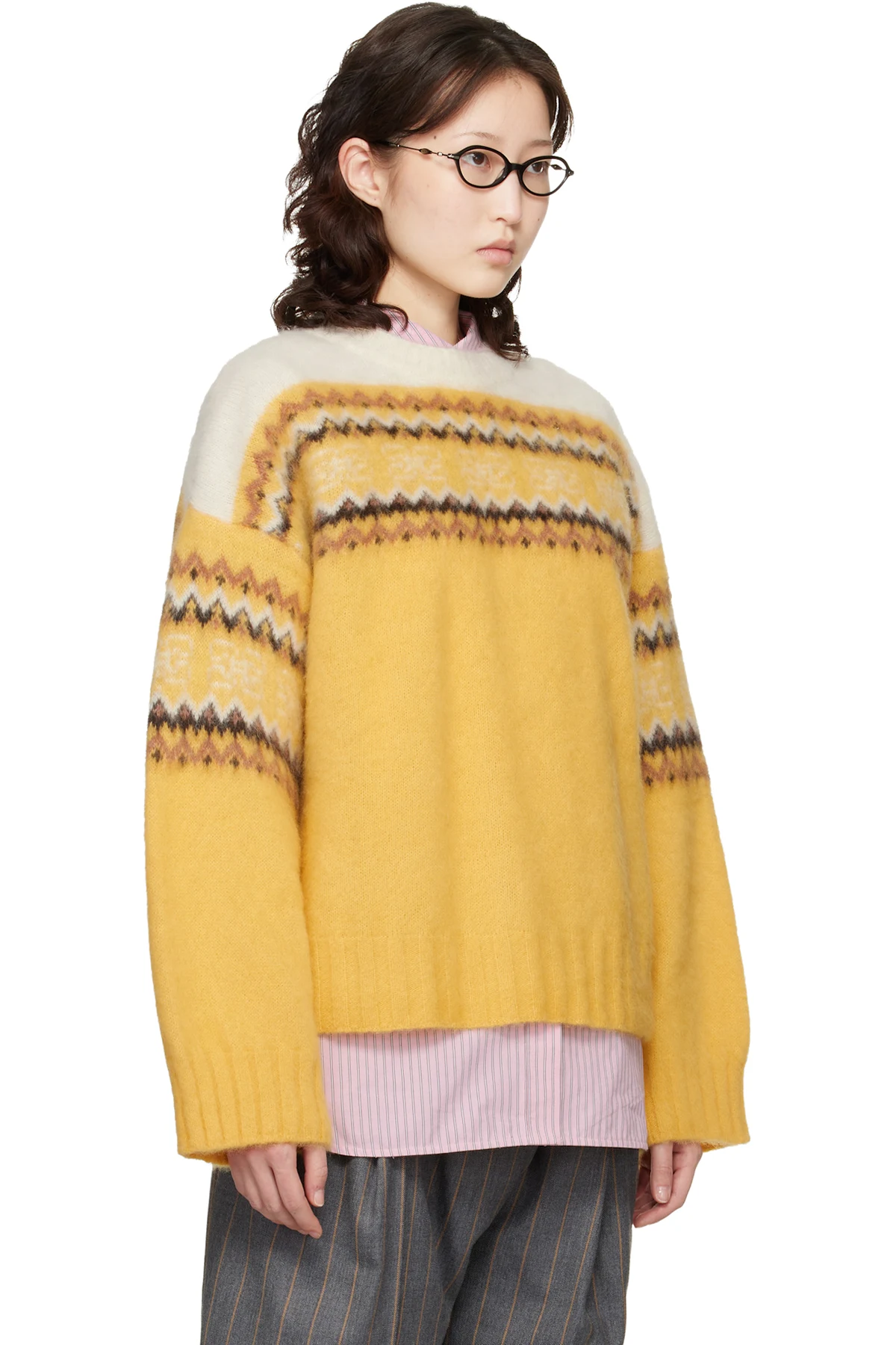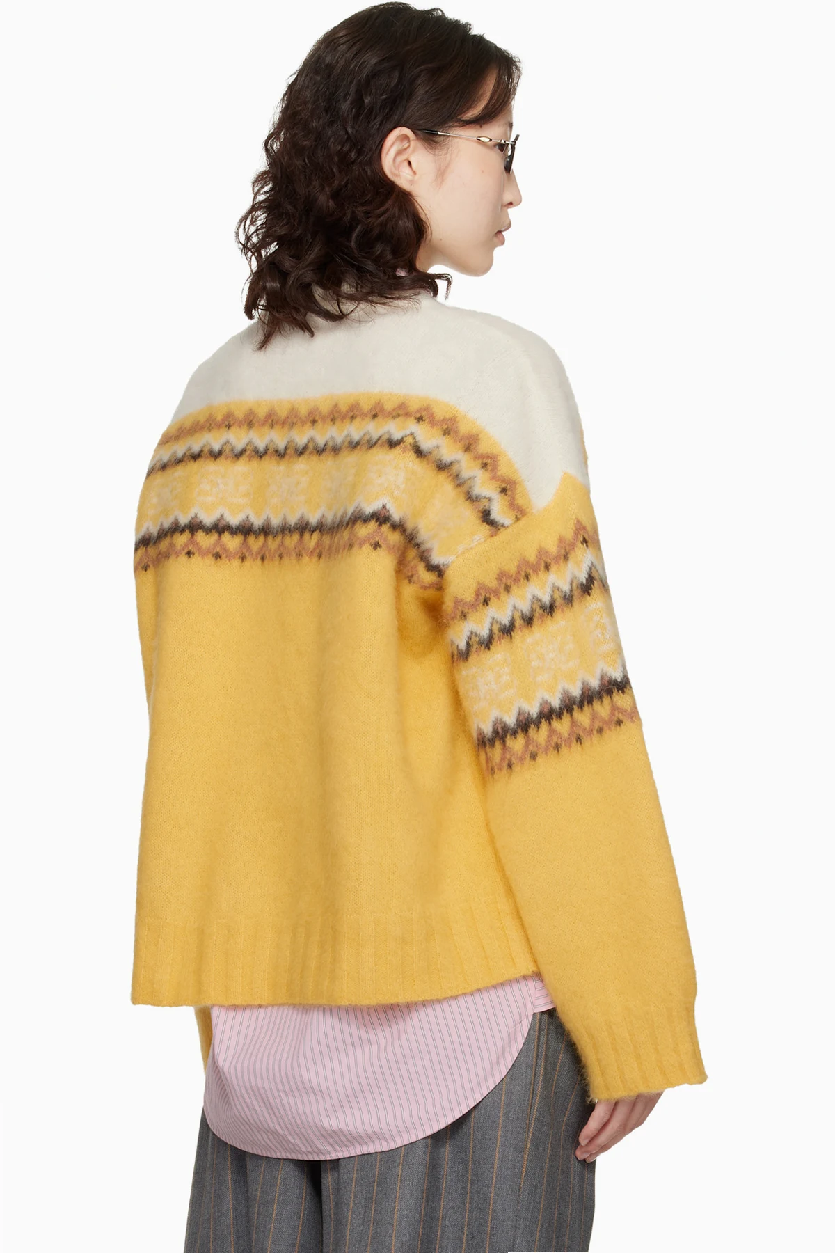 Ganni Yellow Jacquard Sweater