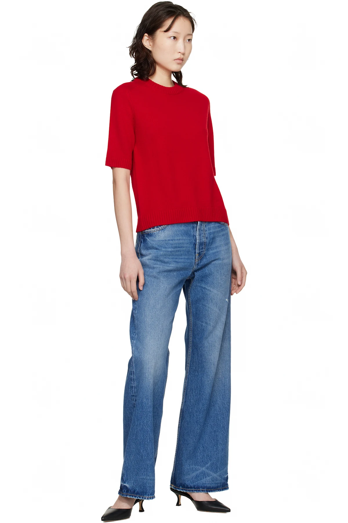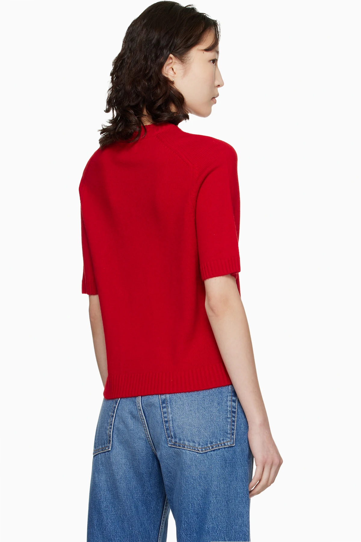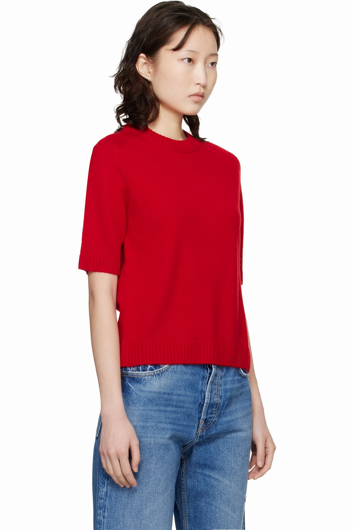 Loulou de Saison Red Dara Short-Sleeve Cashmere Sweater