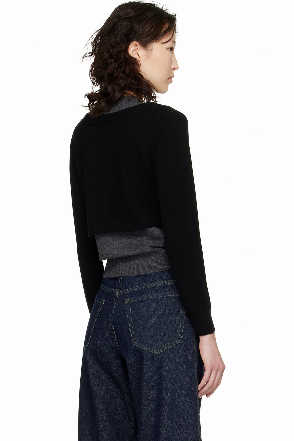 · Rib-knit crewneck, layered Y-neck, hem, and cuffs
