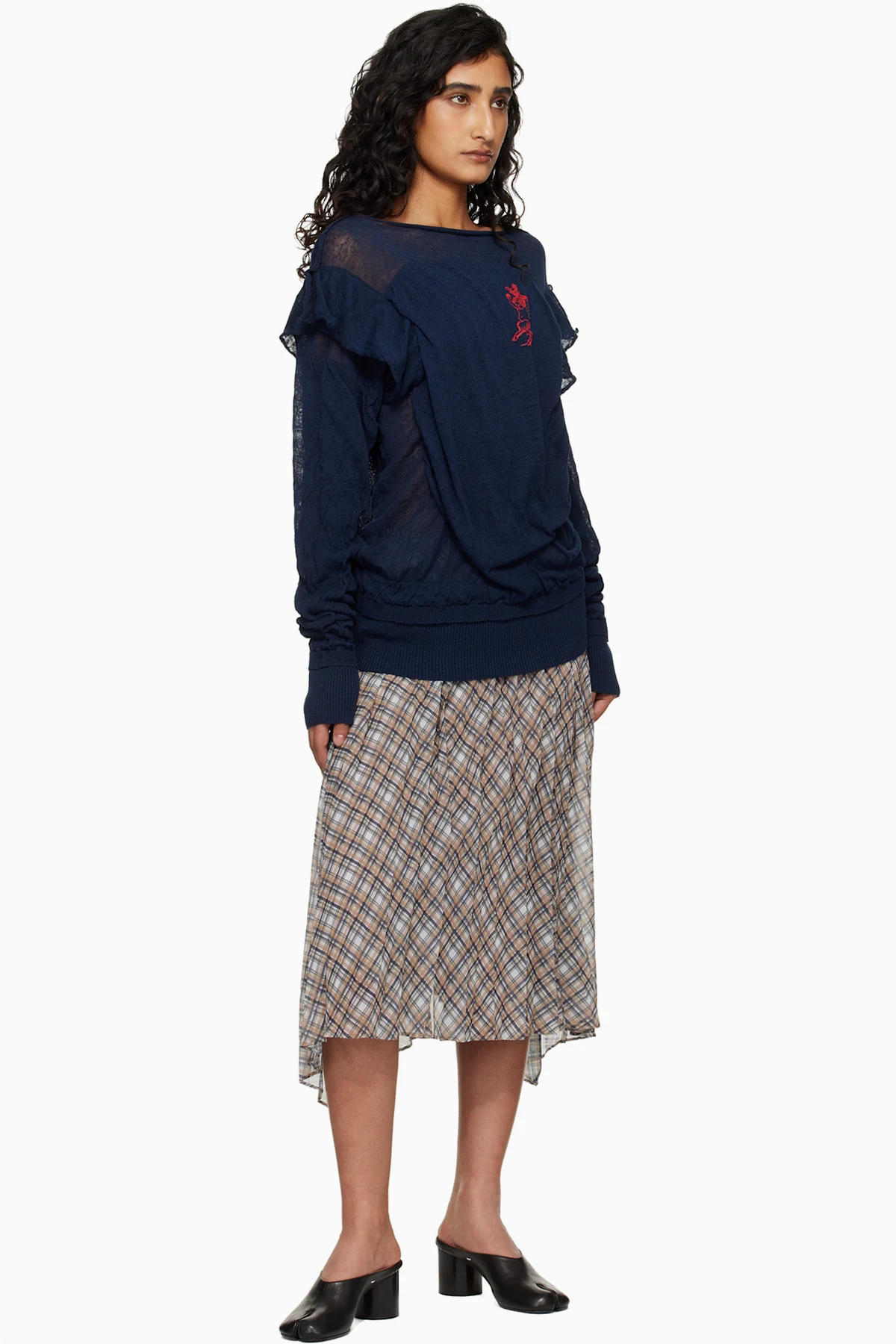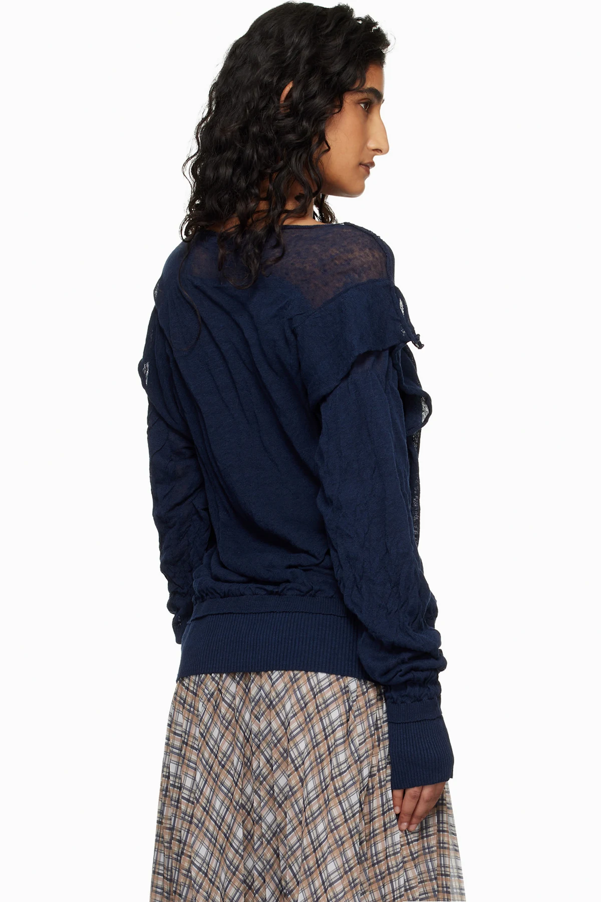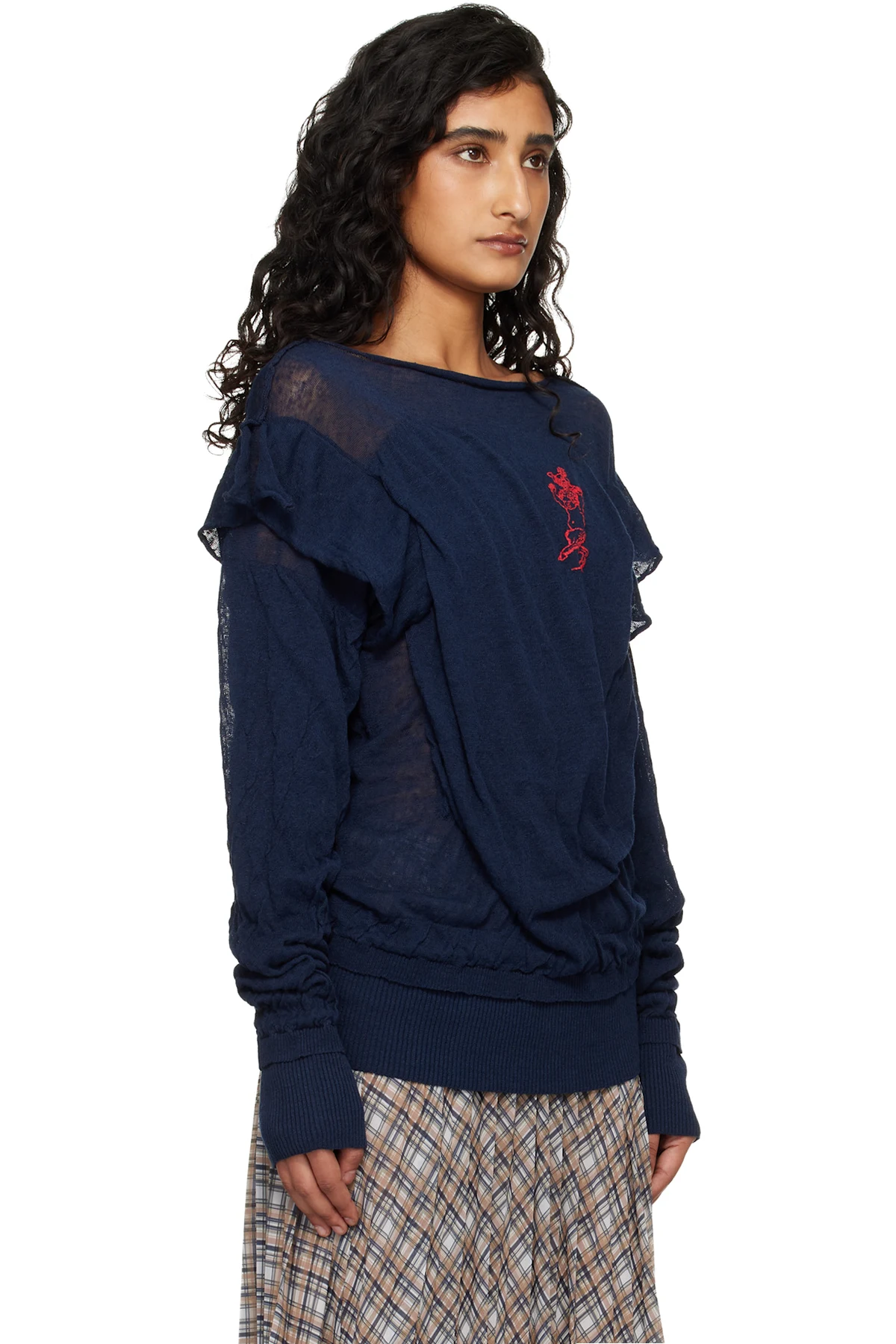 Vivienne Westwood Navy Linen Cotton Blend Crinkled Sweater