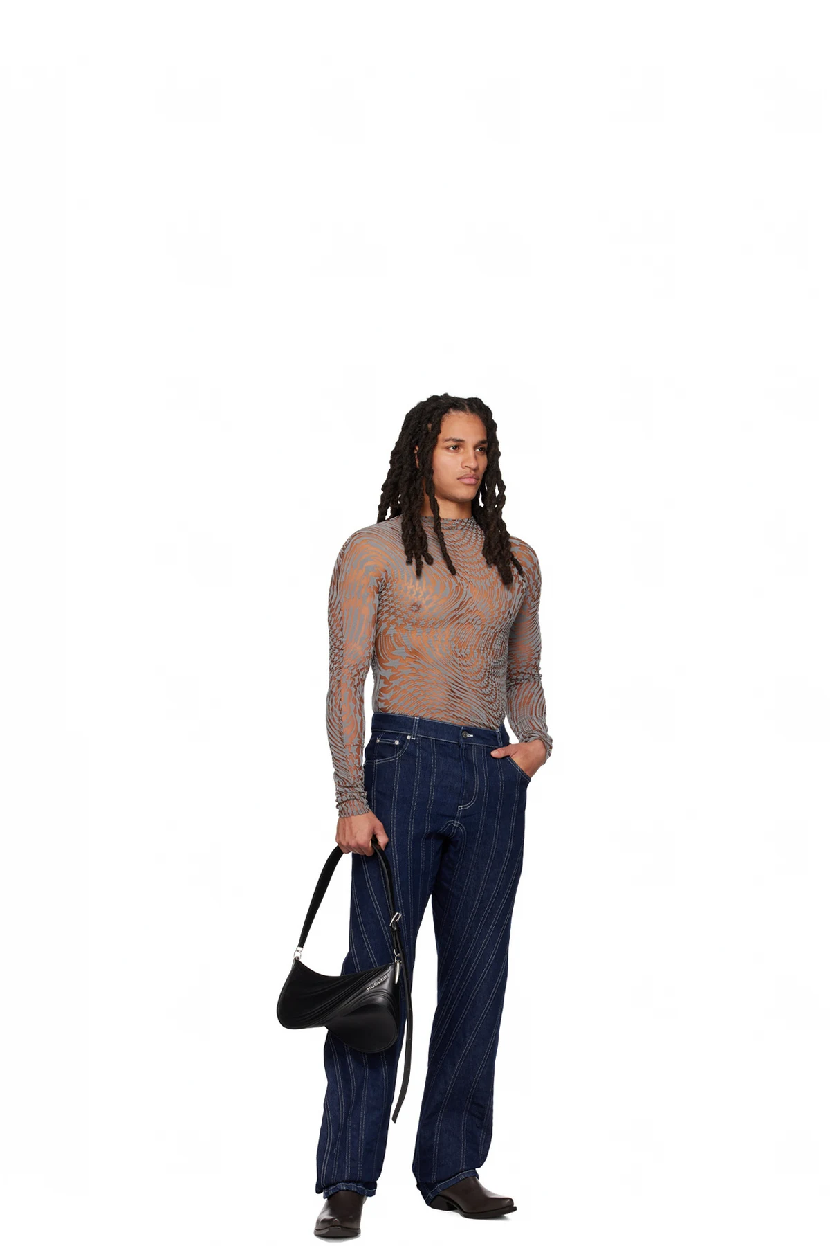 Mugler Tan & Gray Star Turtleneck