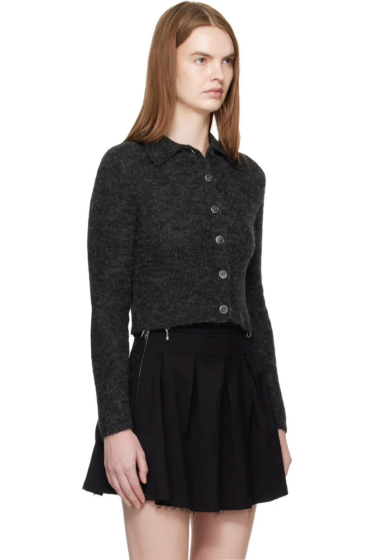 Brushed knit alpaca- and wool-blend cardigan.