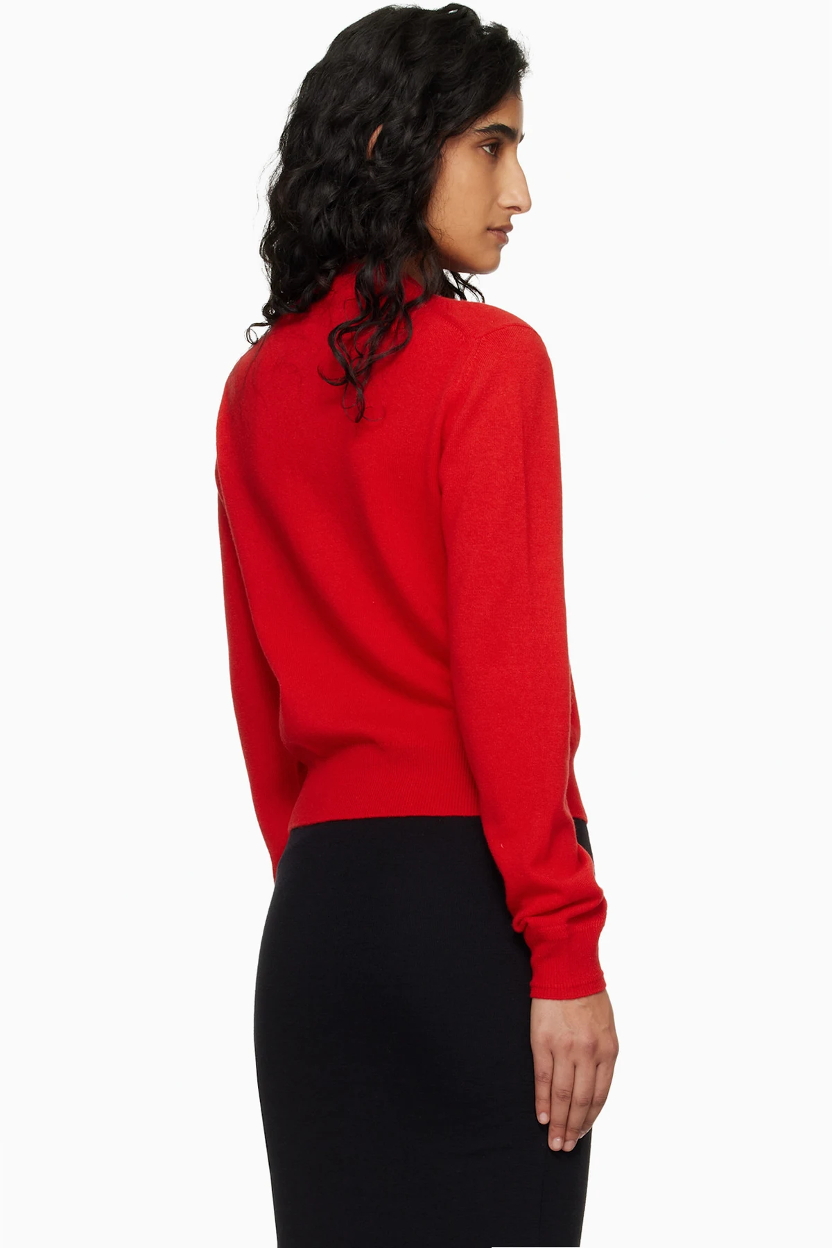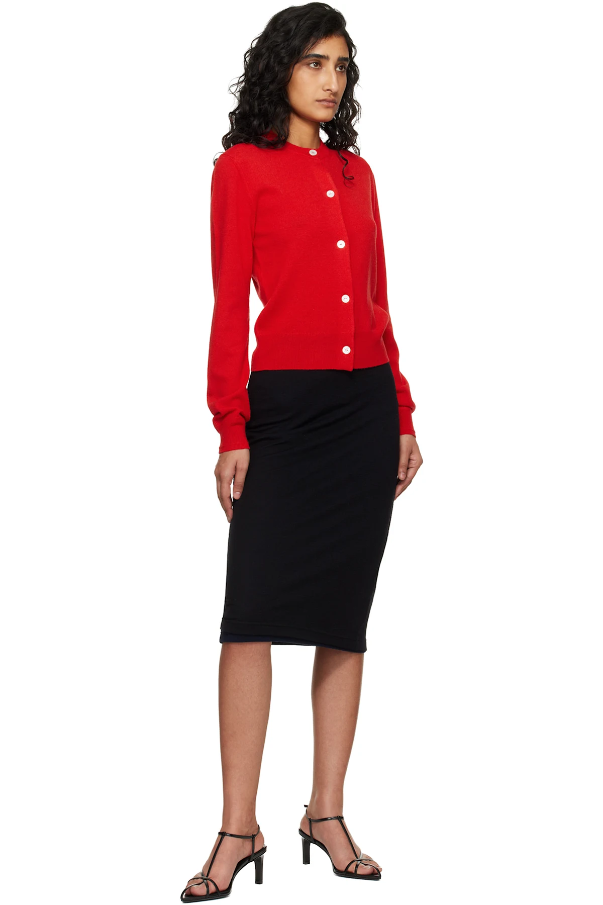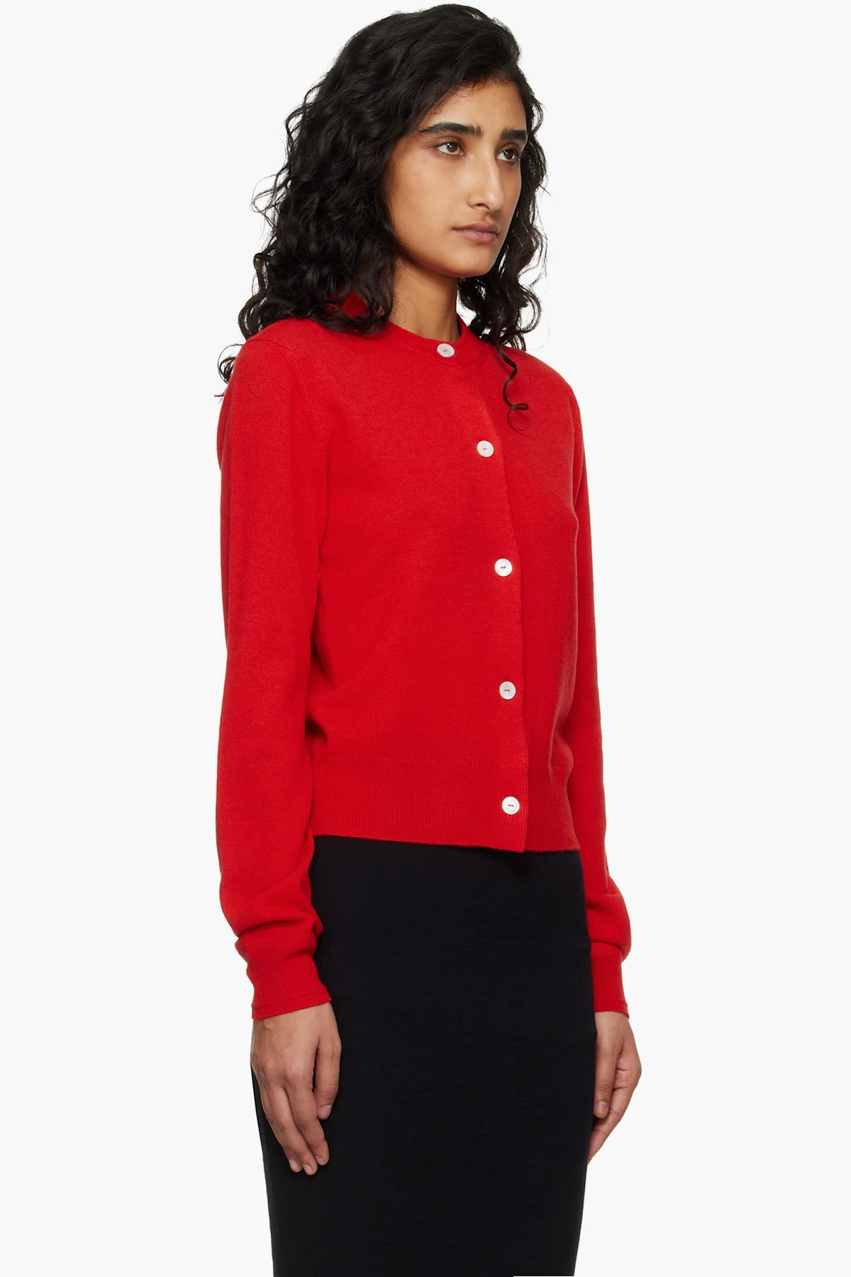 JIL SANDER Red Lightweight Wool Crew Neck Cardigan