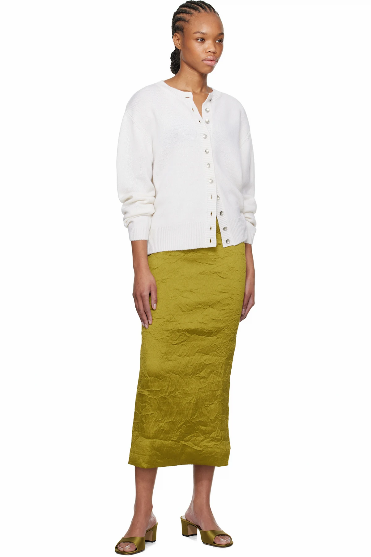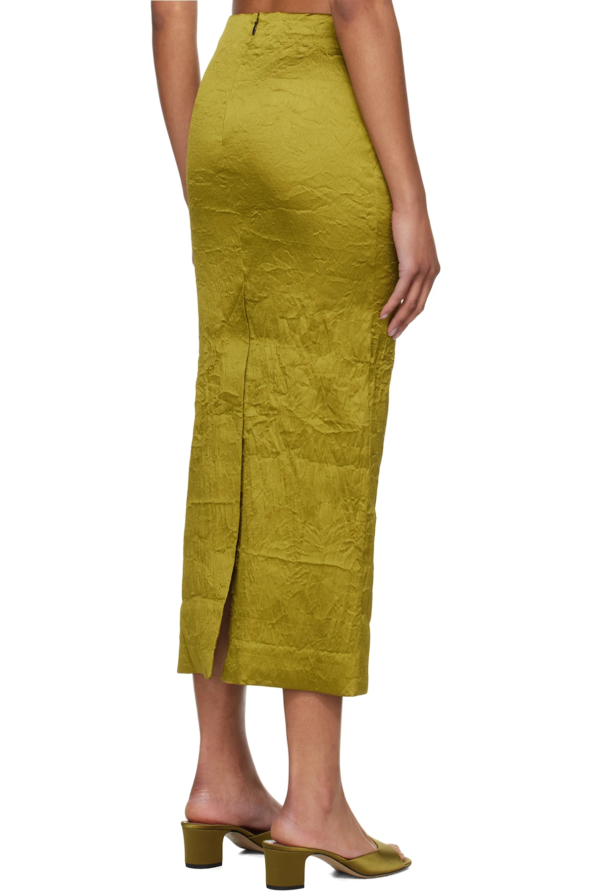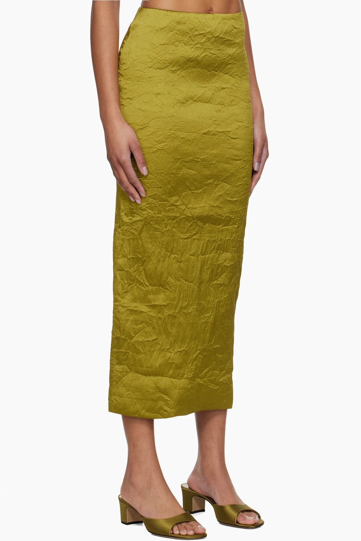 Crinkled stretch polyester-blend twill maxi skirt. Metallic threads throughout.
