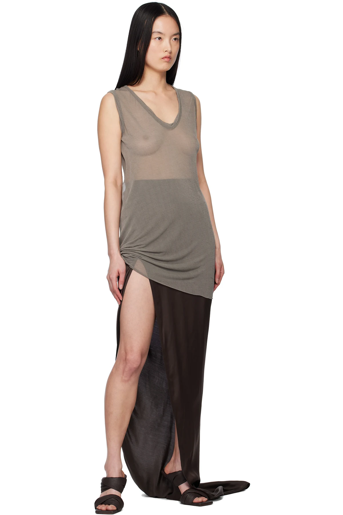 Rick Owens Brown Hollywood Slit Maxi Skirt