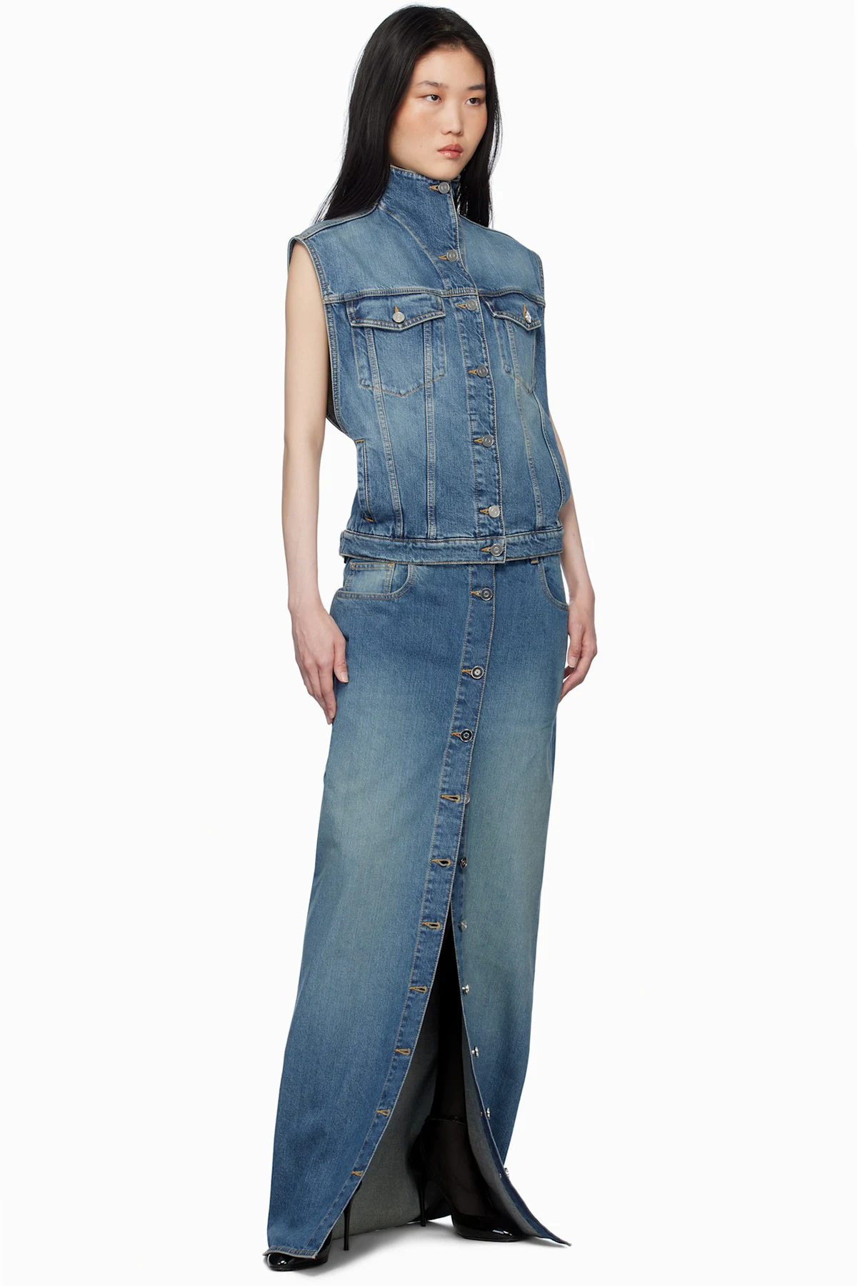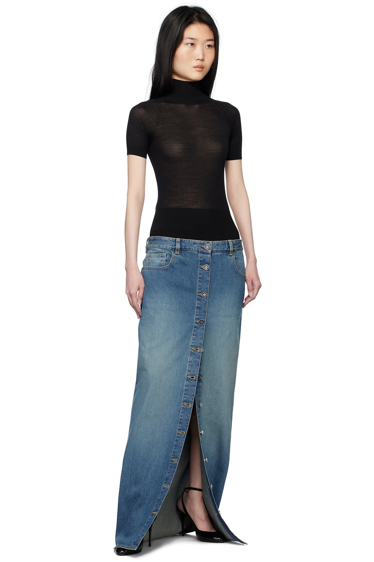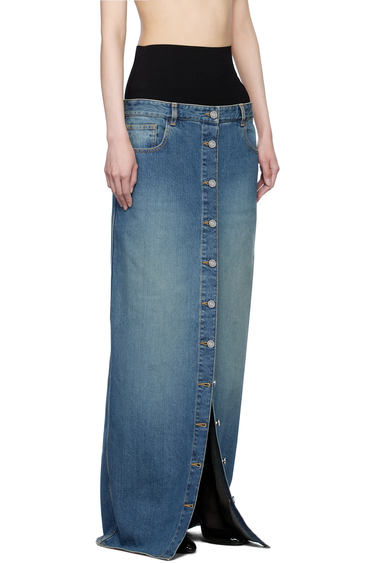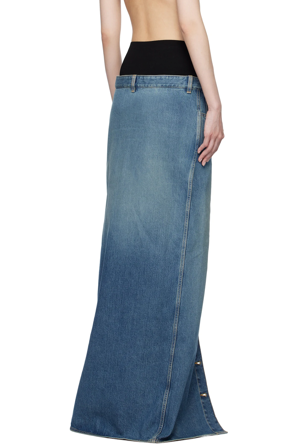 Alaïa Blue Knitted Waistband Denim Maxi Skirt