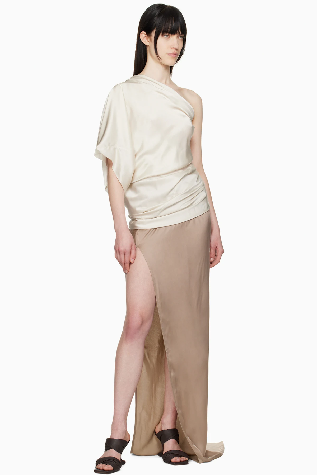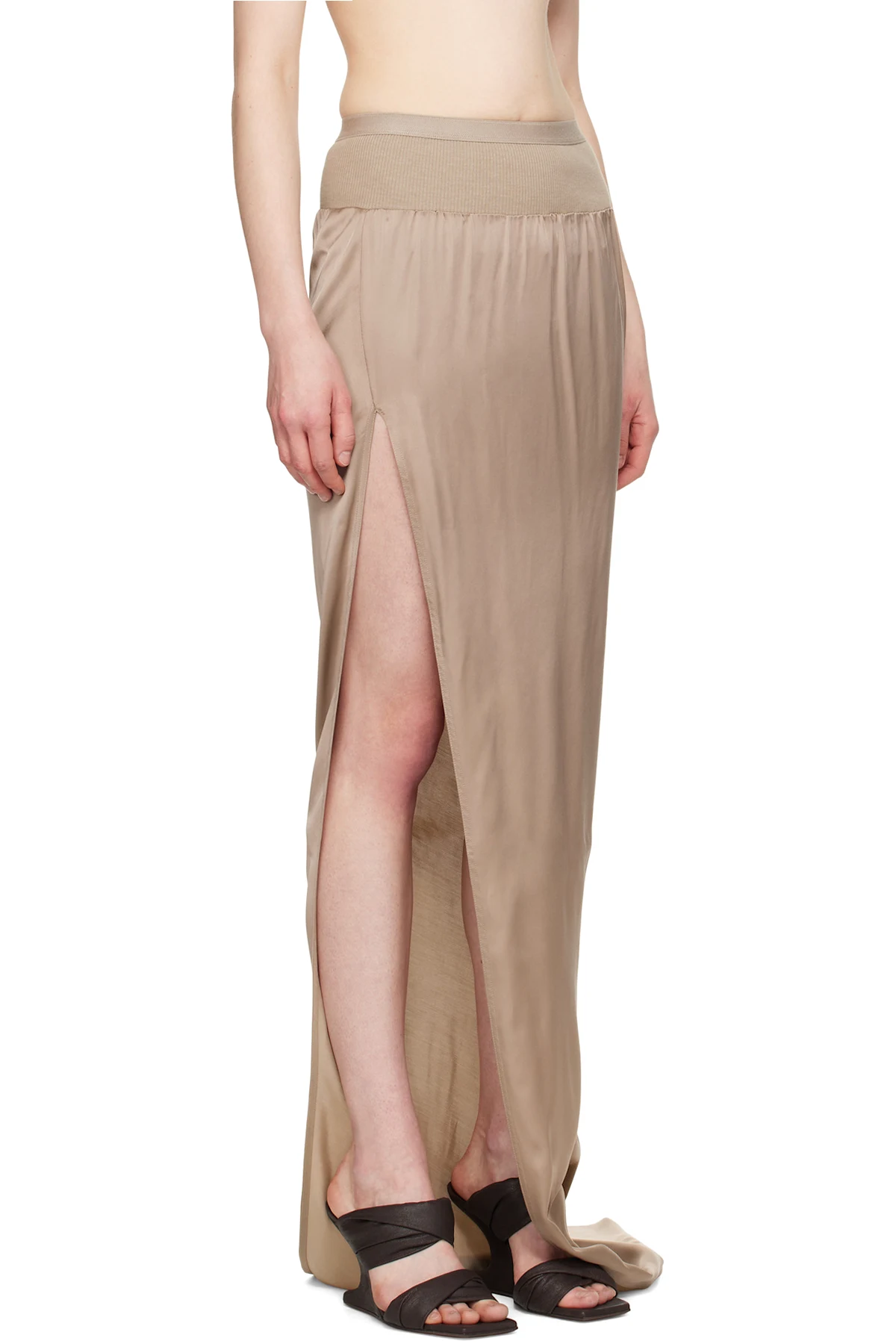 Rick Owens Taupe Hollywood Slit Maxi Skirt