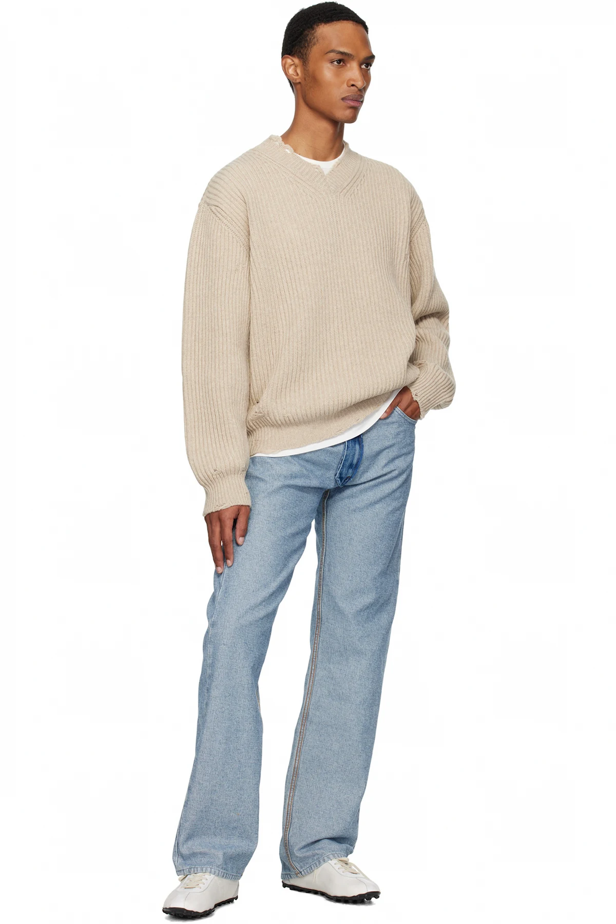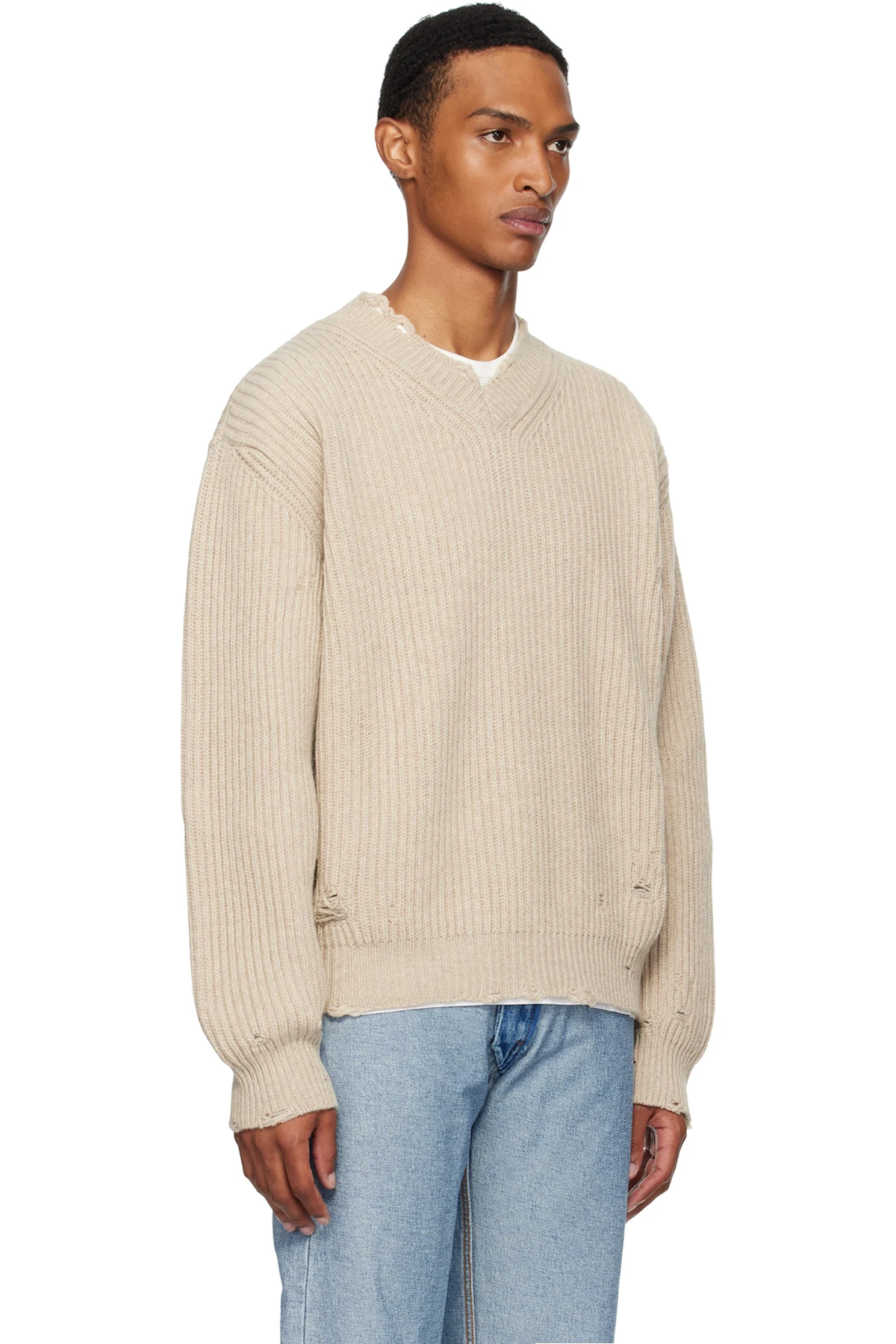 MM6 Maison Margiela Beige Ribbed Wool Knit Sweater
