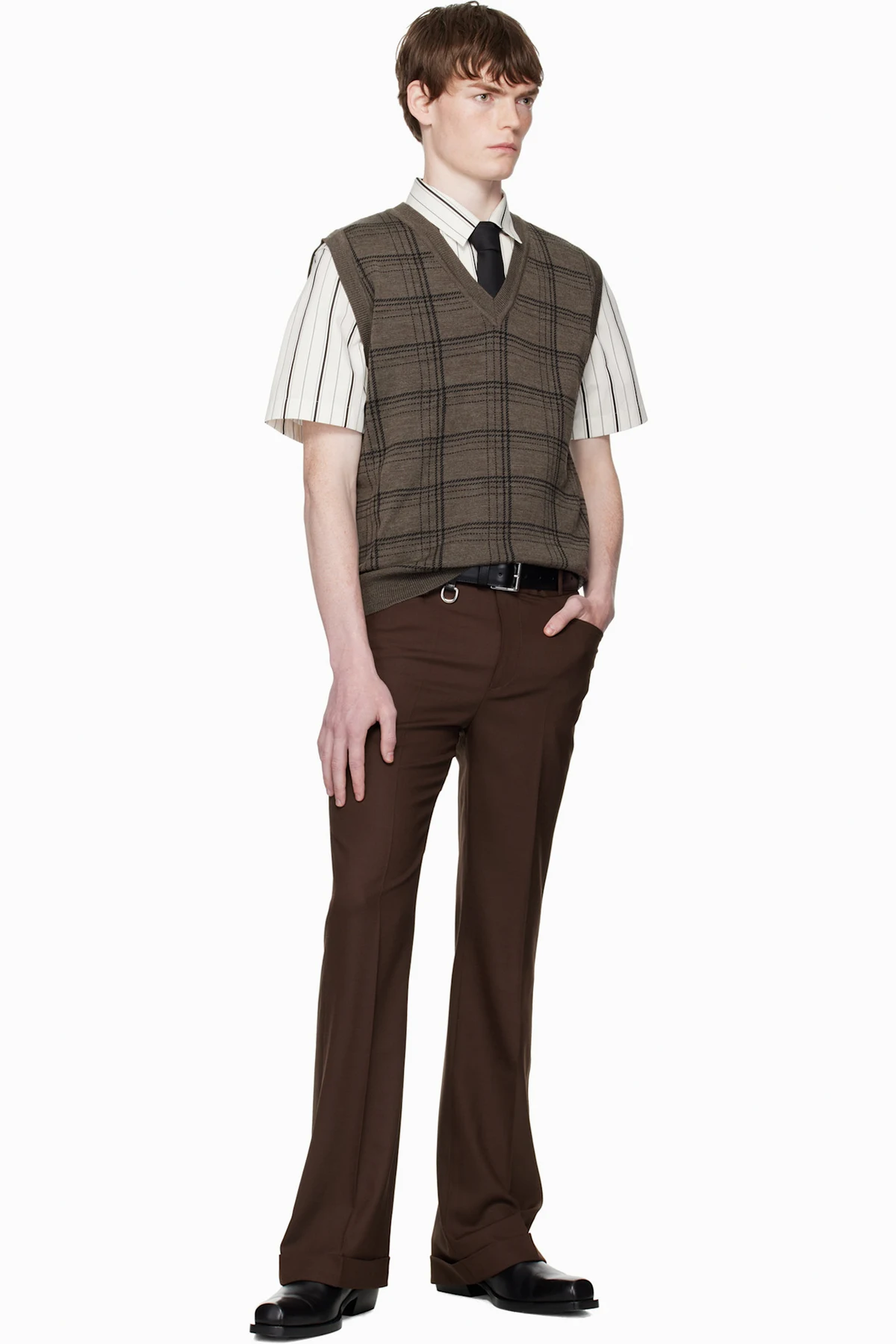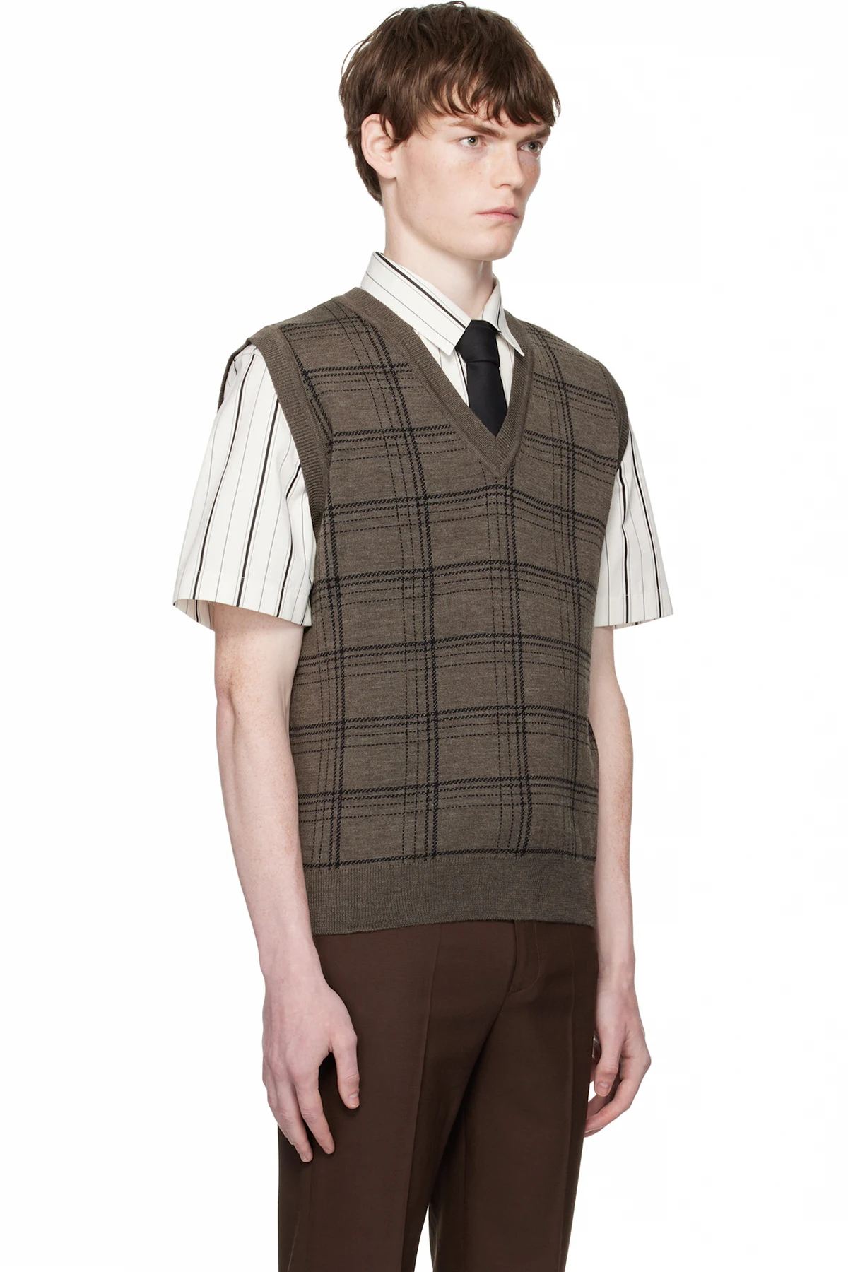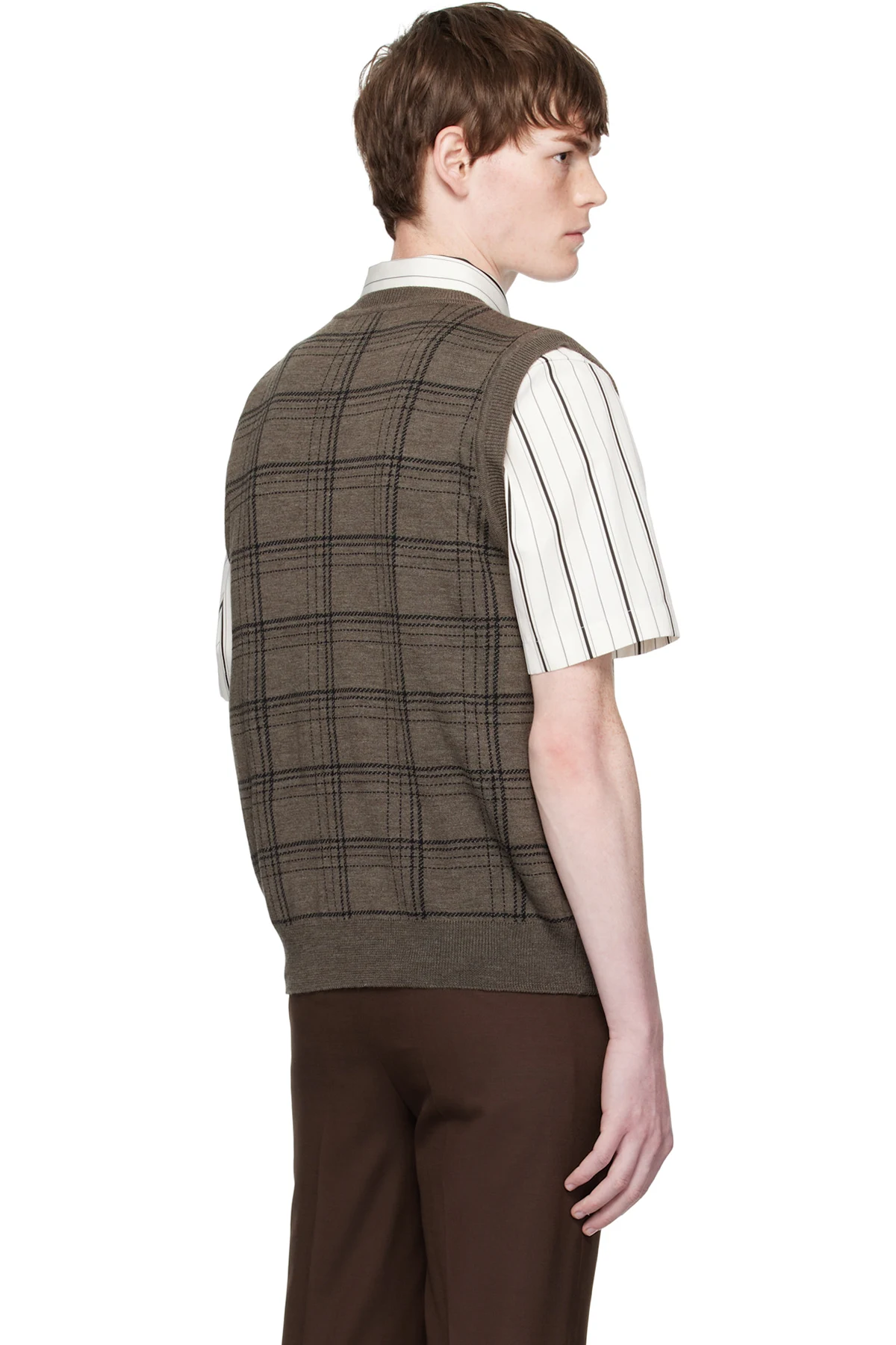 Ernest W. Baker Brown Check Jacquard Vest