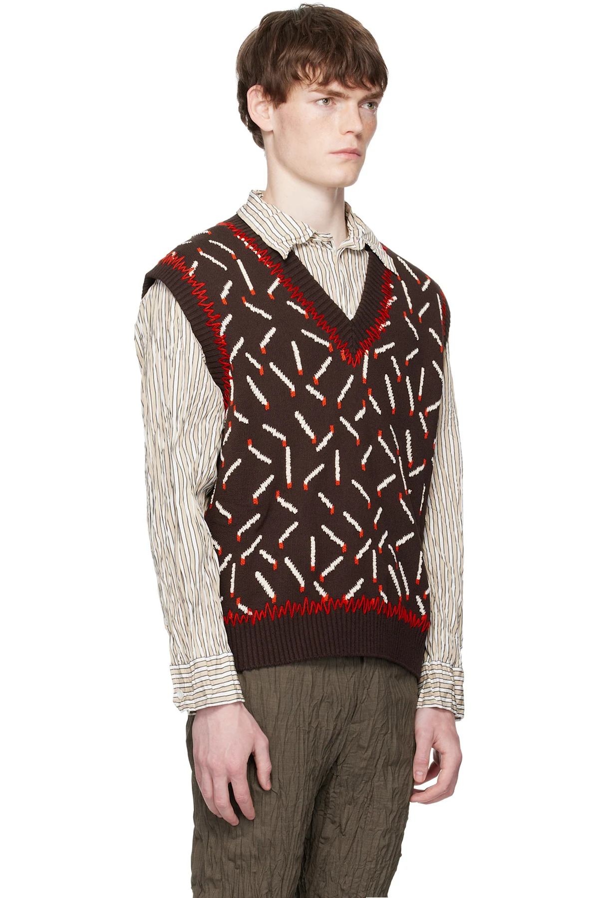 Bottega Veneta Brown Cotton Jacquard Matches Vest
