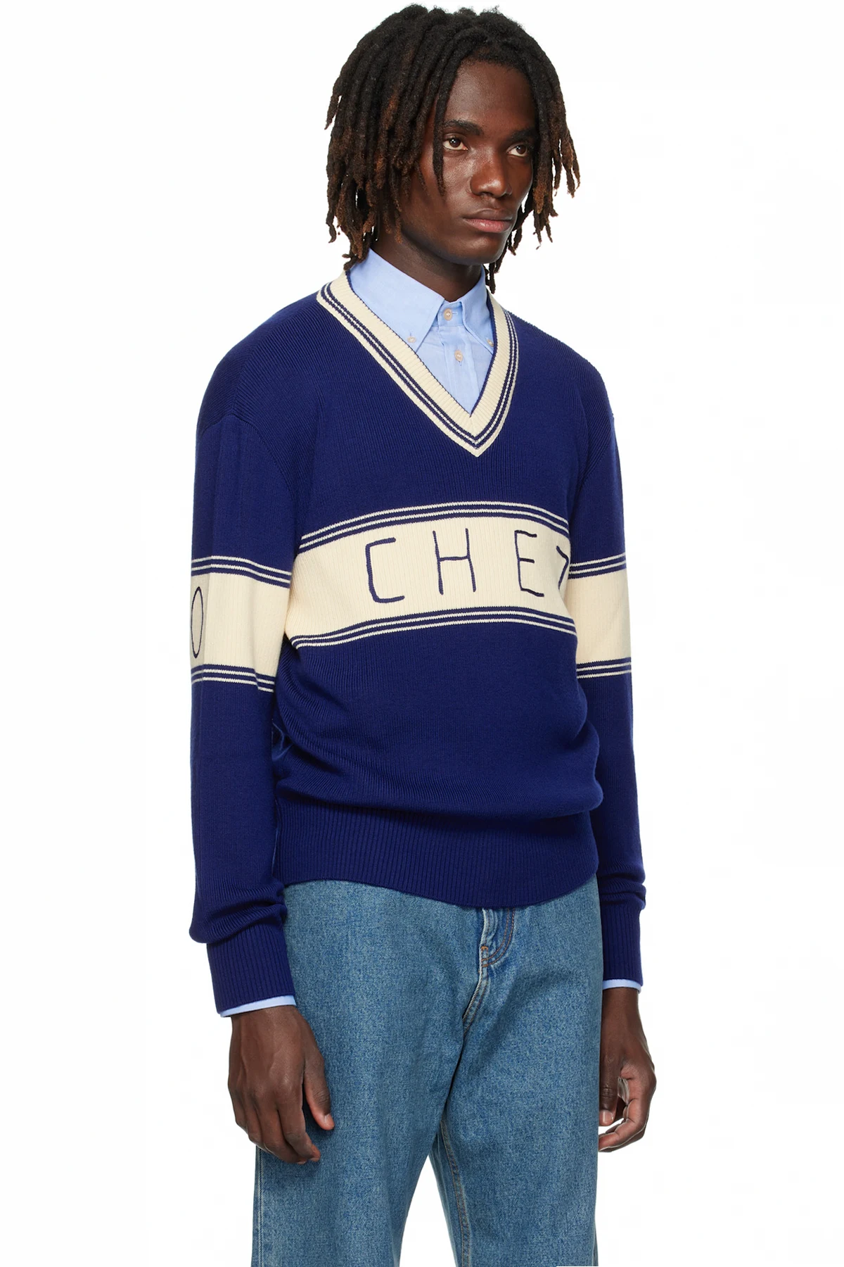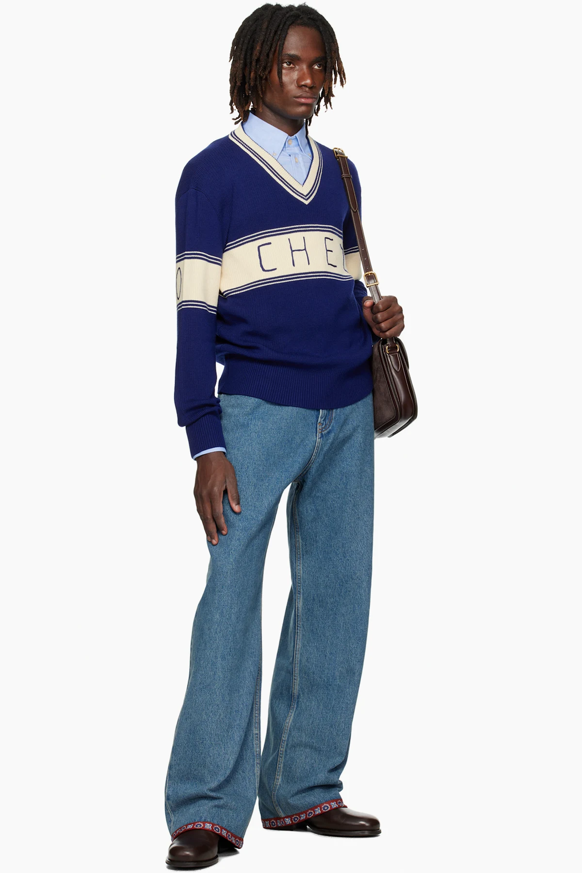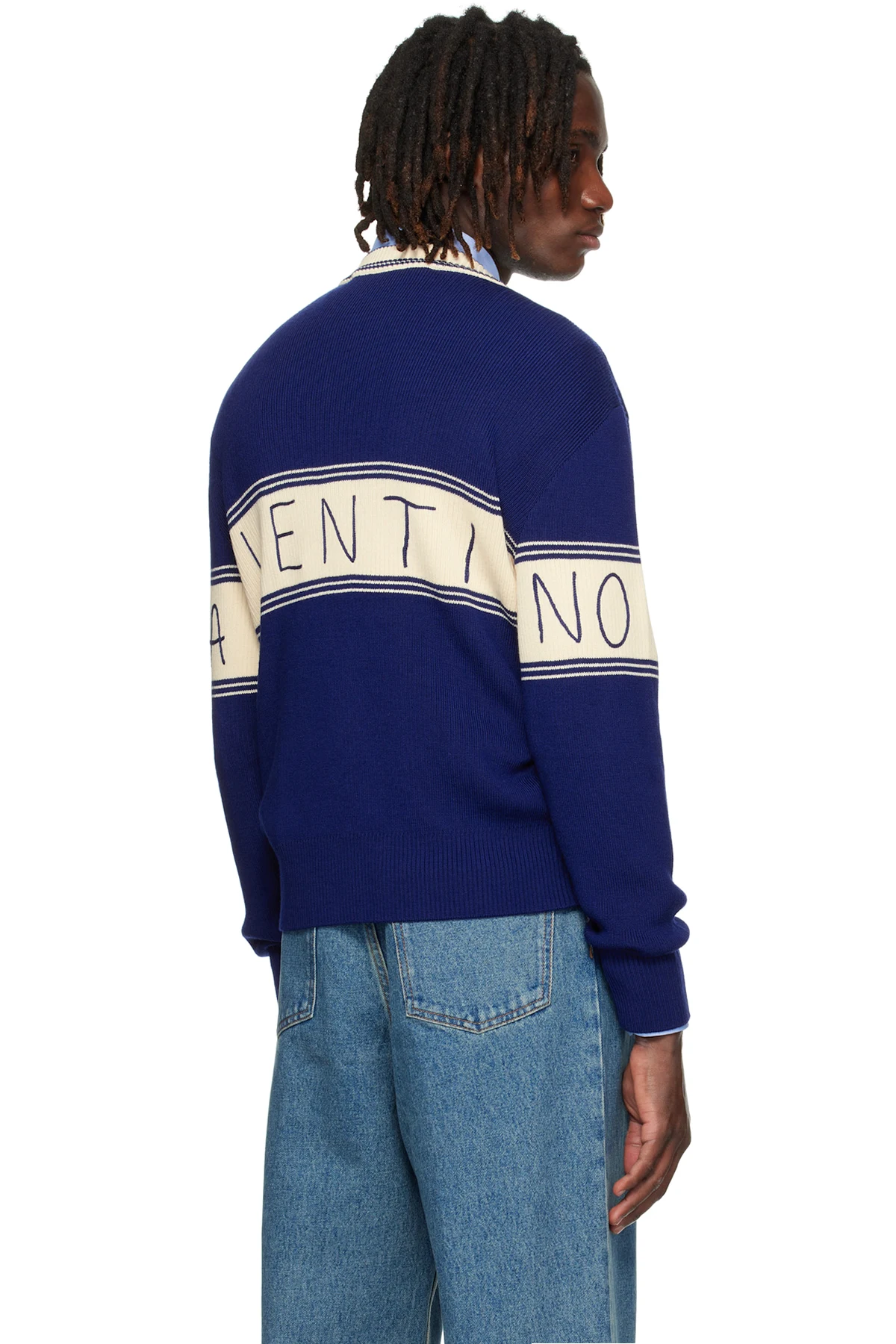 Valentino Navy & Beige 'Chez Valentino' Jacquard Pattern Sweater