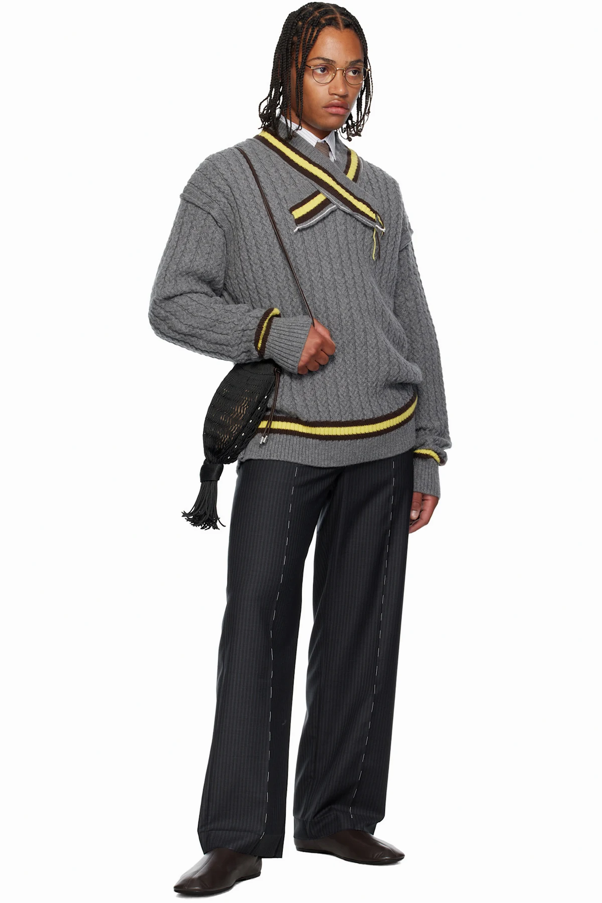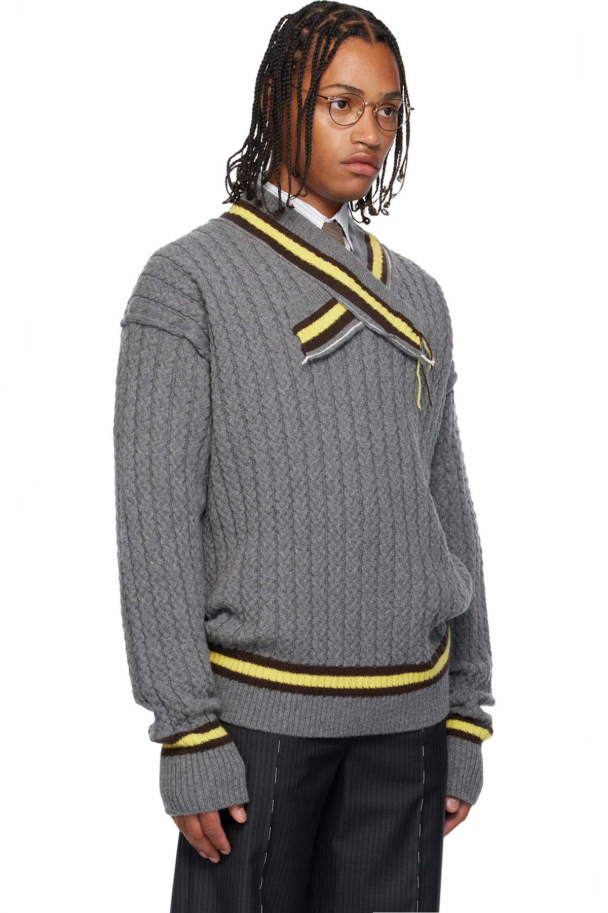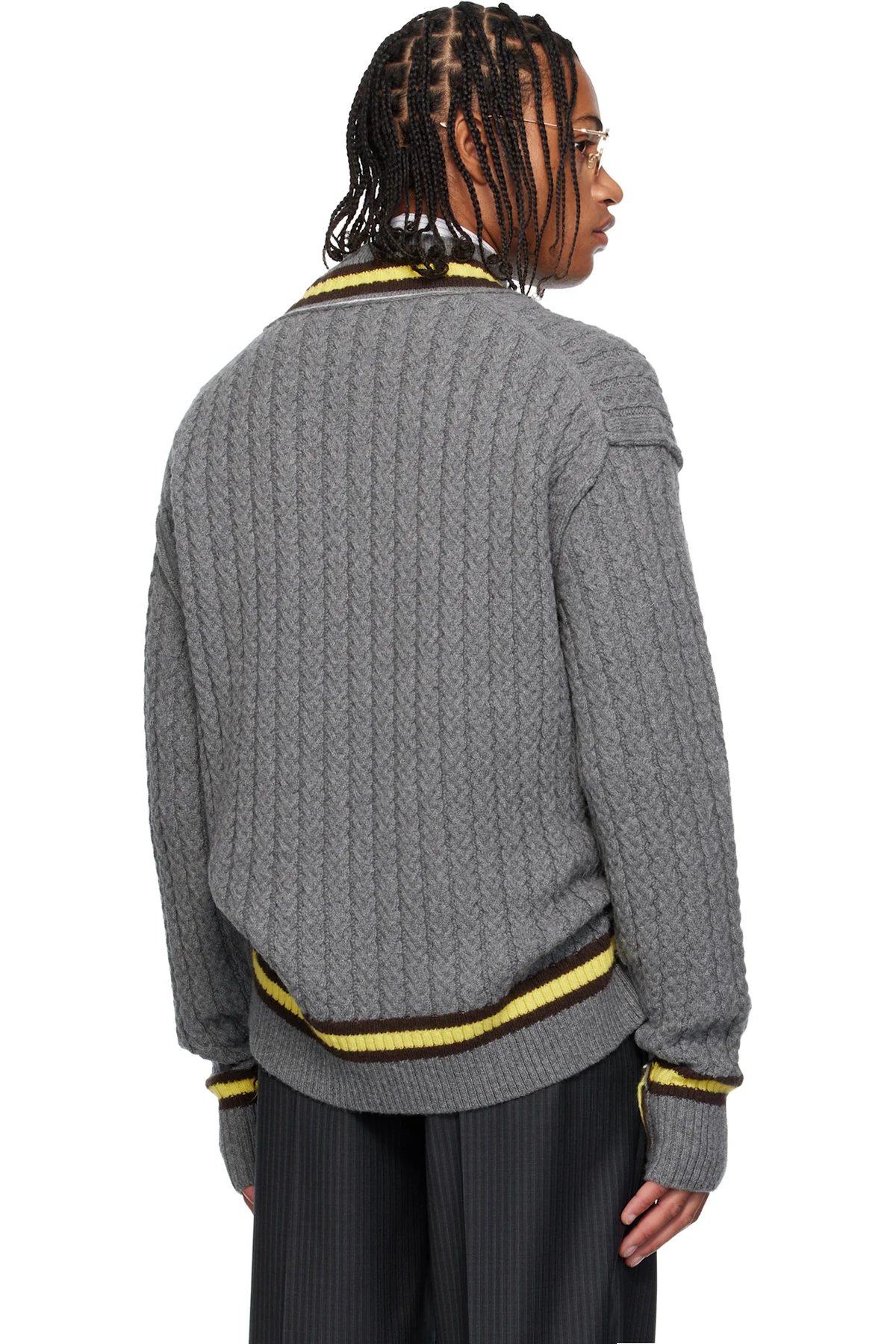 SONIA CARRASCO Gray Cable Knit Tennis Sweater