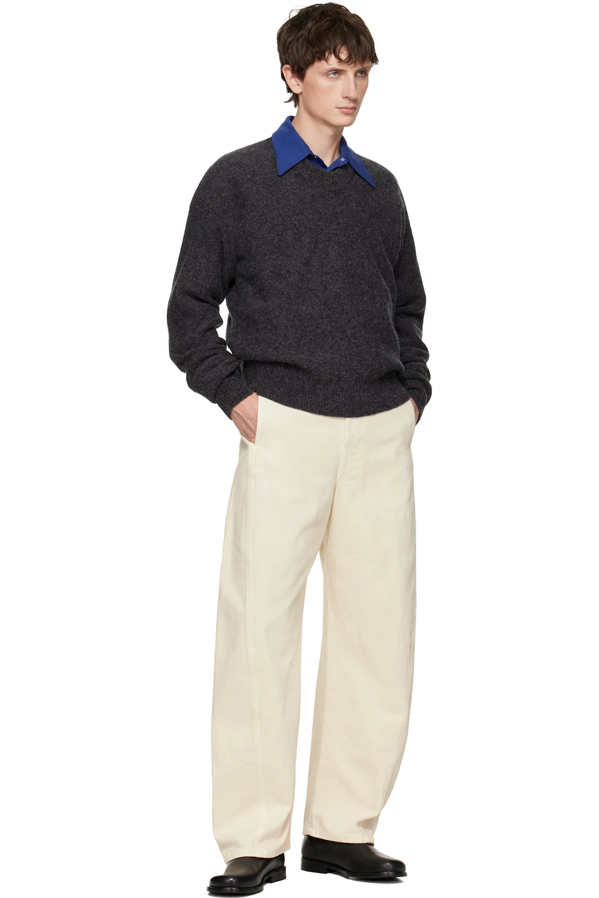 Lemaire Black Boxy V Neck Sweater