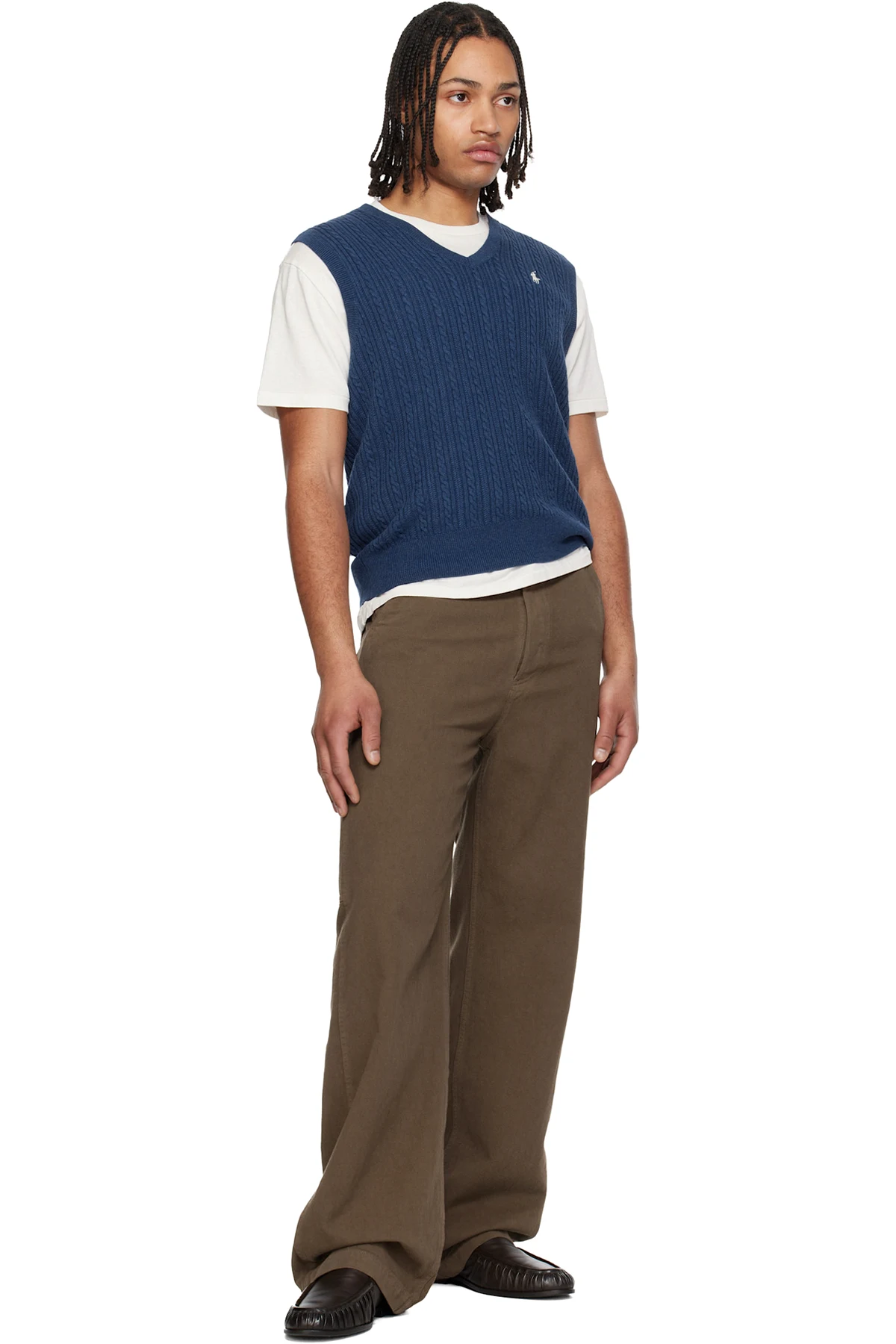 Cable-knit cotton vest.
