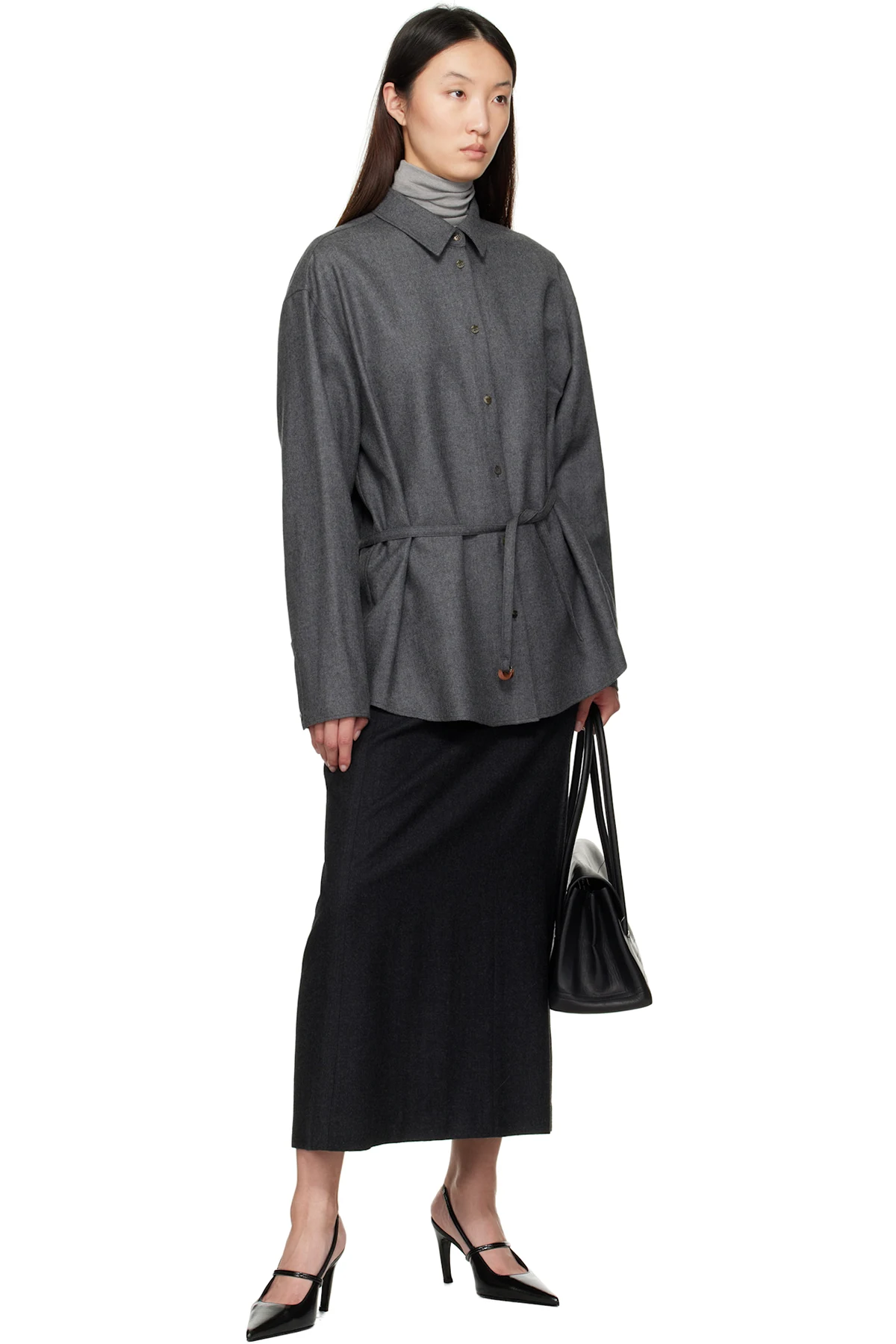 LE17SEPTEMBRE Gray Wool Tailored Maxi Skirt