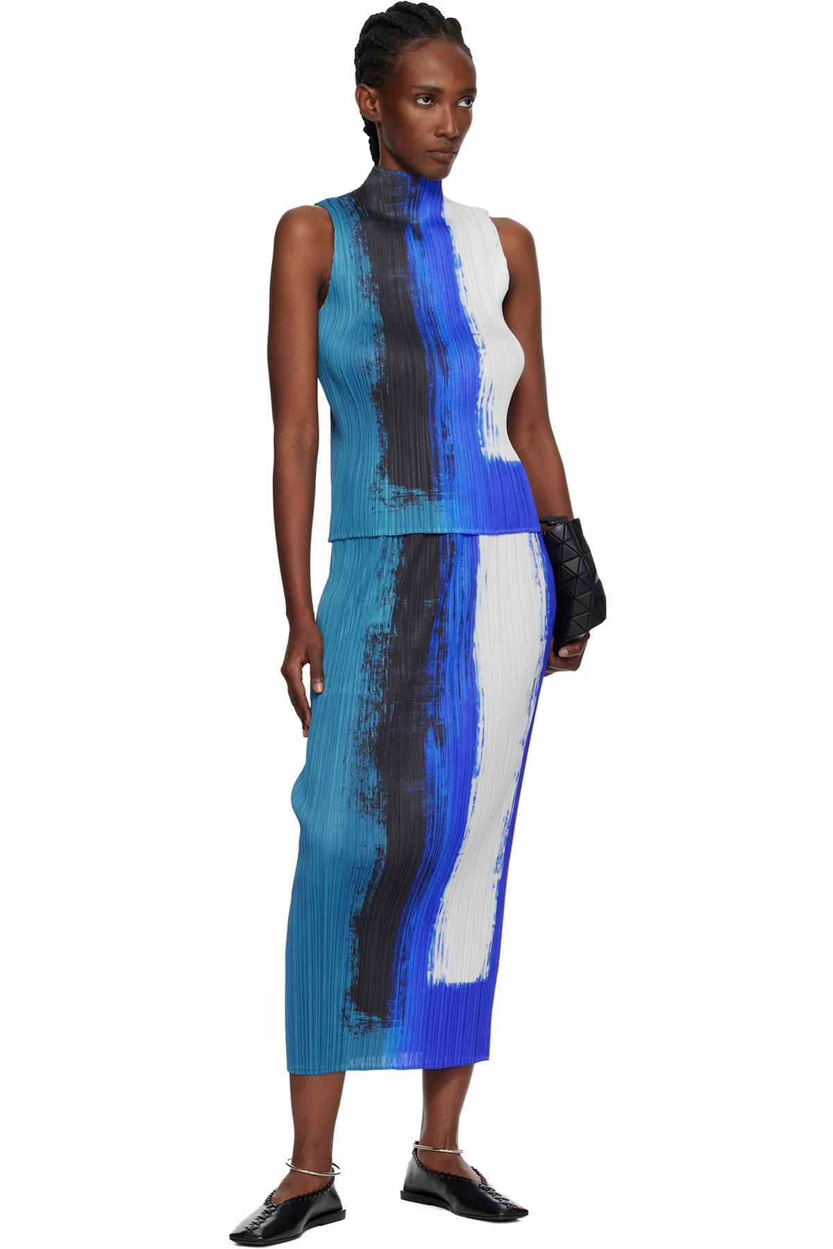 Pleats Please Issey Miyake Blue Jump Maxi Skirt