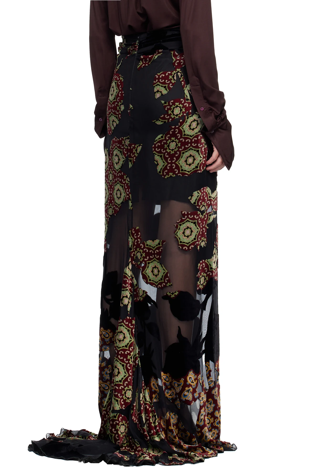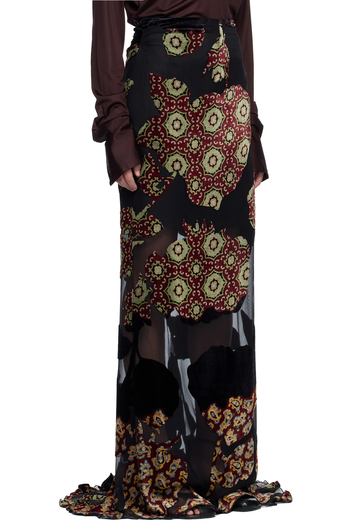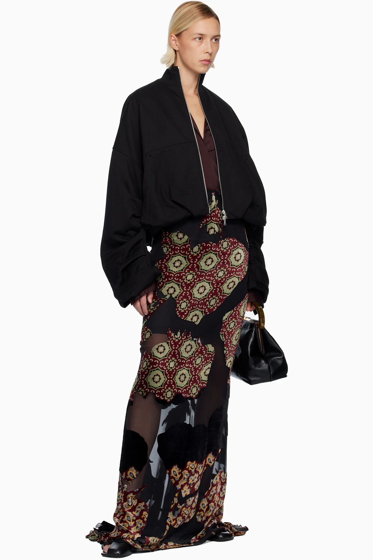 Dries Van Noten Black Layered Viscose Silk Maxi Skirt