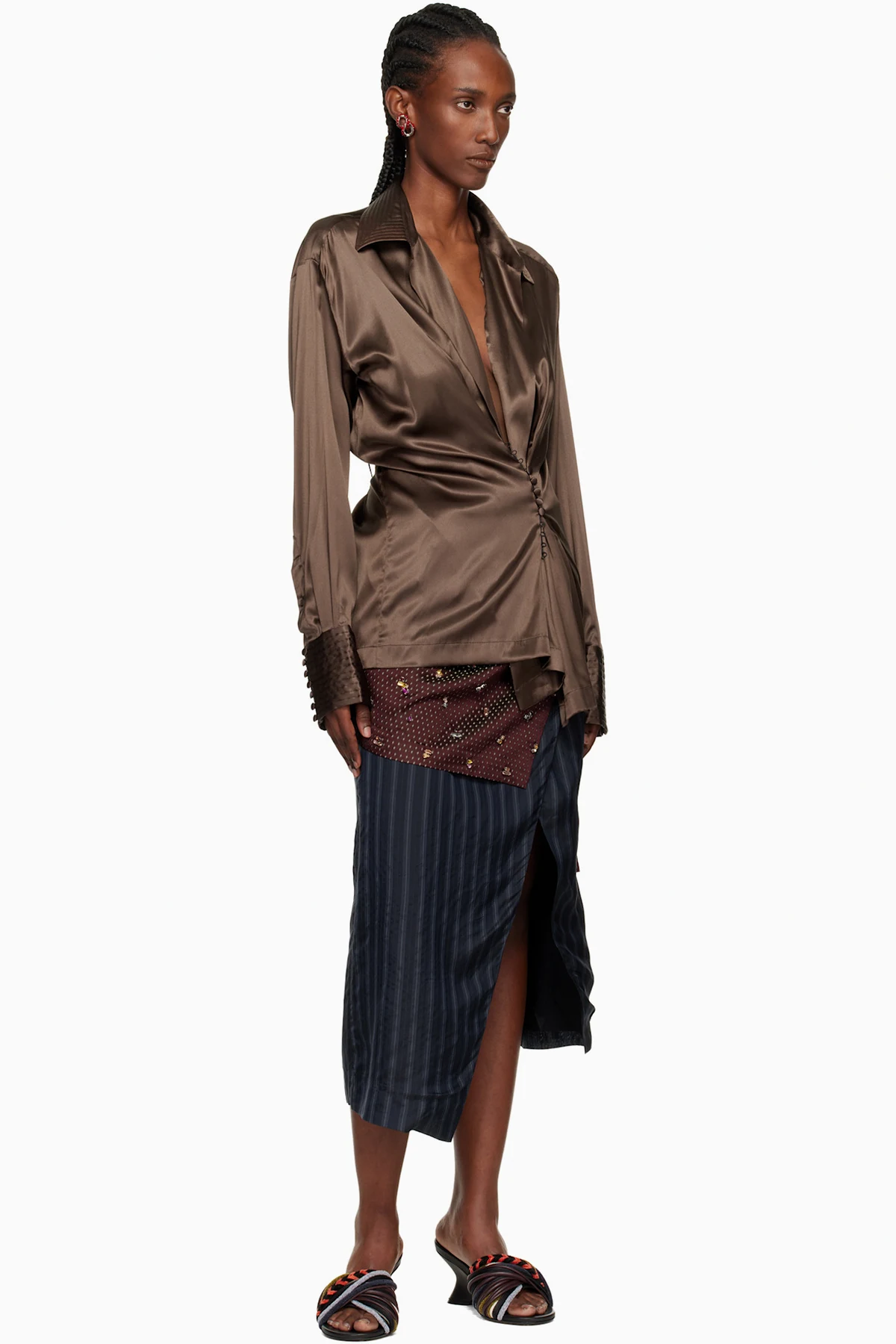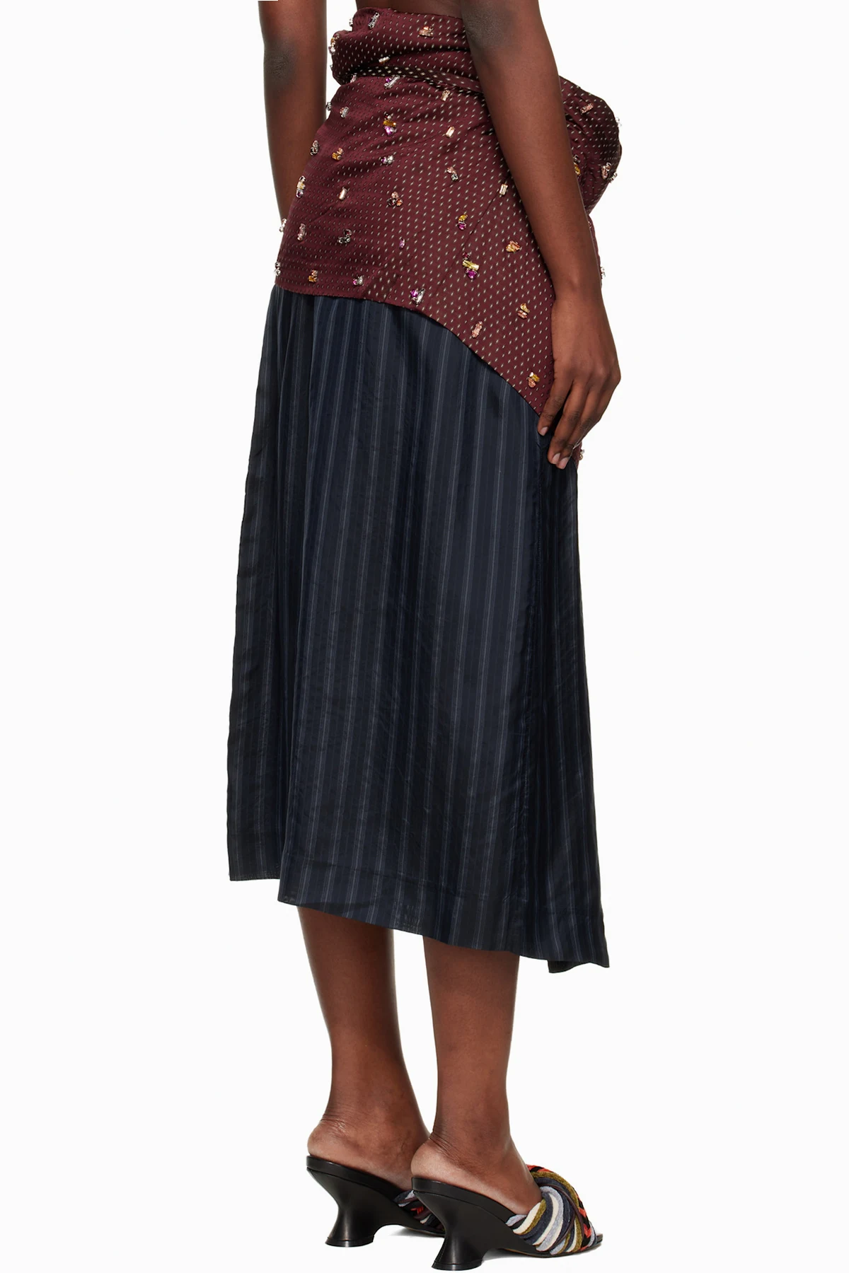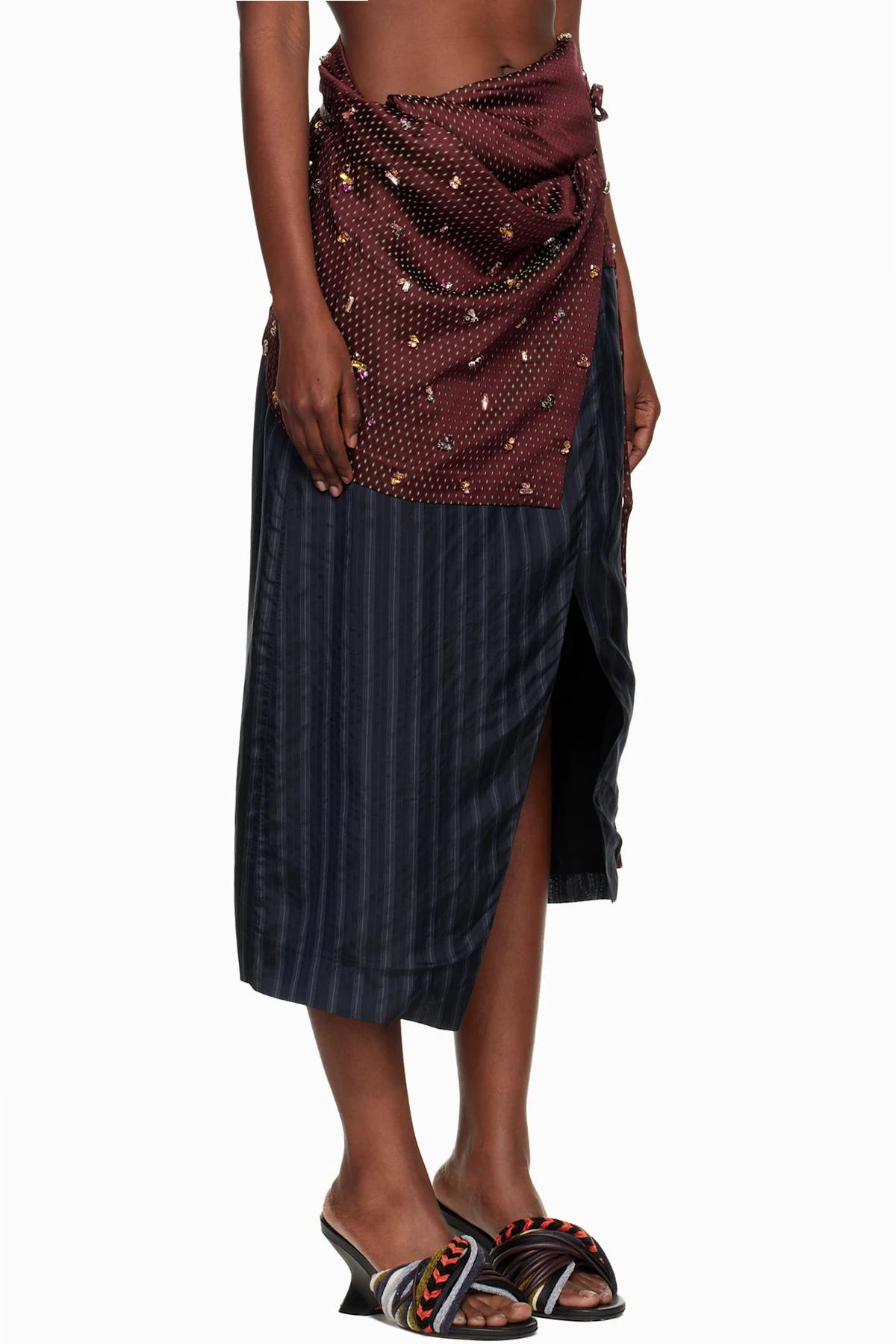 Dries Van Noten Navy & Burgundy Diamond Tie Motif Maxi Skirt