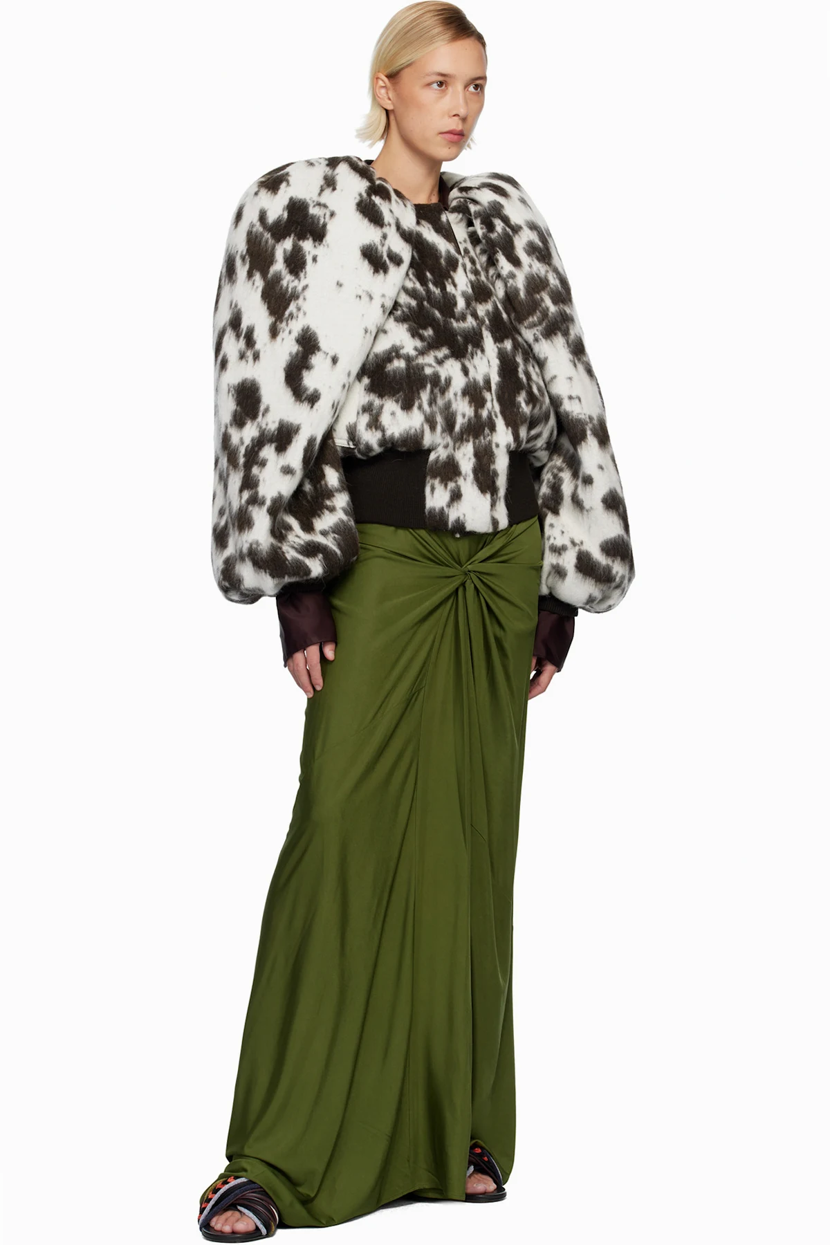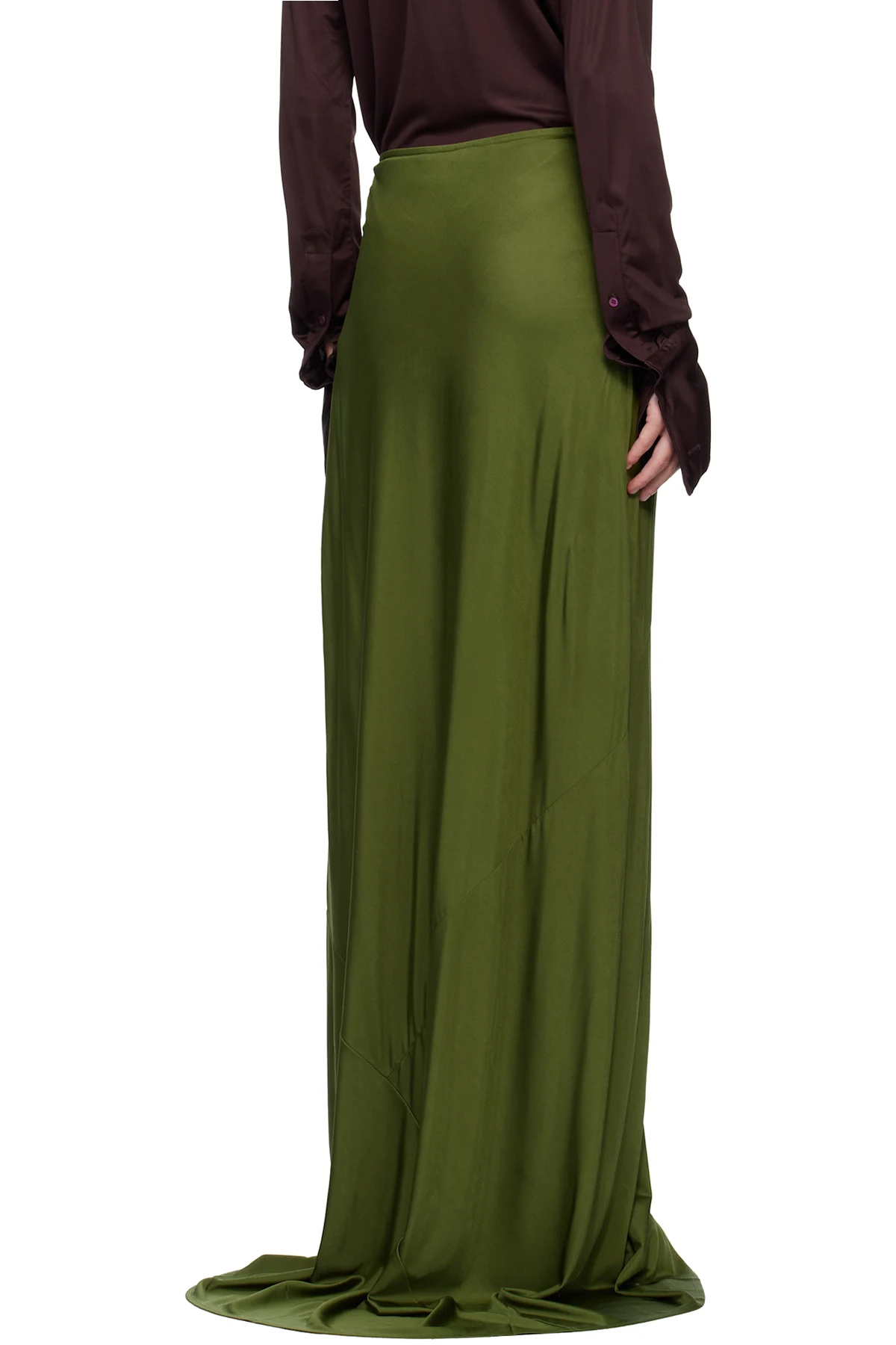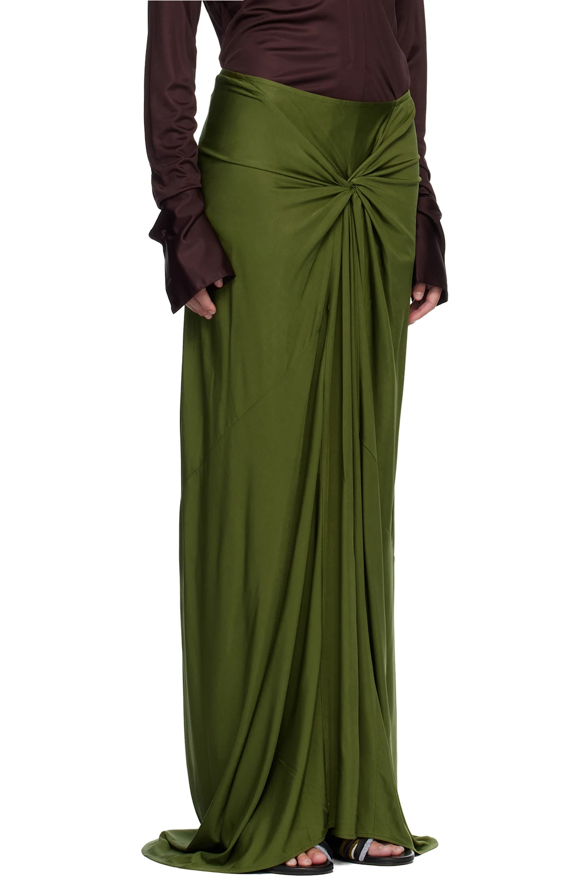 Dries Van Noten Green Long Draped Maxi Skirt