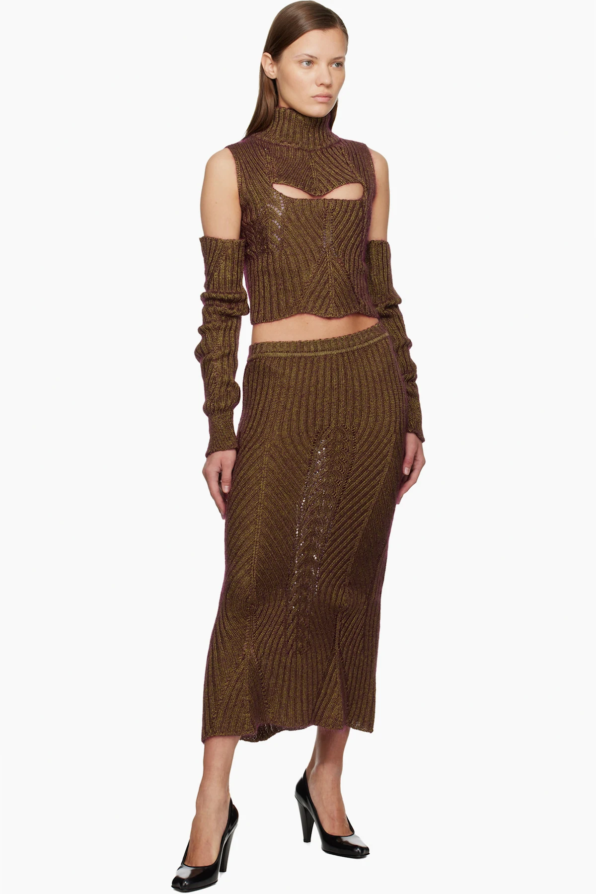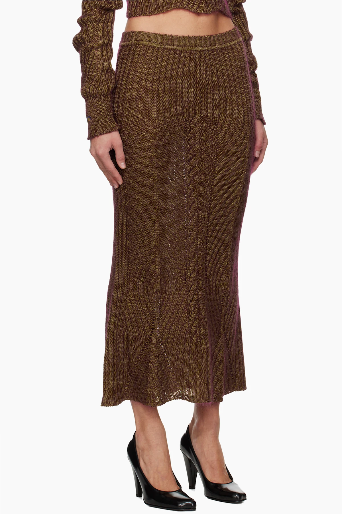 Rib-knit stretch silk- and mohair-blend maxi skirt. Cable knitting throughout.