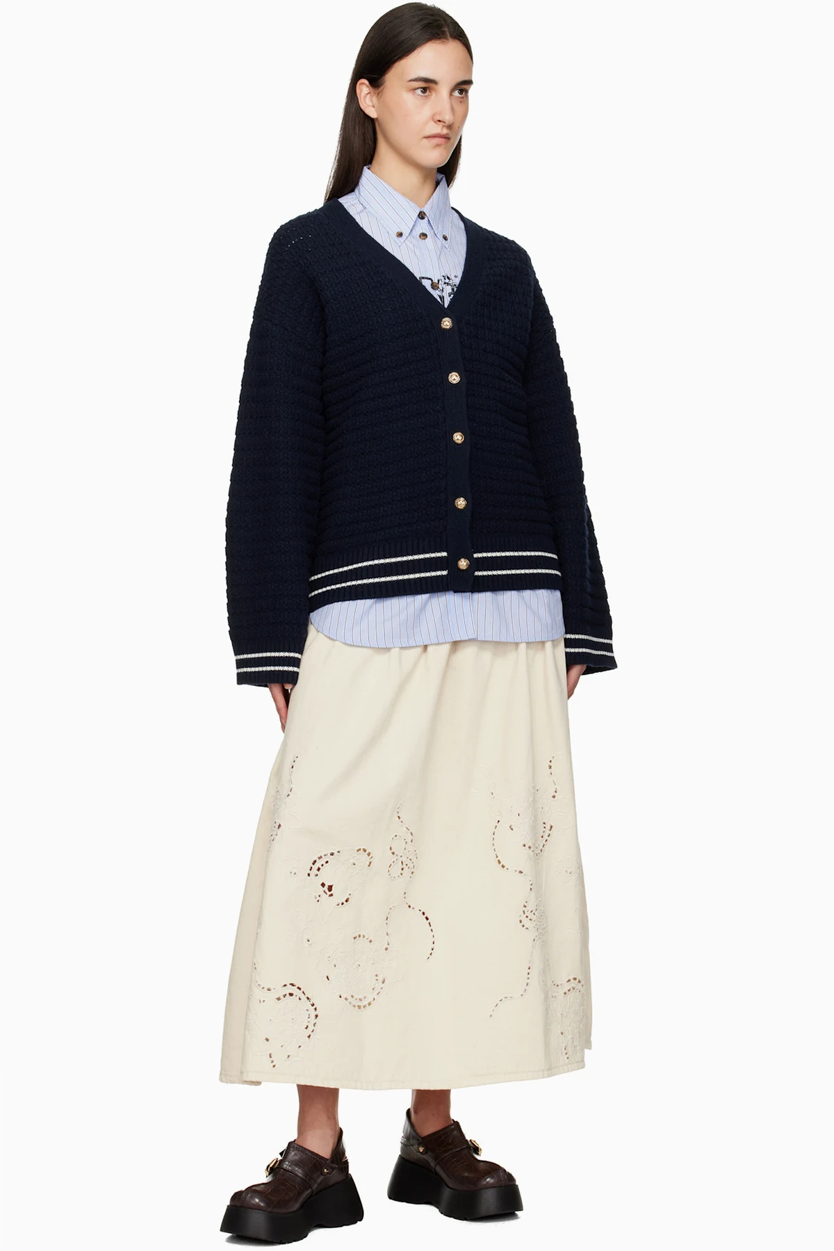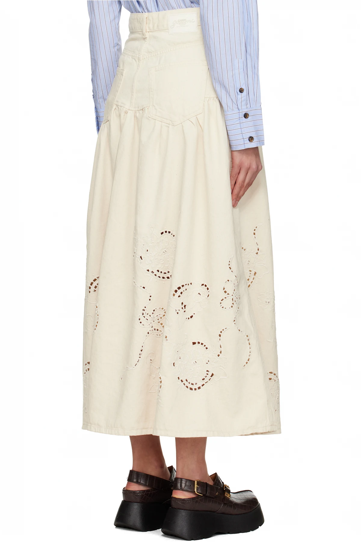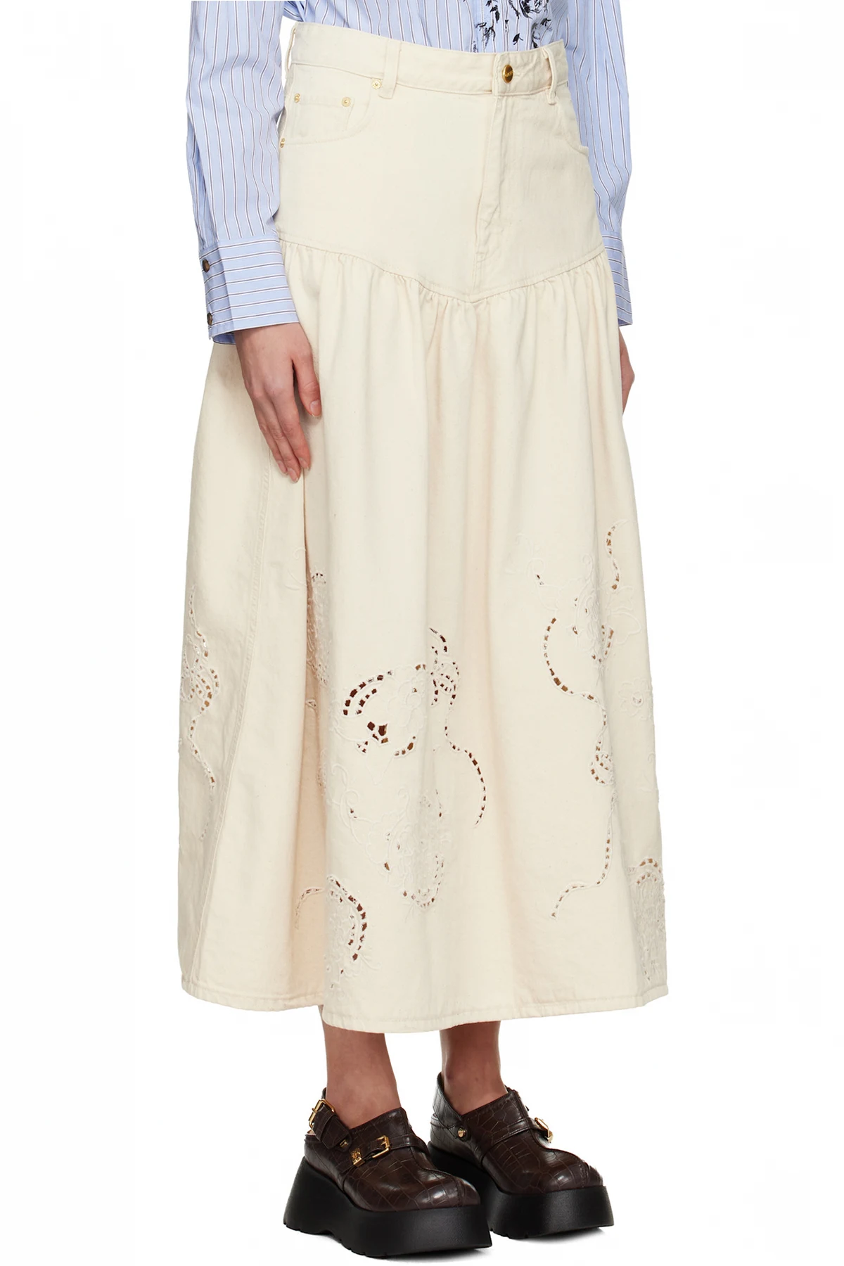 Ganni Off-White Broderie Anglaise Denim Maxi Skirt