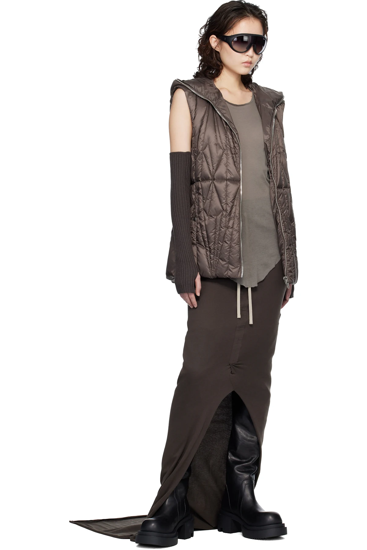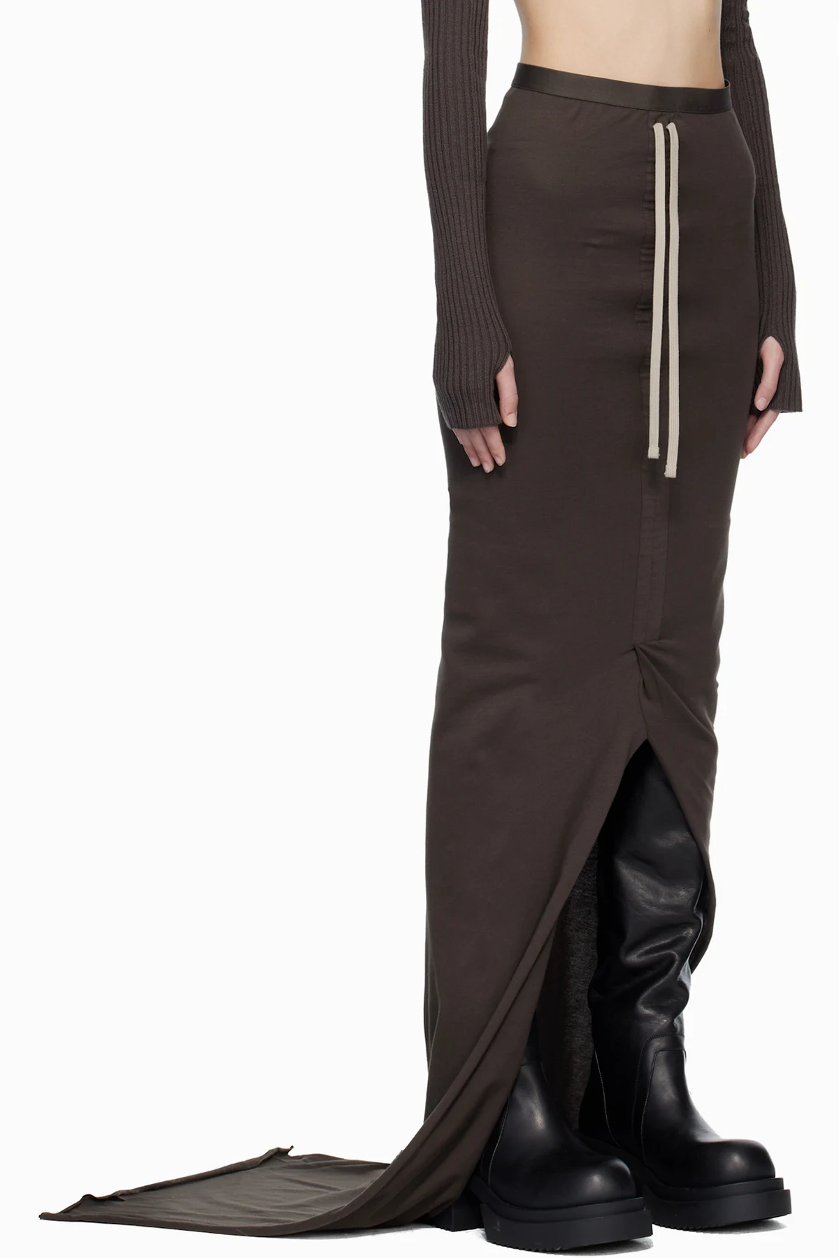 Rick Owens Moncler + Rick Owens Brown Adjustable Maxi Skirt