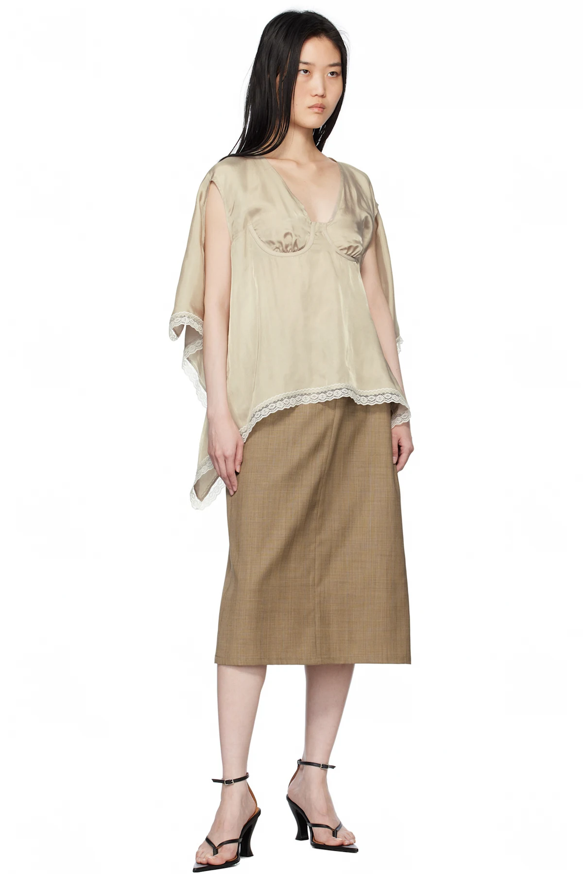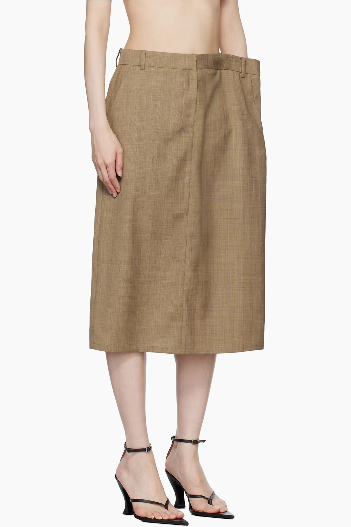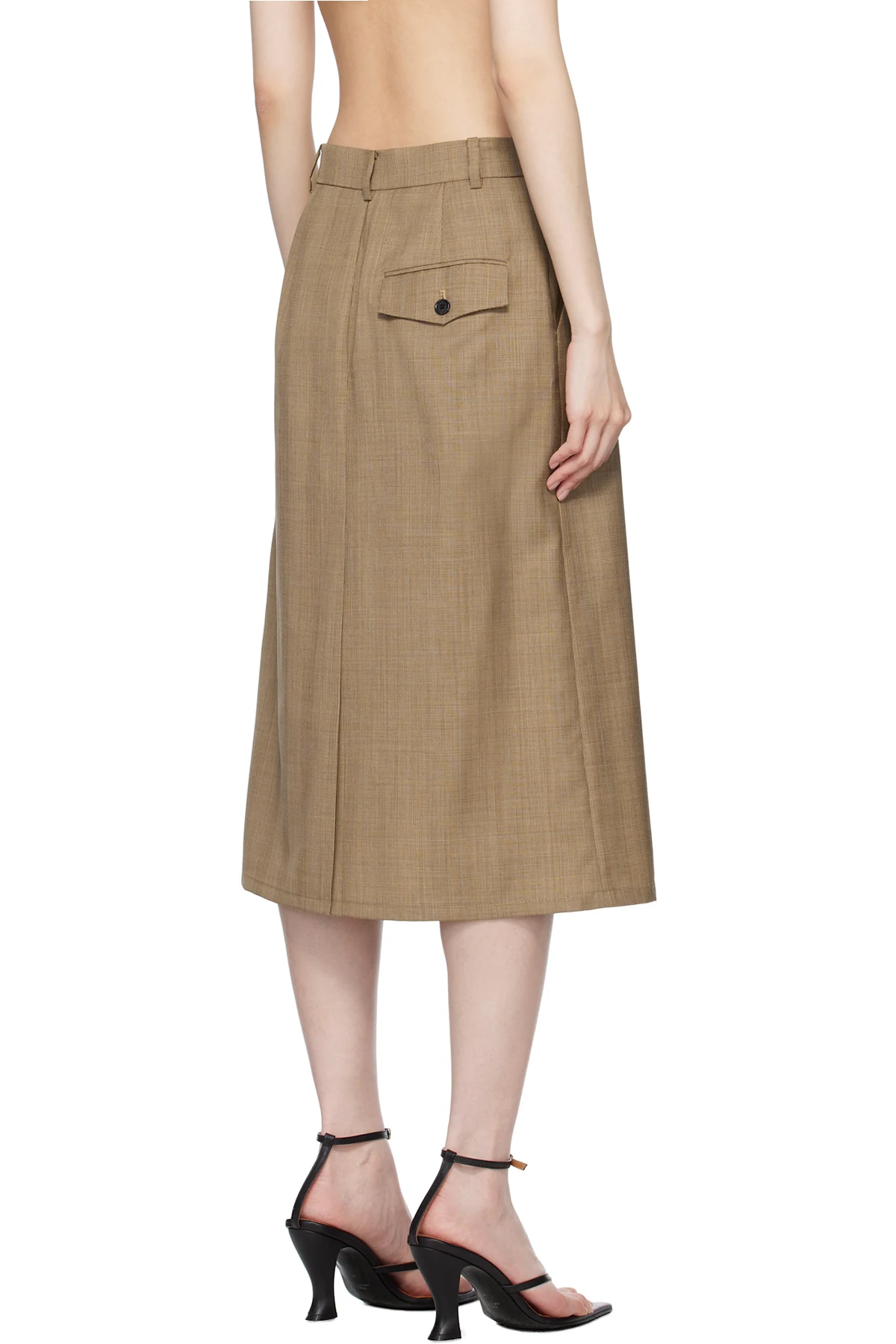 Pushbutton Beige Side Folded H Line Midi Skirt